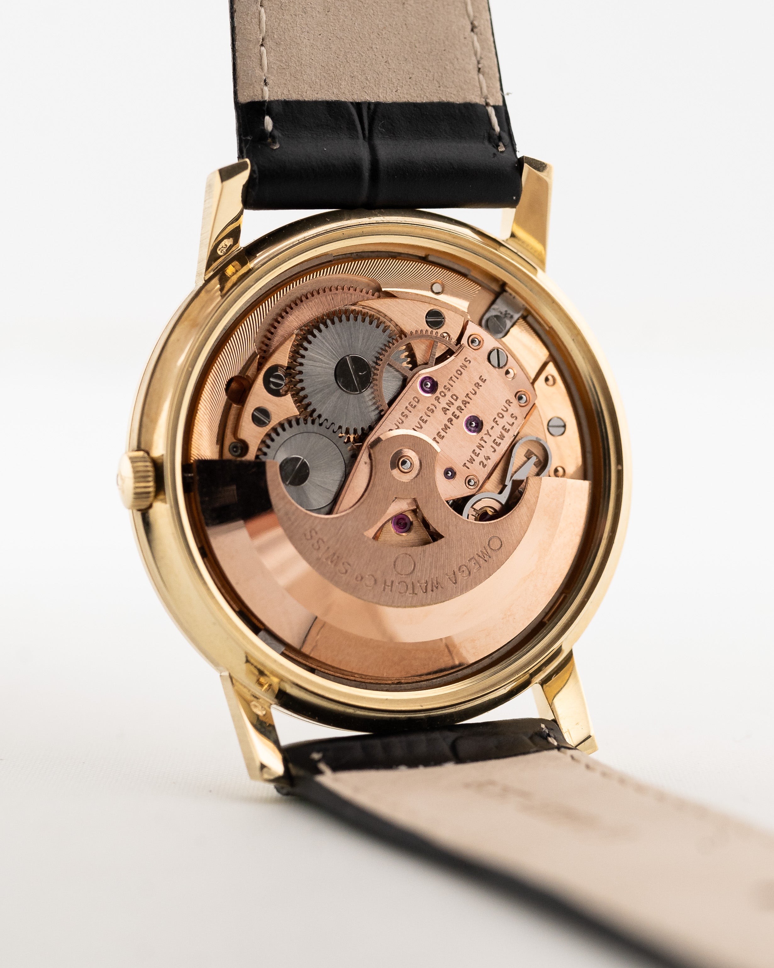 تتميز ساعة كونستيليشن هذه، المتناسقة والبسيطة والكلاسيكية، بظهر علبة خلفي مثبت لولبيًا وكرونومتر أوميغا الأوتوماتيكي عيار 562 وعروات مقلوبة قليلاً.