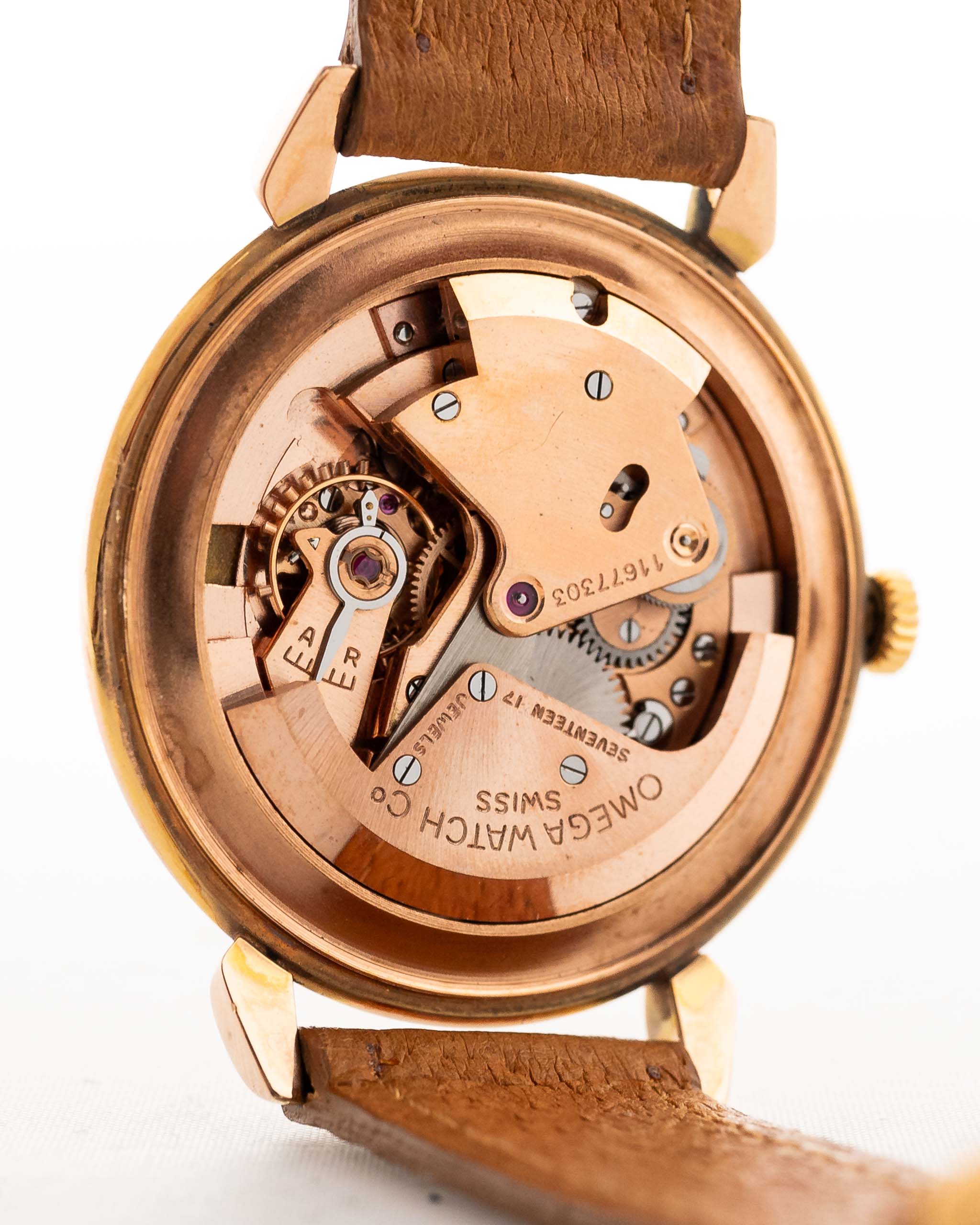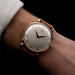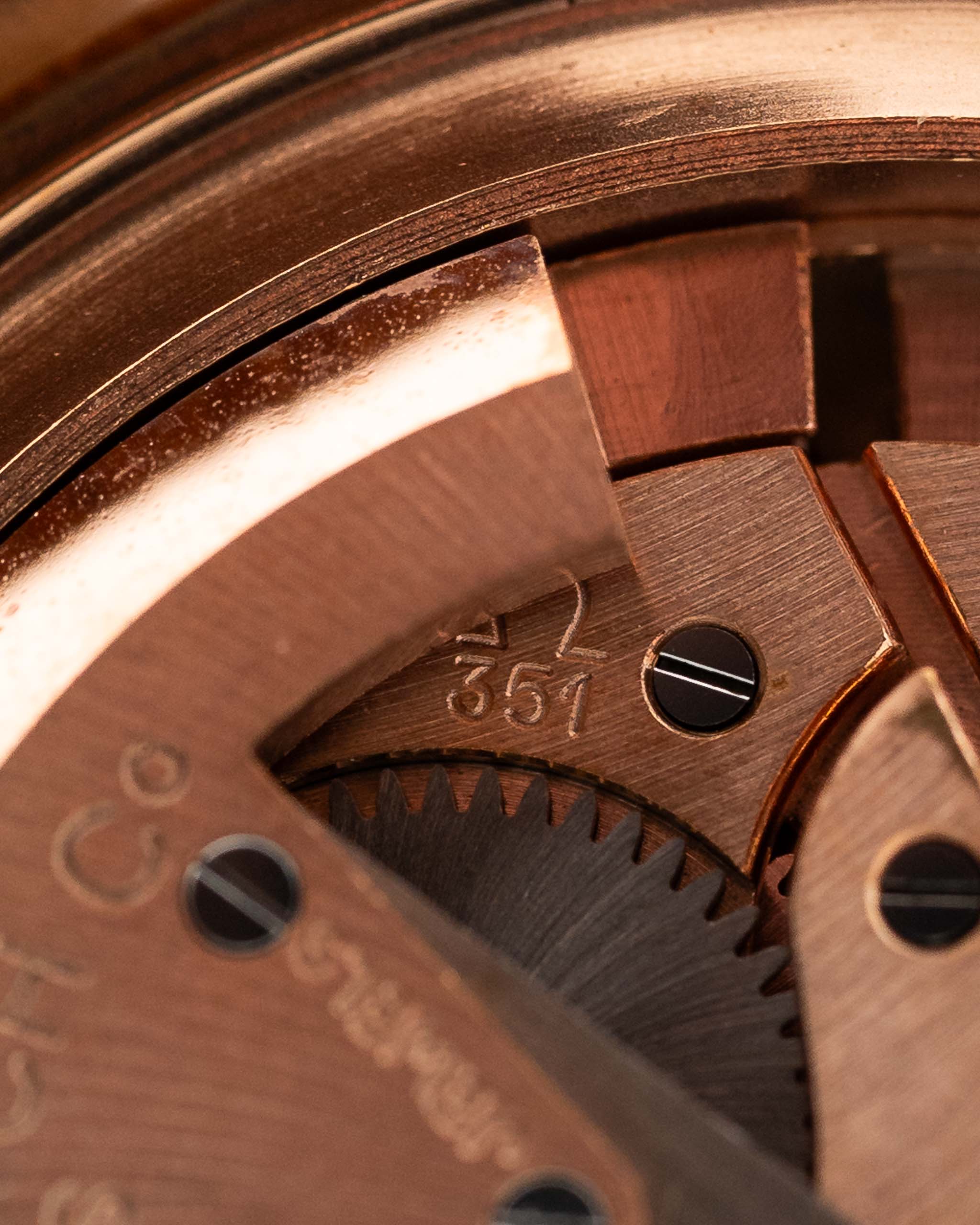 تحتوي ساعة أوميغا لعام 1947 على كل ما تريده في ساعة فستان - علبة متوازنة بقطر 37 مم، وميناء لامع بلونين مشرق وقليل من اللون مع أرقام وردية على طراز آرت ديكو وعقارب جميلة من الذهب الوردي وشعار أوميغا المطبق. كما أن العروات الضخمة على شكل دمعة والعلبة المطلية بالذهب الوردي هي ما يميزها.
