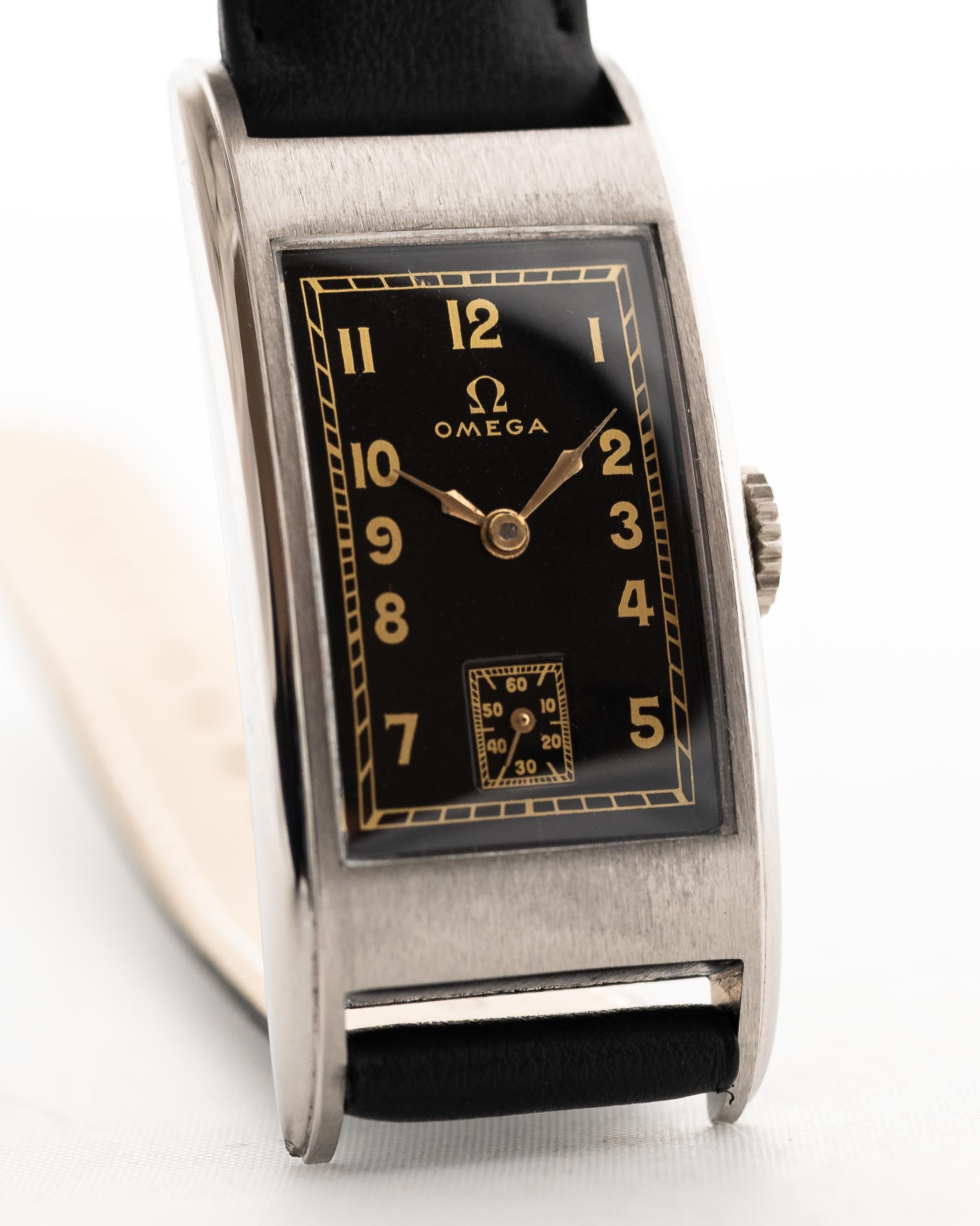تجسّد ساعة أوميغا هذه التي يعود تاريخها إلى عام 1943 الأناقة والحرفية في صناعة الساعات في منتصف القرن العشرين، حيث تقدم مزيجًا خالدًا من الرقي والبراعة الميكانيكية. تأتي هذه الساعة العتيقة في علبة نادرة ومميزة على شكل منحنى، وتُظهر نهج أوميغا المبتكر في التصميم، مما يجعلها قطعة بارزة في تاريخ العلامة التجارية العريق.
