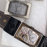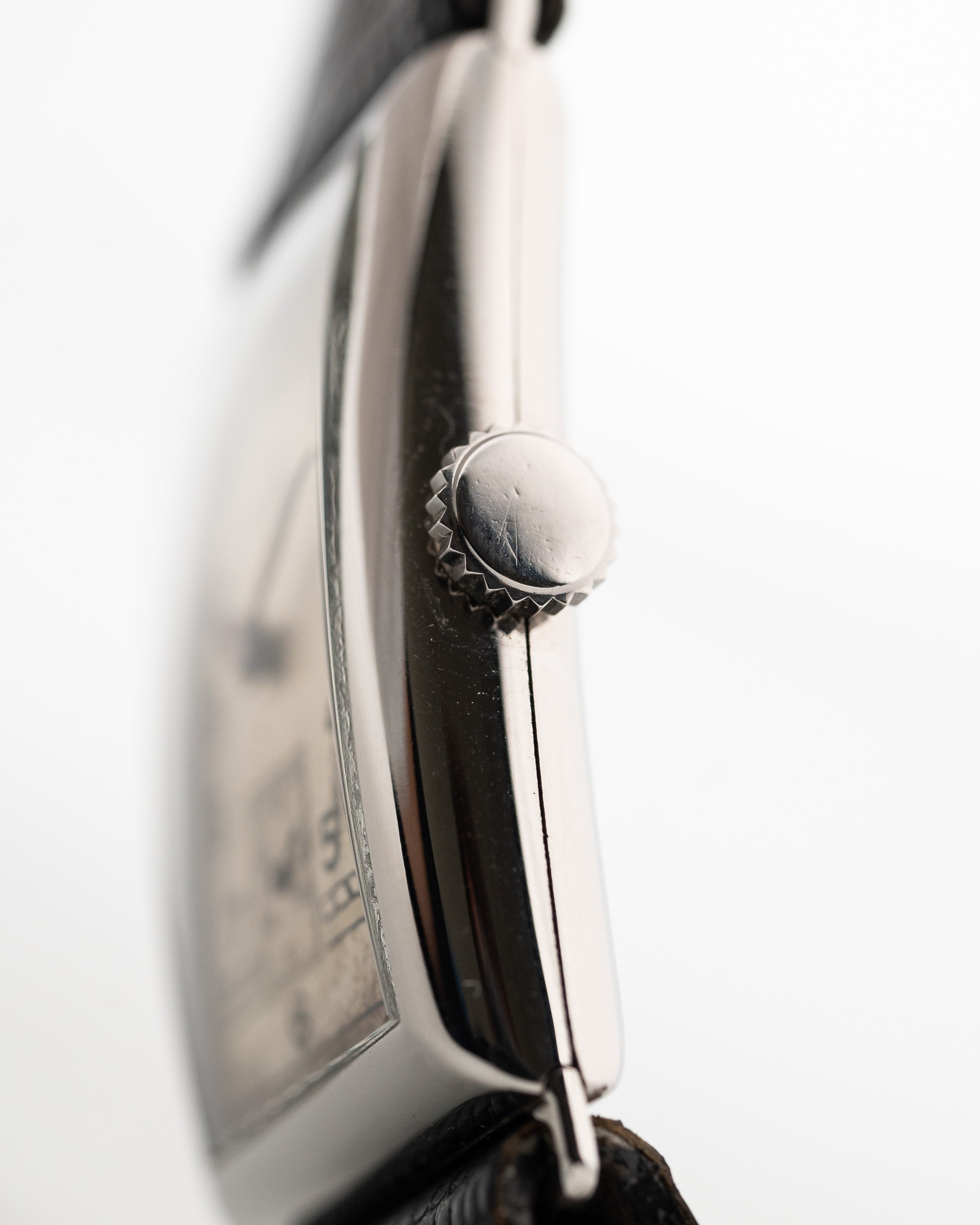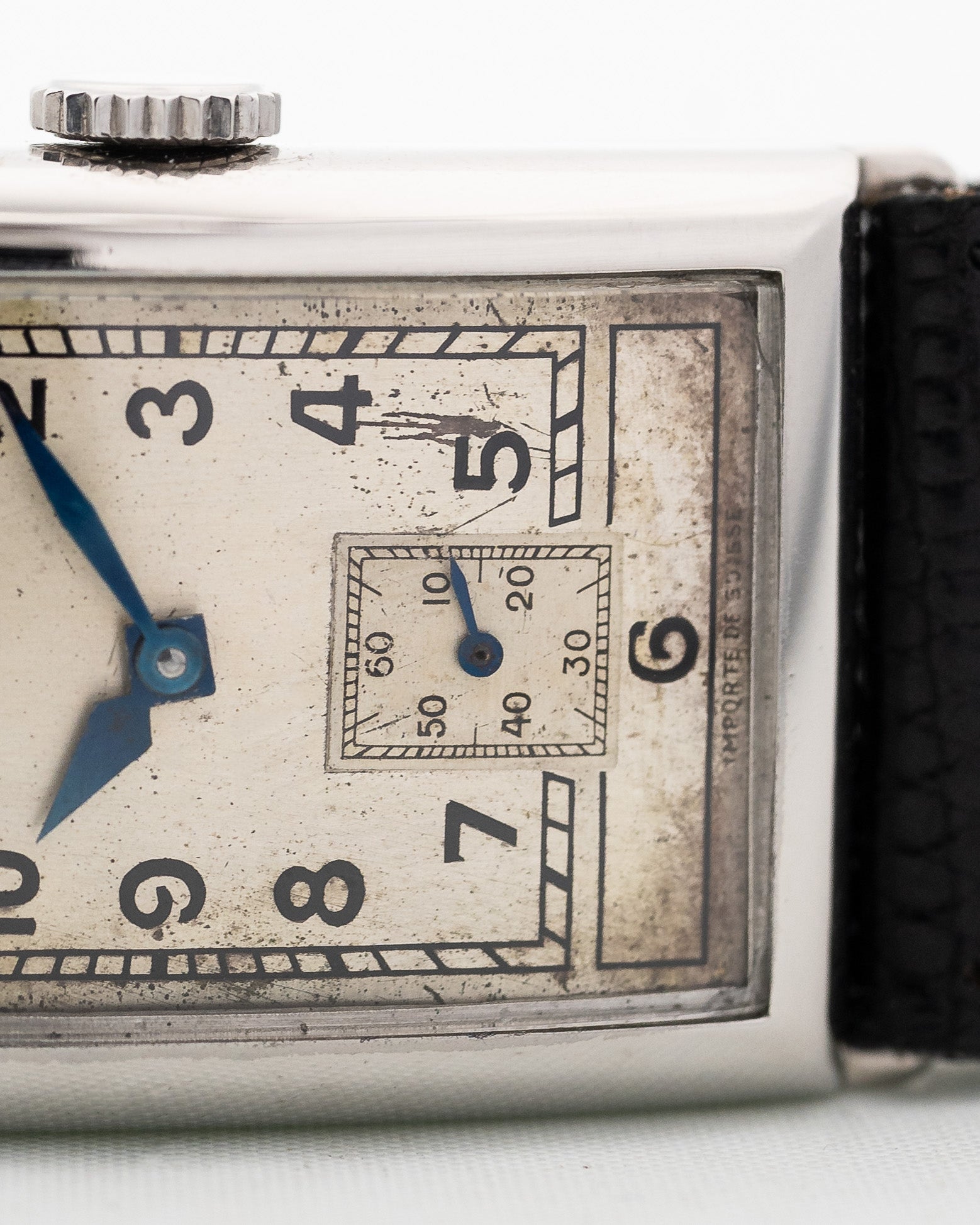 هذه ليست أول ساعة فستان من أوميغا آرت ديكو نقع في غرامها. ويتميز هذا المثال بعلبة فولاذية مستطيلة ضخمة مستطيلة الشكل، ويزيد من جاذبيتها عقاربها الزرقاء الرائعة ذات اللون الأزرق وميناها الكريمي الملون بأرقام عربية على طراز آرت ديكو وثانية فرعية. وما يزيد من جاذبيتها هو حالتها القريبة من لا شيء!