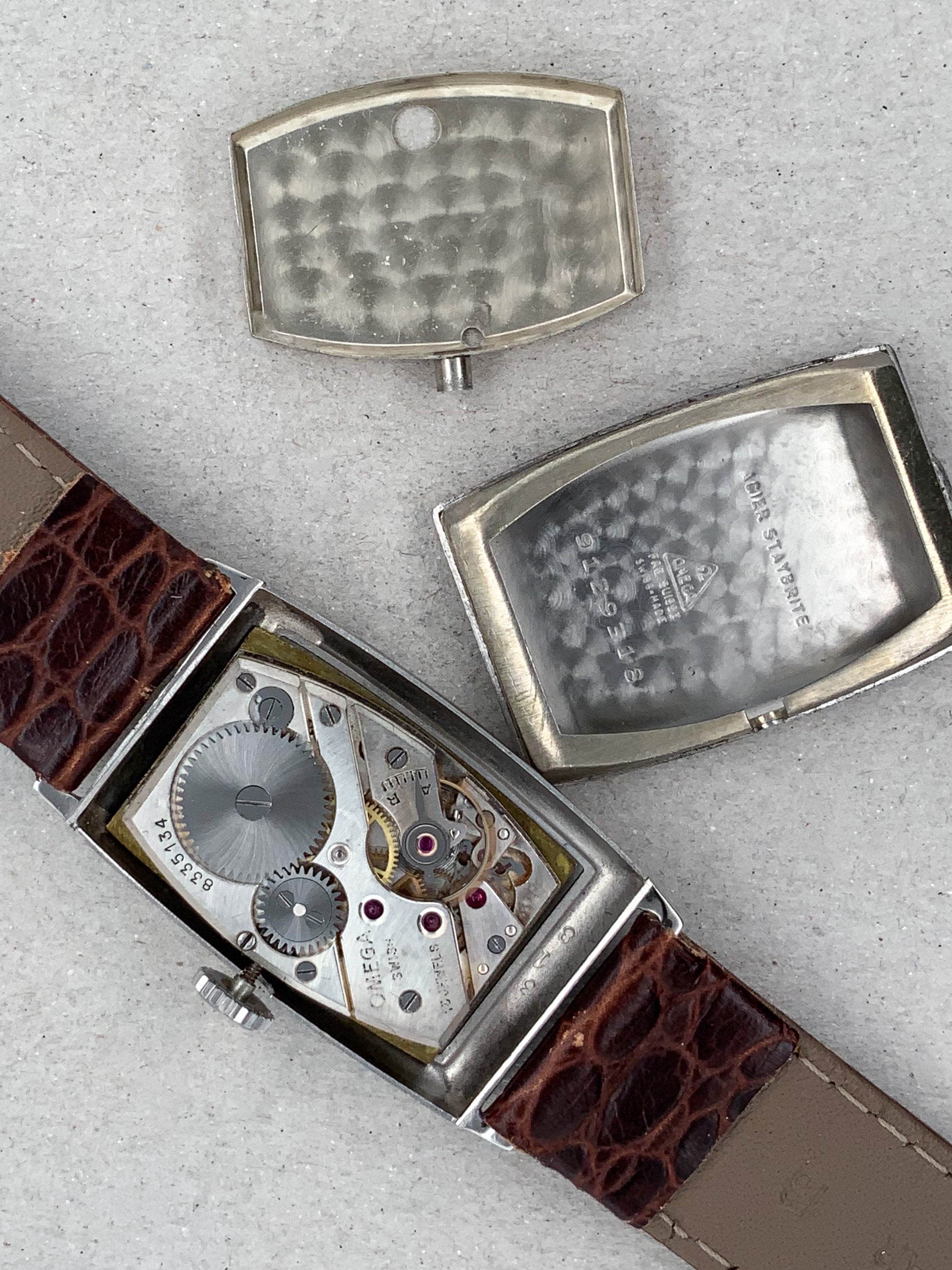 هذه ليست أول ساعة فستان من أوميغا آرت ديكو نقع في غرامها. ويتميز هذا المثال بعلبة فولاذية مستطيلة الشكل على شكل خزان ويزداد جاذبيتها بسبب ميناها الأسود اللامع المذهّب الرائع المزوّد بأرقام عربية على طراز آرت ديكو وثوانٍ فرعية وعقرب ذهبي فريد رائع. وما يزيد من جاذبيتها هو حالتها الرائعة.