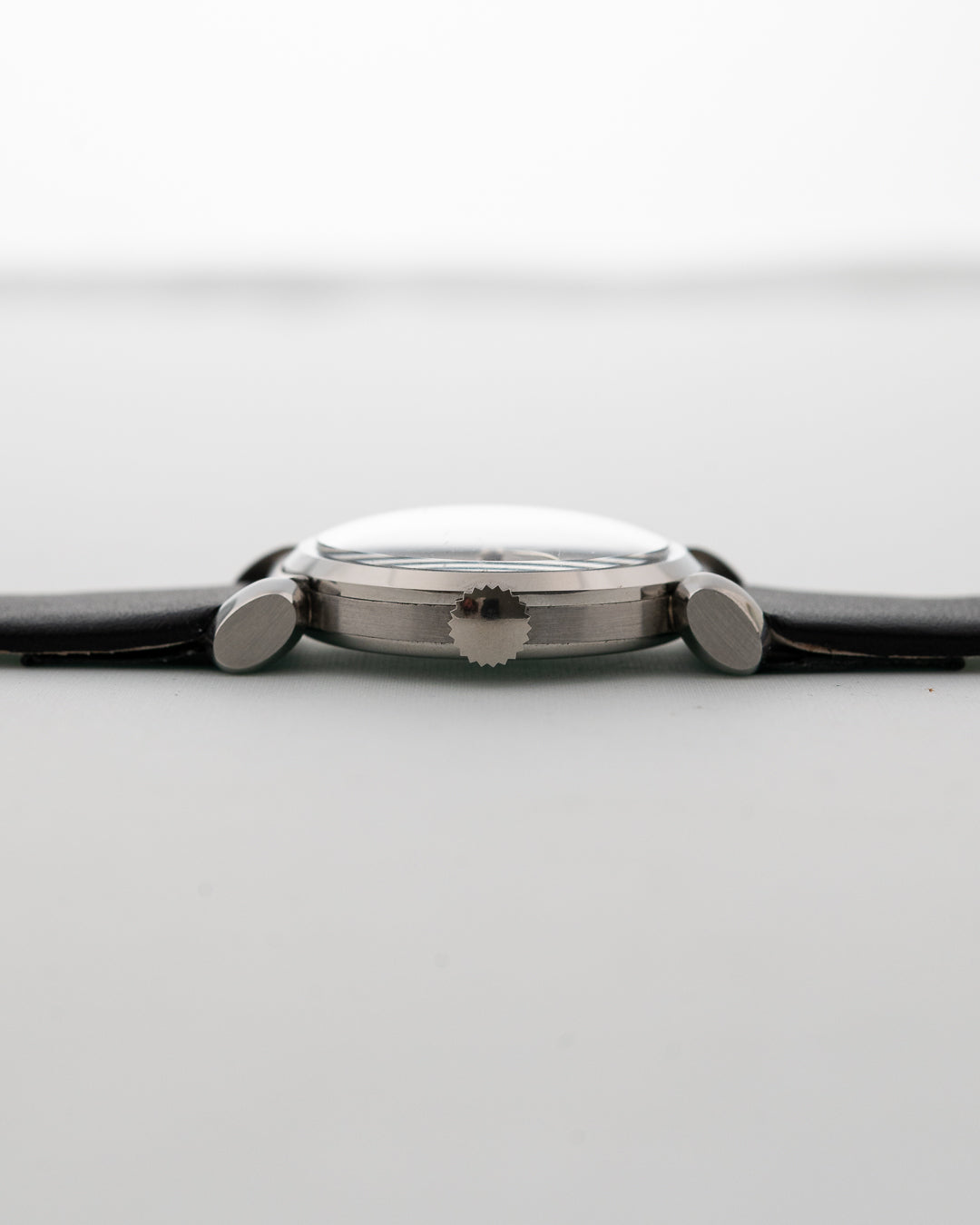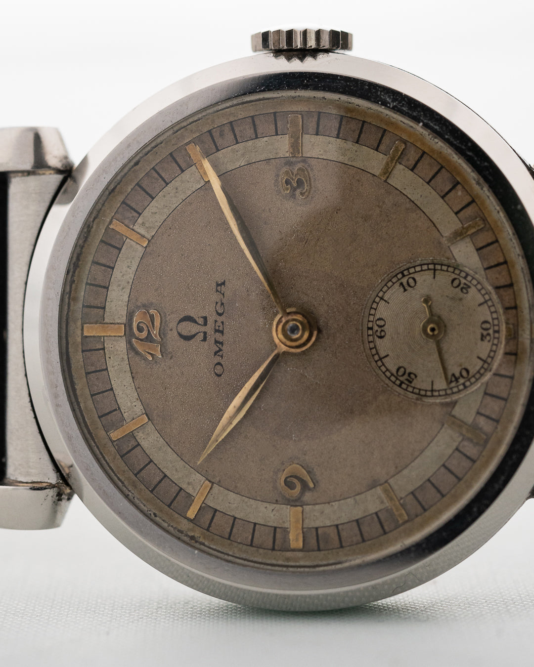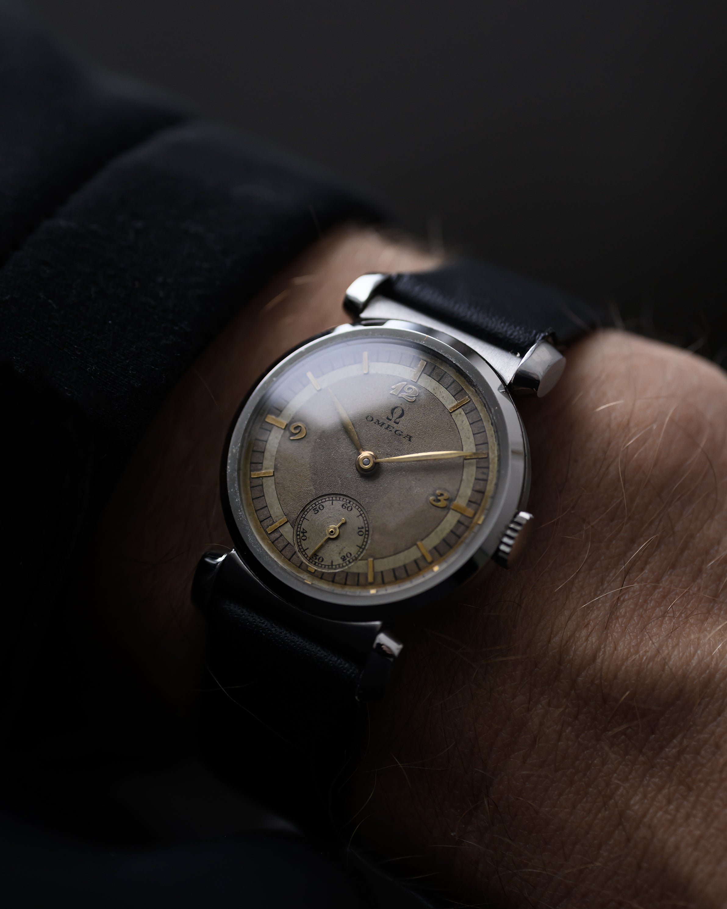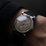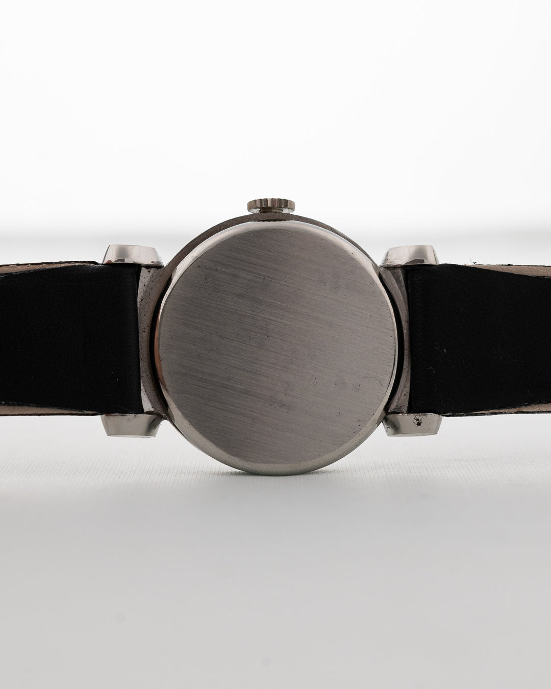 تتميز هذه الساعة الجميلة بتصميم علبة رائع مع مينا رائع من عام 1943. ونظراً لقطرها الضخم من العروة إلى العروة فإنها تلبس كقطعة مقاس 35 مم.