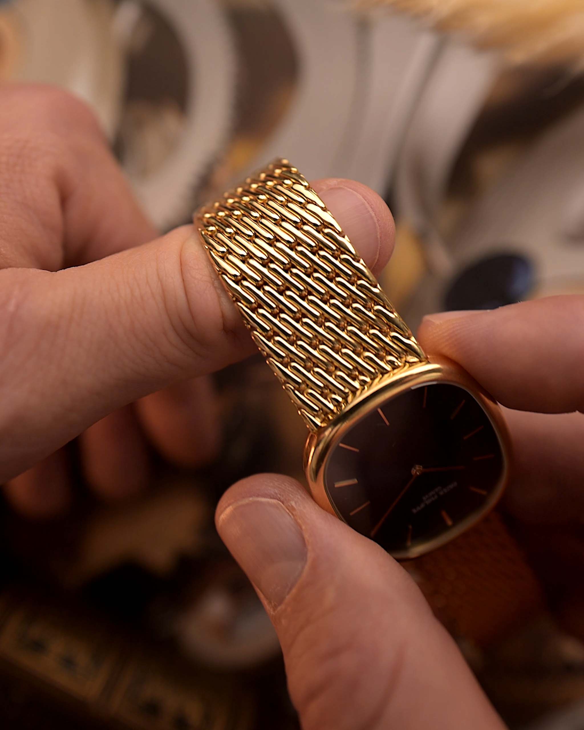 - original Patek Philippe 18k integrated yellow gold strap fitting up to 18.5 cm wrist size / 2 mm thick