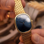 This reference 3738 / 118, also known as the Jumbo Ellipse, elevates the design even further. Its deep blue sunburst sigma dial (MK2 variant) exudes quiet luxury, while the ultra-slim 18k yellow gold case houses the legendary Caliber 240 with a 22k micro-rotor — visible elegance powered by serious mechanical finesse.
