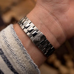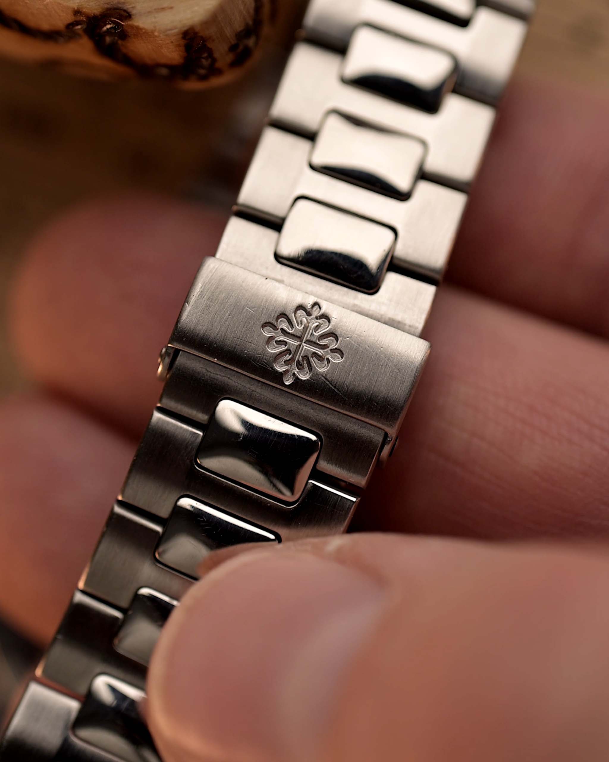 - سوار أصلي من الفولاذ المقاوم للصدأ من Patek Philippe مع تمدد طفيف يناسب معصم يصل حجمه إلى 18.5 سم / بسمك 3 مم