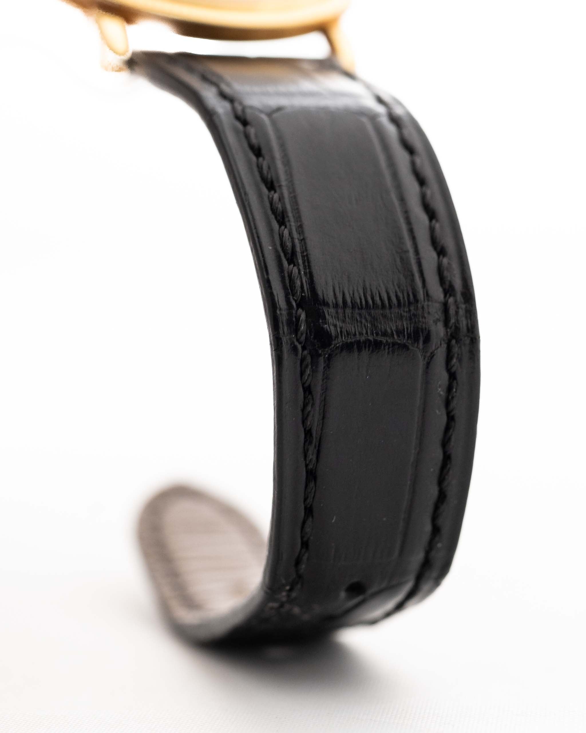 - يأتي مع حزام جلدي أسود أصلي من باتيك فيليب يناسب مقاس المعصم حتى 20 سم/سمك 1.7 مم