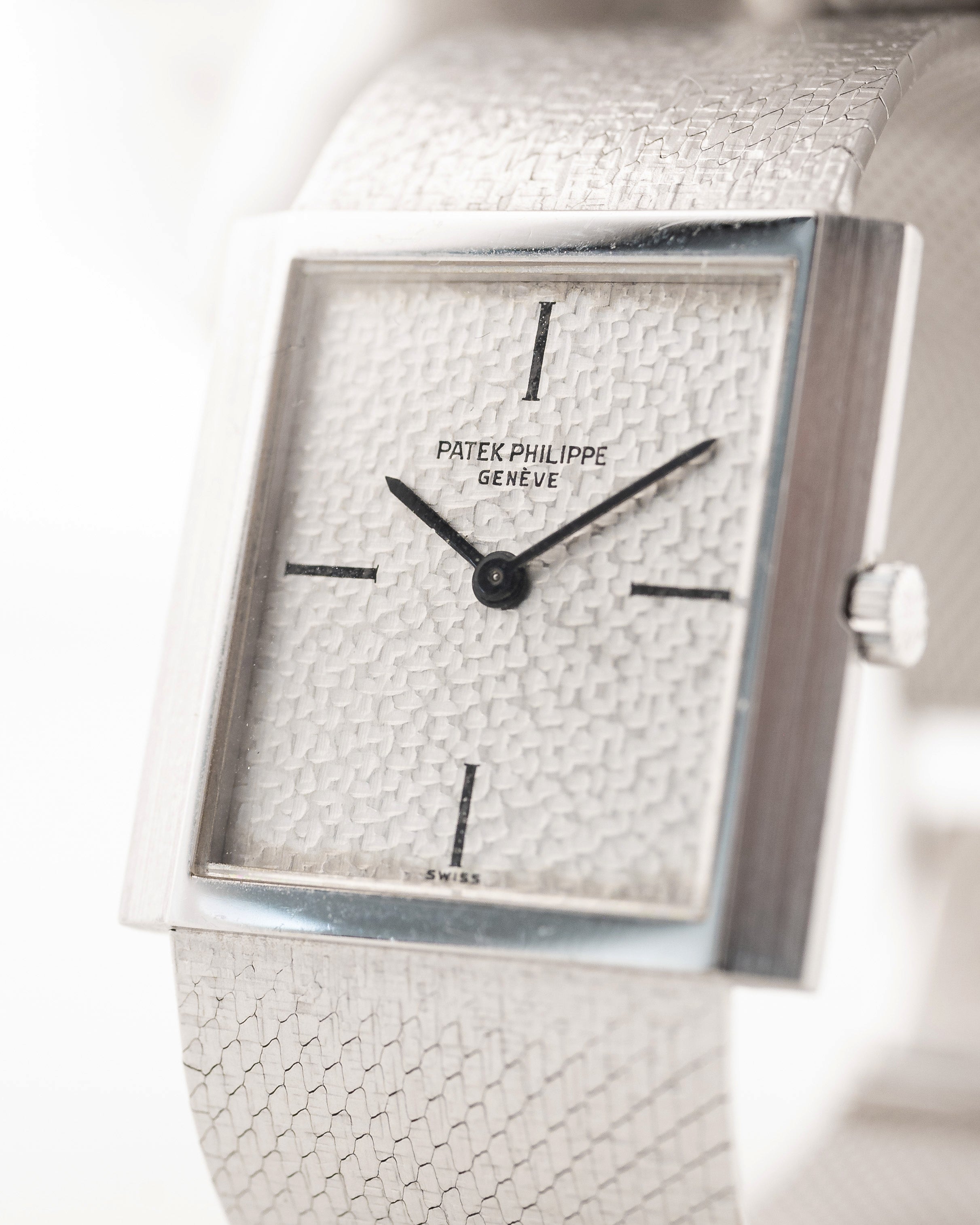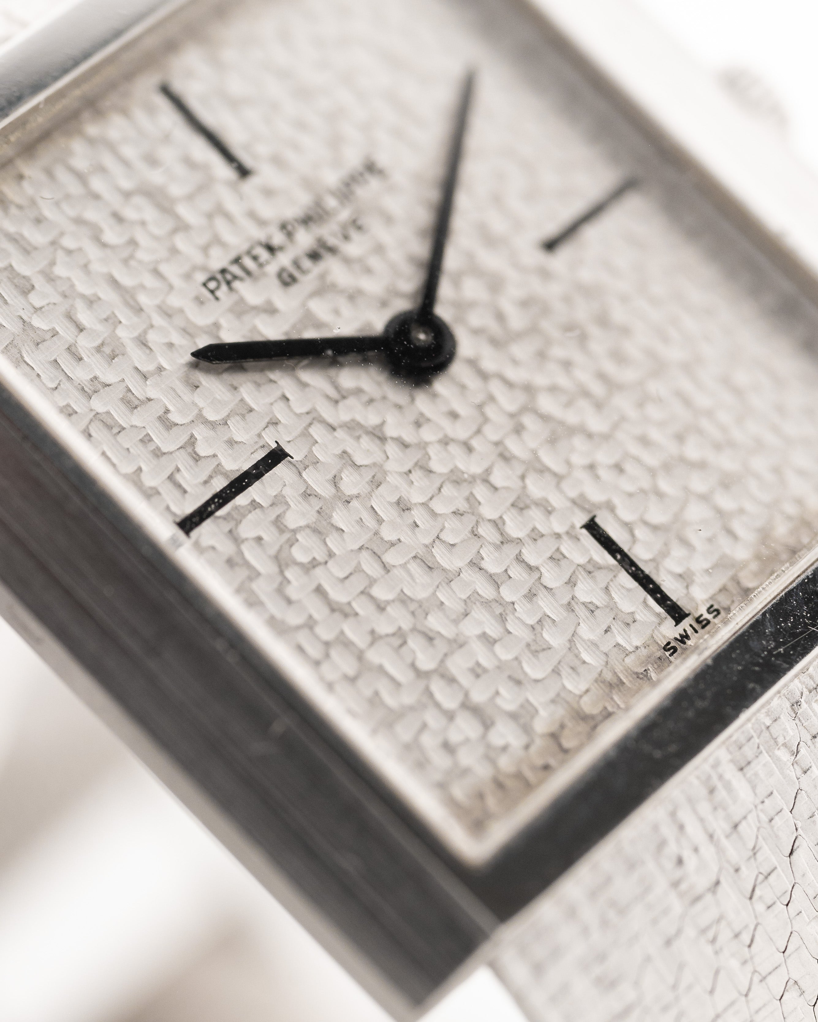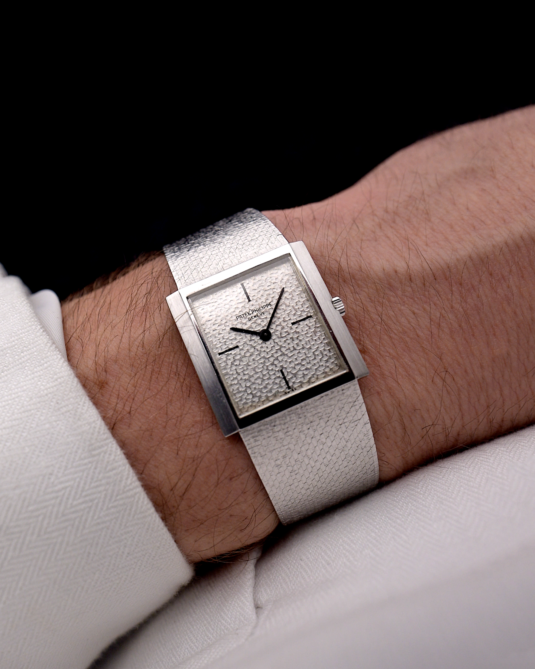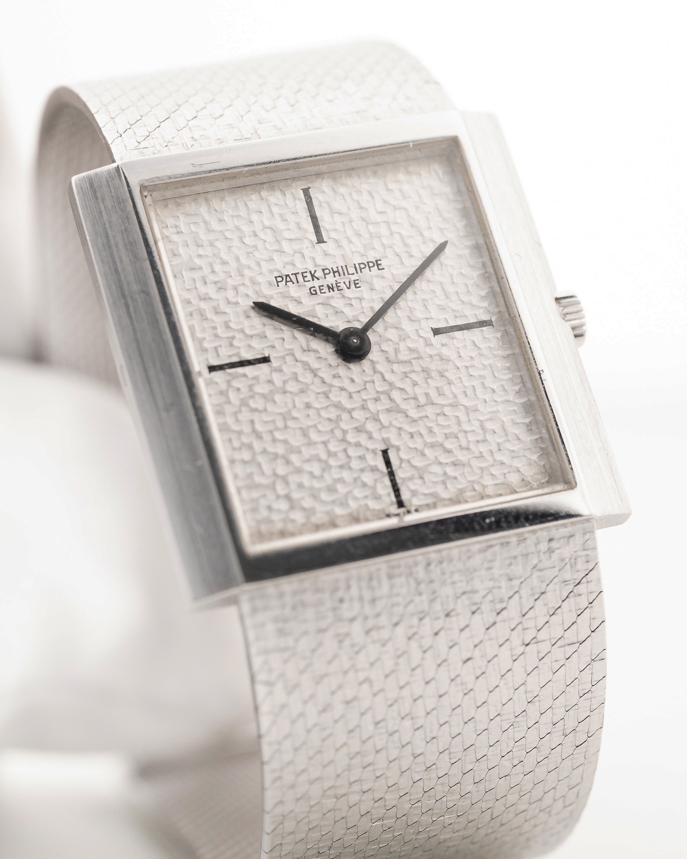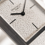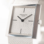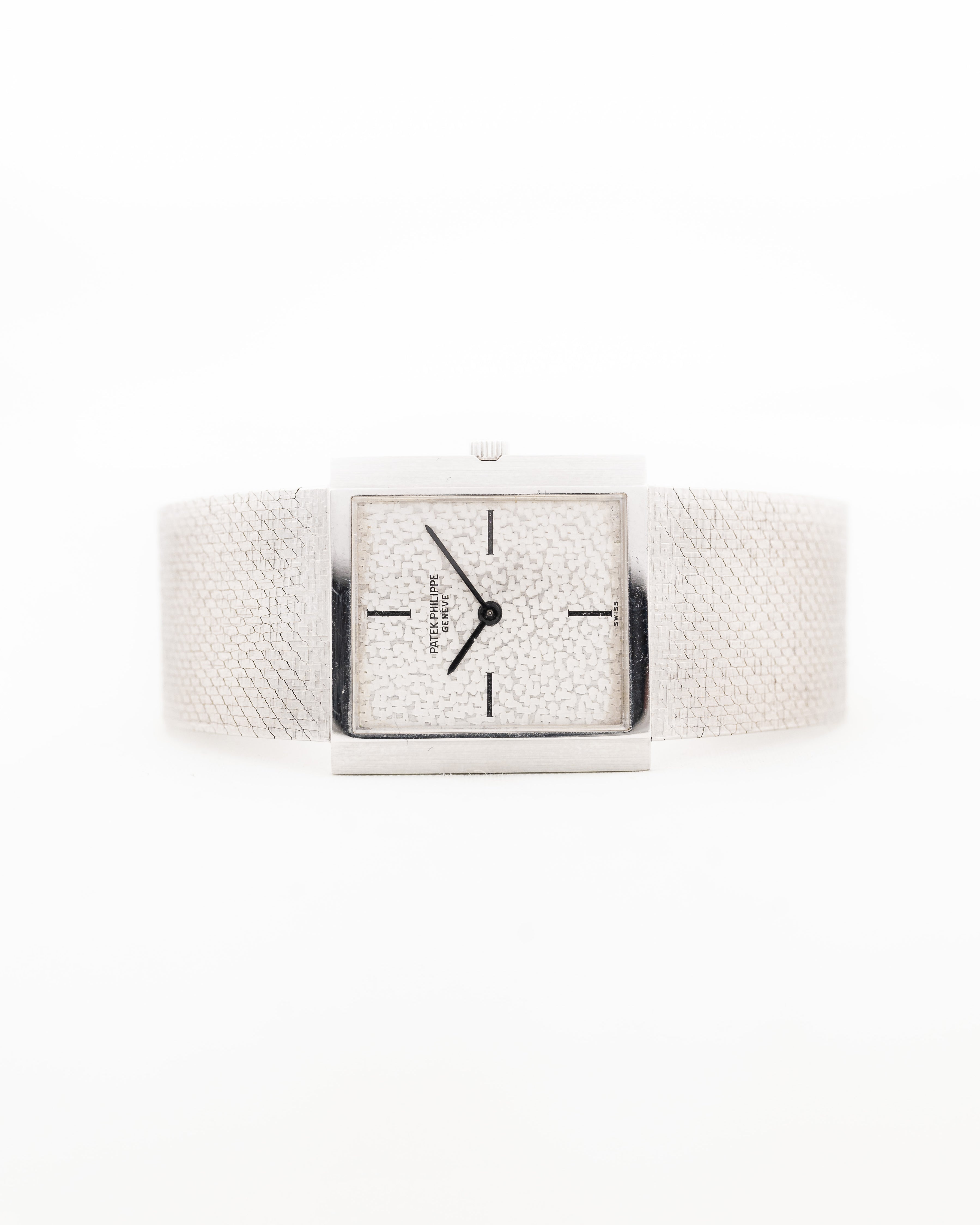 يتميّز موديلنا بعلبة من الذهب الأبيض عيار 26 مم بدون عروات وميناء مذهل مطروق من الذهب الأبيض عيار 18 قيراطًا وسوار من الذهب الأبيض عيار 18 قيراطًا مدمجًا بشكل مذهل مع مشبك باتيك فيليب.