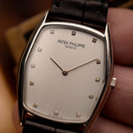 تُعدّ ساعة باتيك فيليب 3842P دراسة في البساطة التي ارتقت إلى الكمال. وقد صُنعت هذه الساعة المرجعية النادرة بالكامل من البلاتين عيار 950، وهي تضفي ثقلًا وجاذبية على المعصم. ويتميز ميناها الفضي المصقول باثني عشر مؤشراً ماسياً يلفت الأنظار دون أن يطغى على العين - ما يكفي من اللمعان لتعزيز نقاء تصميمها.