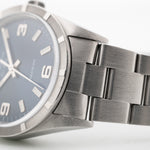 تُعد ساعة Air-King واحدة من آخر الموديلات التي لم تكن معروفة لدى رولكس وتتميّز بتصميم كلاسيكي يمكن للمرء أن يطلبه من عائلة أويستر بيربيتشوال. وقد جعل هذا المرجع من البساطة عنصرًا أساسيًا في هذه الساعة، حيث يتميّز المينا الأزرق الغامق الأنيق بمؤشرات مطبوعة لوضوح القراءة وتضفي العقارب العريضة مظهرًا أنيقًا بشكل عام.