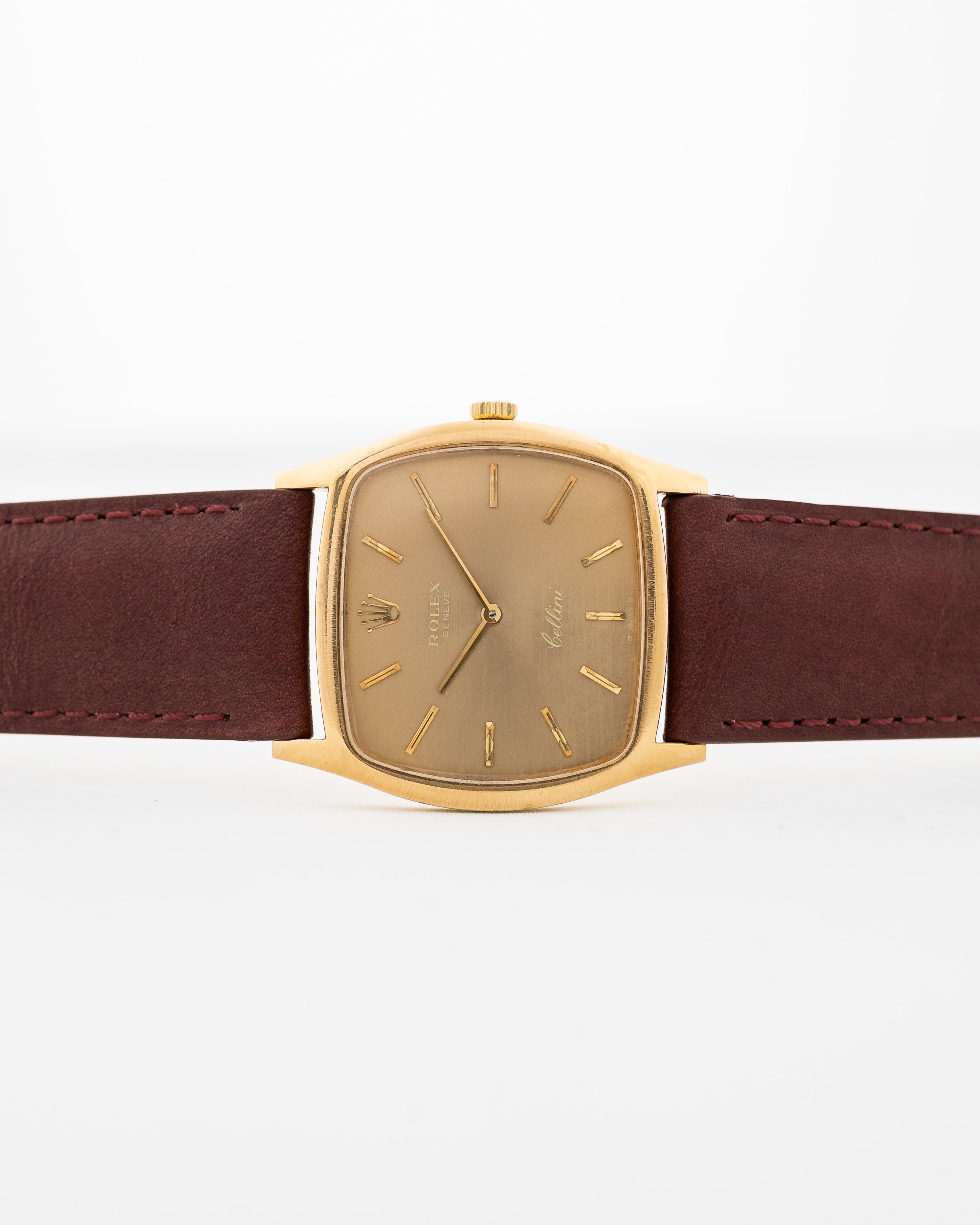 يُظهر خط رولكس تشيليني الجانب الأنيق من رولكس مقارنةً بطرازاتها الرياضية الأكثر شهرة. وقد زُوّد هذا الإصدار بعلبة من الذهب الأصفر عيار 18 قيراطًا من الذهب الأصفر، وهو شكل علبة غير معتاد بالنسبة لرولكس.