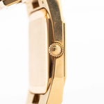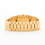 وبالاقتران مع سوار بريزيدنت الأصلي المصنوع من الذهب الأصفر عيار 18 قيراطًا، تحقق الساعة حضورًا سلسًا يشبه المجوهرات على المعصم. ويتميز المينا الذهبي المصقول أفقياً بميناء ذهبي مصقول أفقياً لا يحده الزمن وبسيط بشكل جميل، ويذكّرنا بالألوان الدافئة المفضلة في ساعات الملابس الراقية في أوائل الثمانينيات، بما في ذلك ساعة Patek Ellipse الشهيرة في تلك الحقبة.