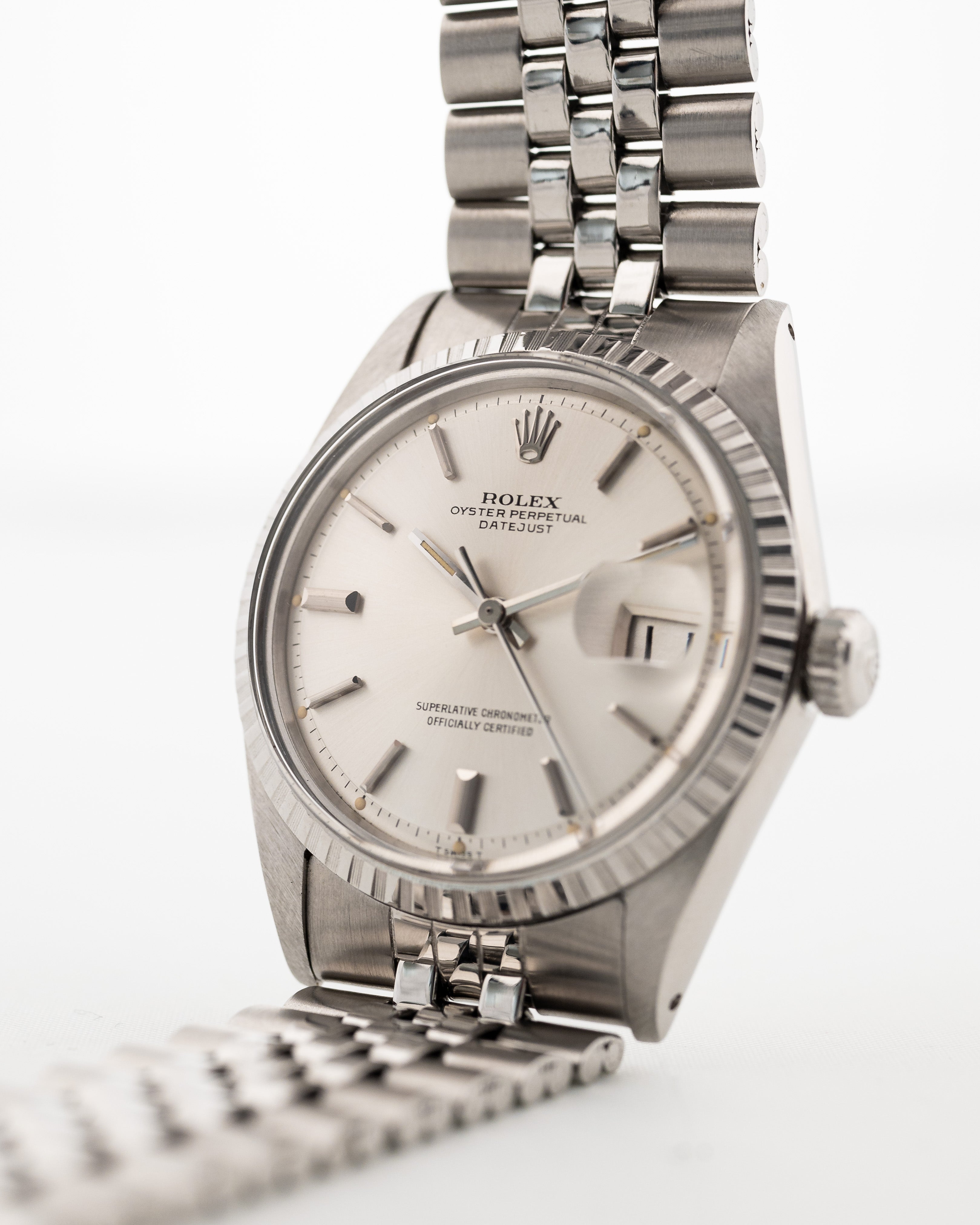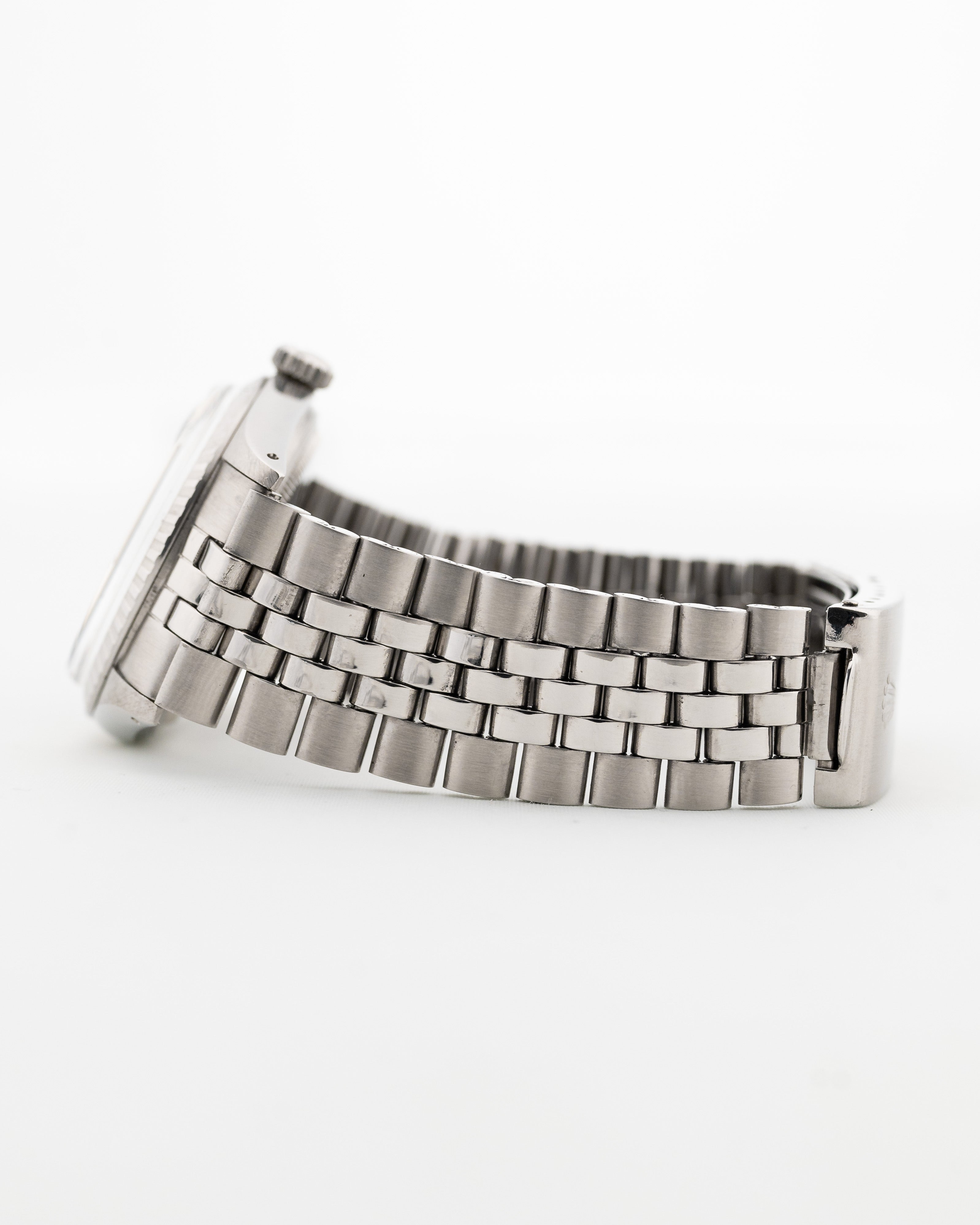 تتميّز هذه القطعة التي تعود إلى عام 1973 بإطارها المدوّر بمحرك، ومينا فضي جميل في حالة لا تشوبها شائبة مع لُمعة مثالية وعلبة قوية للغاية ذات حواف حادة.