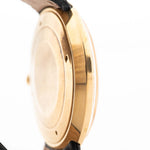 يتناغم الميناء الرمادي، الأصلي تماماً والذي لم يتم تنقيحه أبداً، بشكل رائع مع العلبة الذهبية الدافئة، مما يمنح الساعة حضوراً راقياً وبسيطاً على المعصم. يبدو الحجم الذي يبلغ 36 مم عصرياً ومتوازناً، خاصة بالنظر إلى الشكل الدائري المثالي.