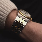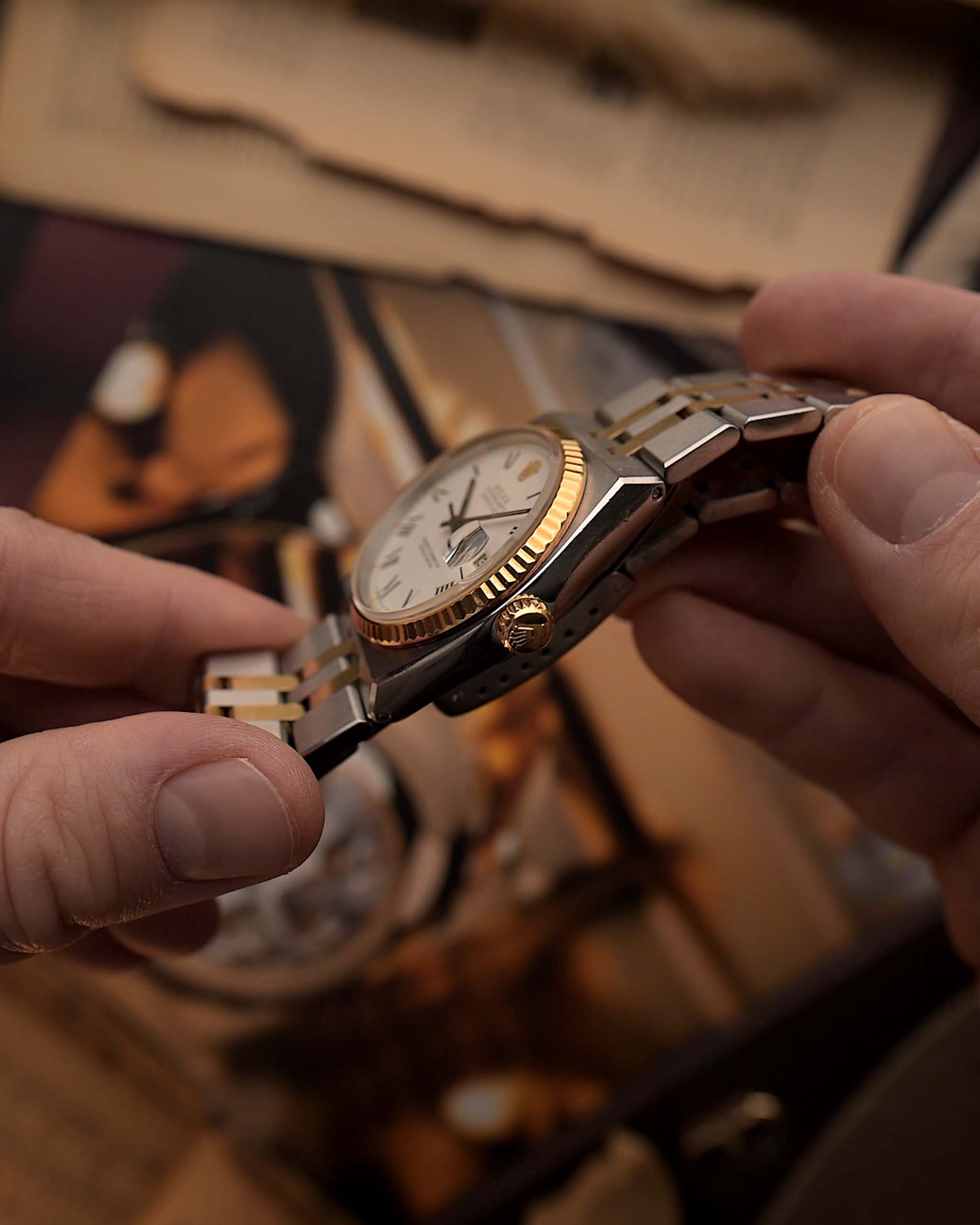 ما يهم حقًا في طرازات Oysterquartz هو حالة العلبة، وتتميز هذه النسخة بعلبتها النقية والمحفوظة جيدًا. إلى جانب ميناء Buckley الأبيض الأصلي والسوار المدمج ذي اللونين المميز، فإنها تجسد بشكل مثالي لغة التصميم الحادة والزاوية التي كانت سائدة في تلك الحقبة.