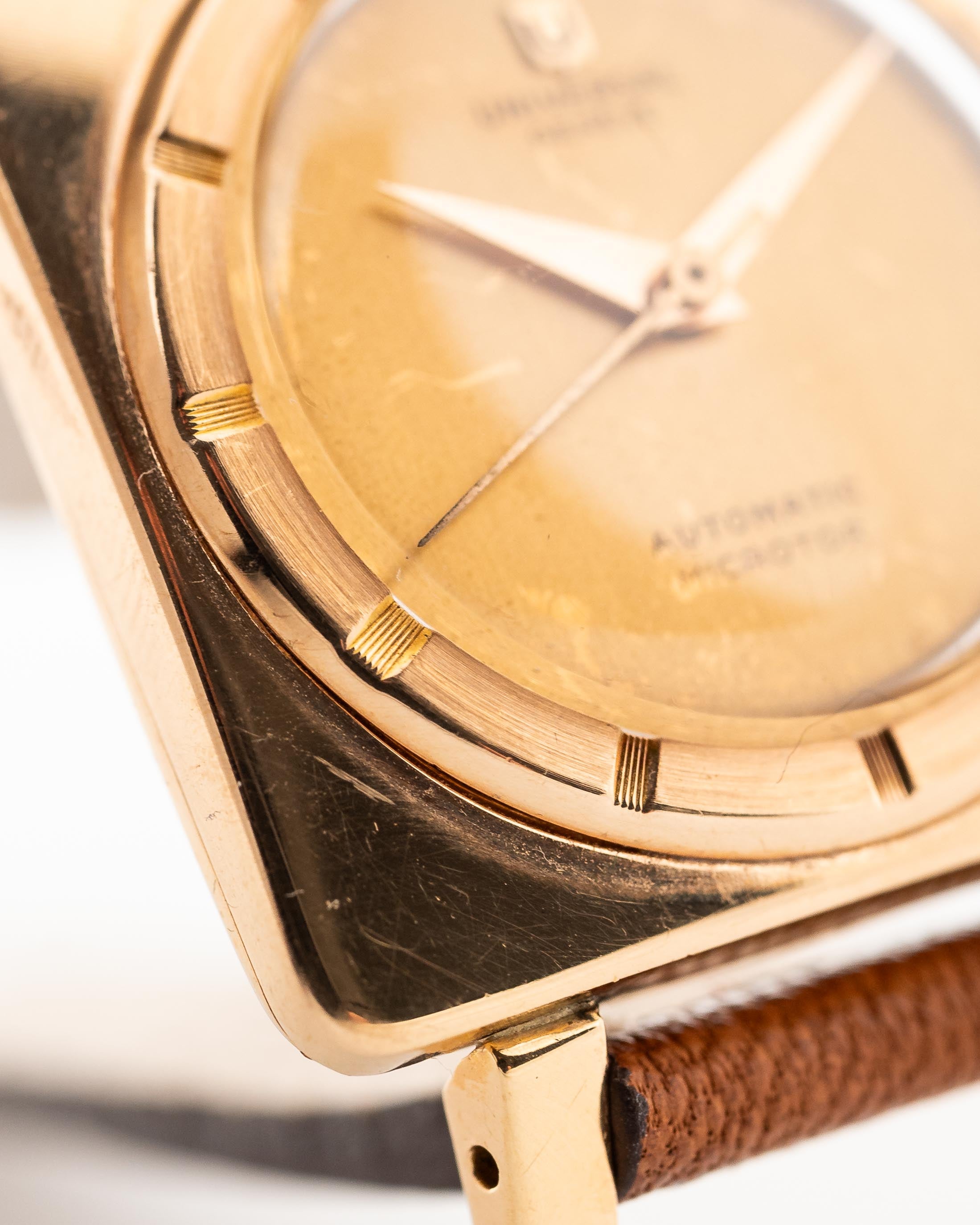 تُعدّ ساعة يونيفرسال جينيف سكوير من الذهب الوردي عيار 18 قيراطًا ساعة مميزة حقًا ولن تراها كثيرًا على معاصم أخرى. أُنتجت على مدى 7 سنوات فقط بين عامي 1955 و1962. تحتوي على بعض عناصر ساعة Polerouter مثل الإطار، الذي لا ينتصر على الميناء كالمعتاد بل على العلبة المربعة المصنوعة من الذهب الوردي عيار 18 قيراطًا. تنضح هذه التفاصيل التصميمية بنوع مختلف من السحر وتخلق حضوراً مدهشاً على المعصم.