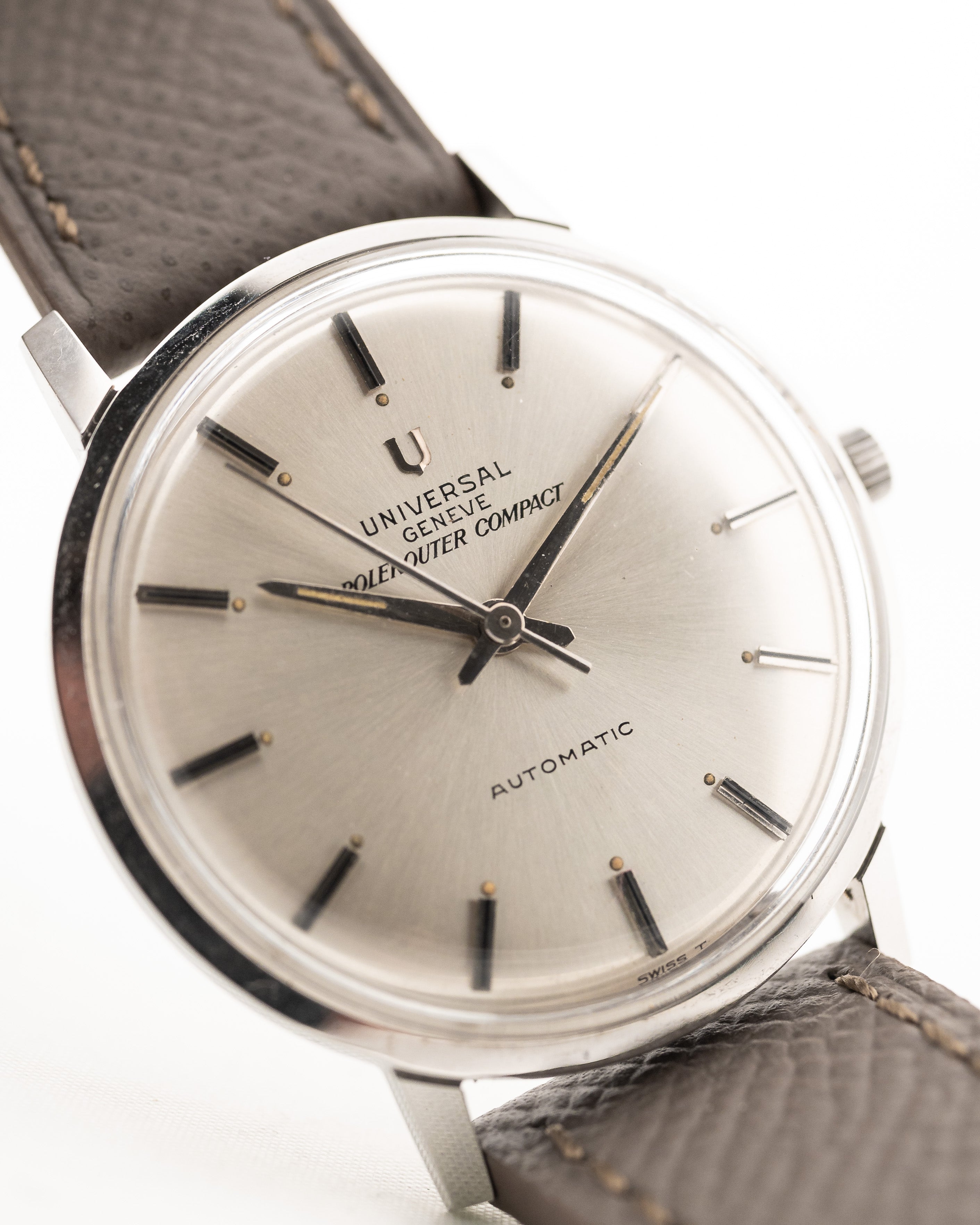 الإصدار الذي تراه هنا هو أحد أندر الإصدارات التي يمكنك العثور عليها: "كومباكت". وهي مزوّدة بميناء مذهل بلون فضي مذهل في حالة لا تشوبها شائبة، وعلامات ساعات مرصّعة بالعقيق اليماني وشكل دائري بسيط على الحافة. وعموماً، إنها ساعة جميلة التصميم وذات تاريخ عريق في مجال الطيران.