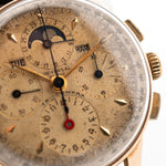لا تُعد نسختنا التي تحمل الرقم المرجعي 22258 من أربعينيات القرن الماضي مثالاً رائعاً على هذا الطراز فحسب، بل إنها أيضاً دليل رائع على سبب الإقبال الشديد على ساعة تراي كومباكس. وتتميّز بعلبة جميلة من الذهب الوردي عيار 18 قيراطًا مع عروات مائلة وتصميم مينا رائع.
