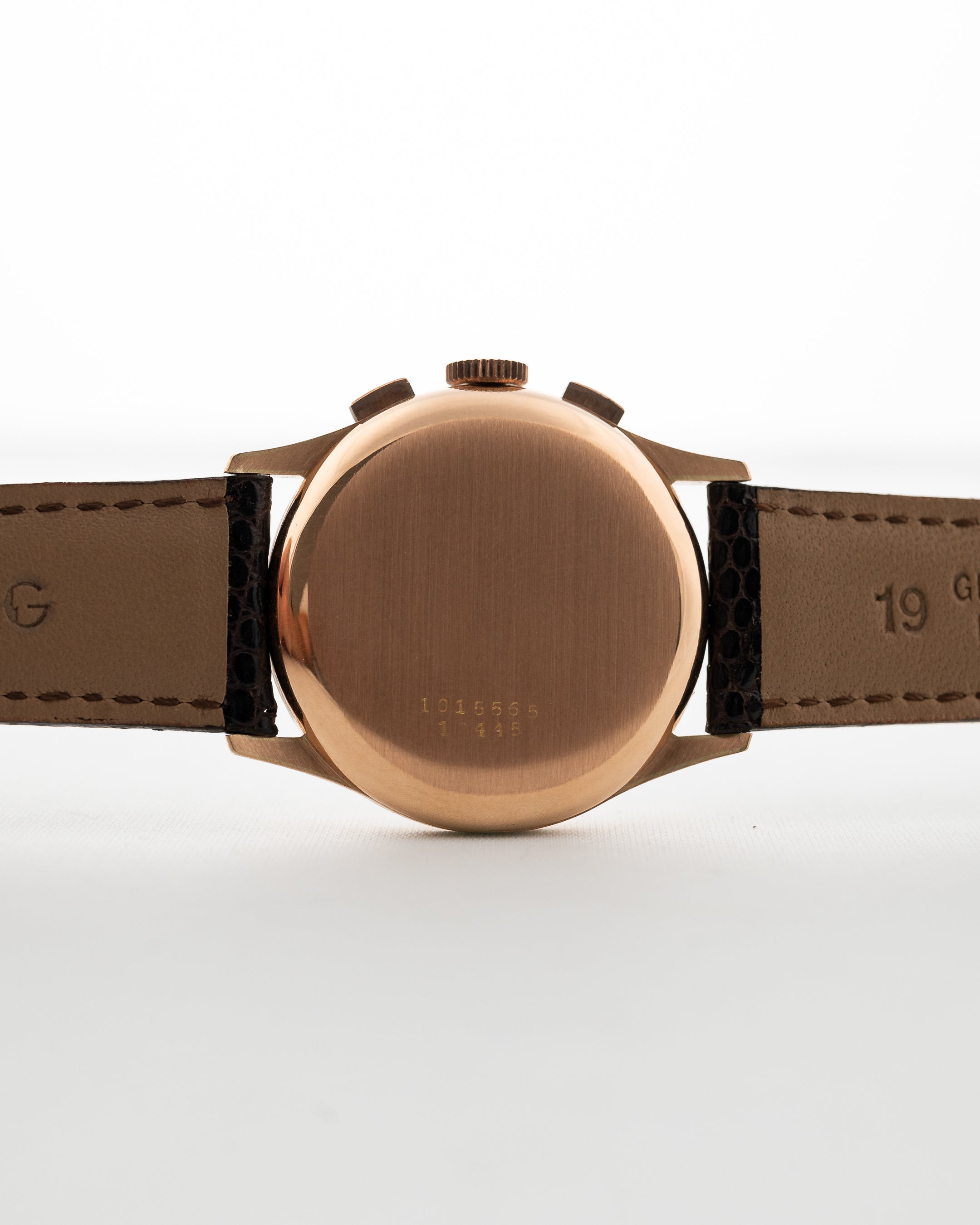 تُعدّ ساعة Universal Geneve Uni-Compax مثالاً رائعاً على ما أبدعته الشركة المصنعة في أربعينيات القرن الماضي. تضمّ العلبة المدمجة المصنوعة من الذهب الوردي عيار 18 قيراطًا والمزوّدة بأزرار مربعة الحركة المرغوبة عيار 285.