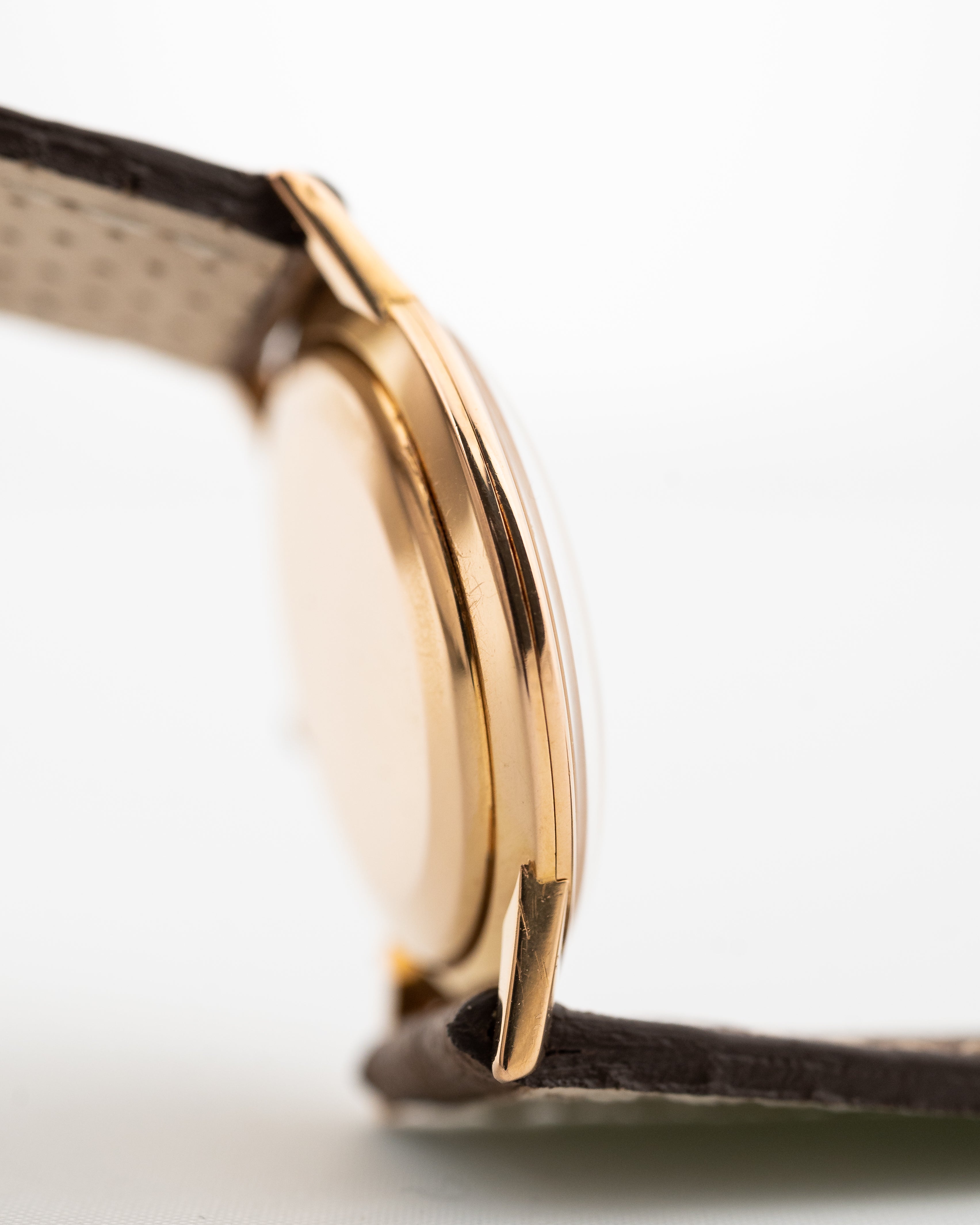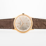 لدينا هنا ساعة فساتين ڤاشرون كونستانتين من الذهب الأصفر عيار ١٨ قيراطًا من ستينيات القرن الماضي. وتتميز هذه القطعة بالذات بميناها الفضي الجميل الذي يتميز بمظهره الفضي المنفوخ، وشعار فاشرون المطبوع، وثوانٍ فرعية نظيفة وعلبة قوية غير مصقولة من الذهب الوردي عيار ١٨ قيراطًا.