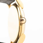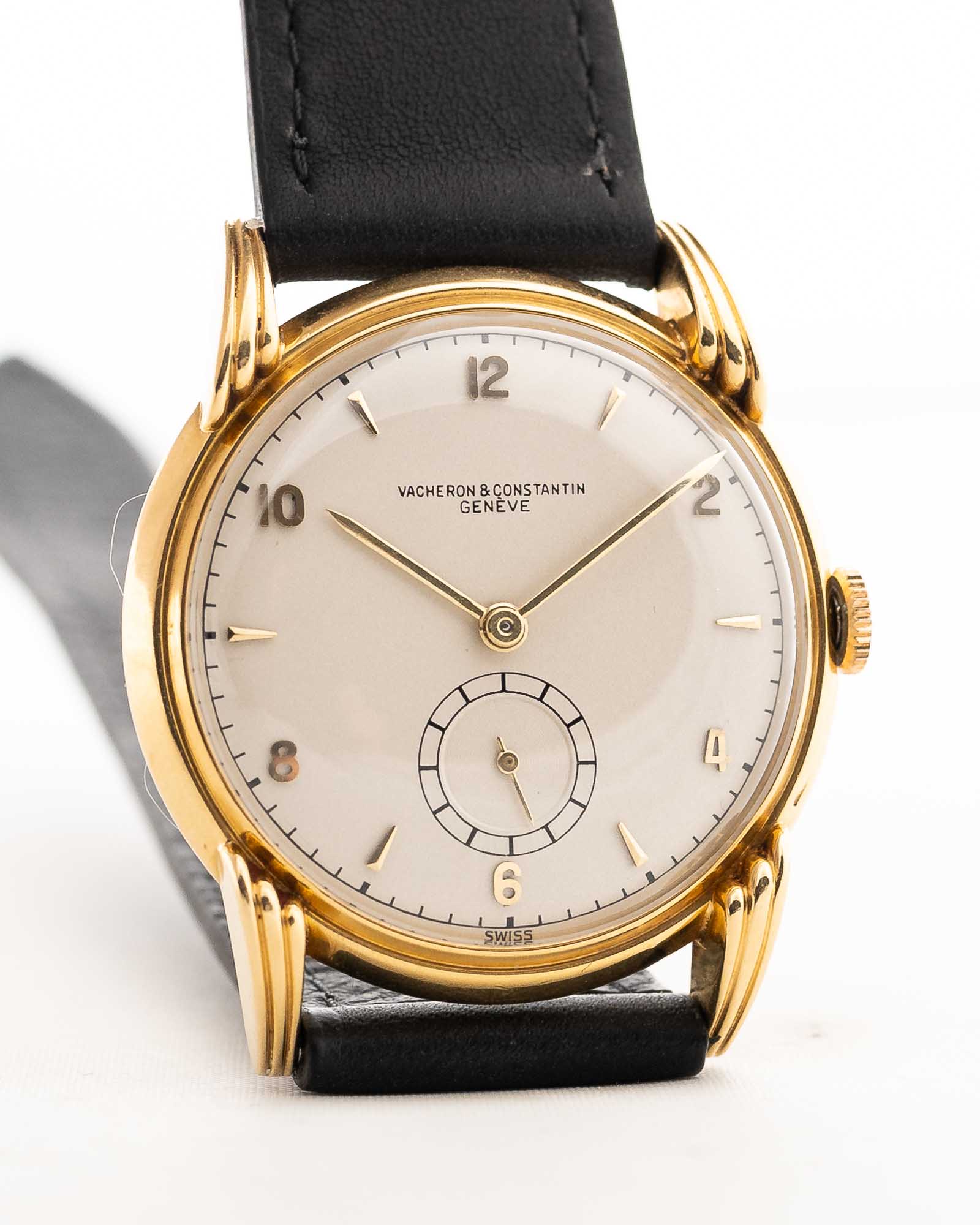 تمثل ساعة Vacheron Constantin النادرة للغاية من الأربعينيات العصر الذهبي للحرفية السويسرية. تأتي الساعة في علبة جميلة من الذهب الأصفر عيار 18 قيراط من Eggly & Cie بقياس 33 ملم، وتجمع بين التصميم الهندسي الراقي والحضور الرقيق على المعصم.