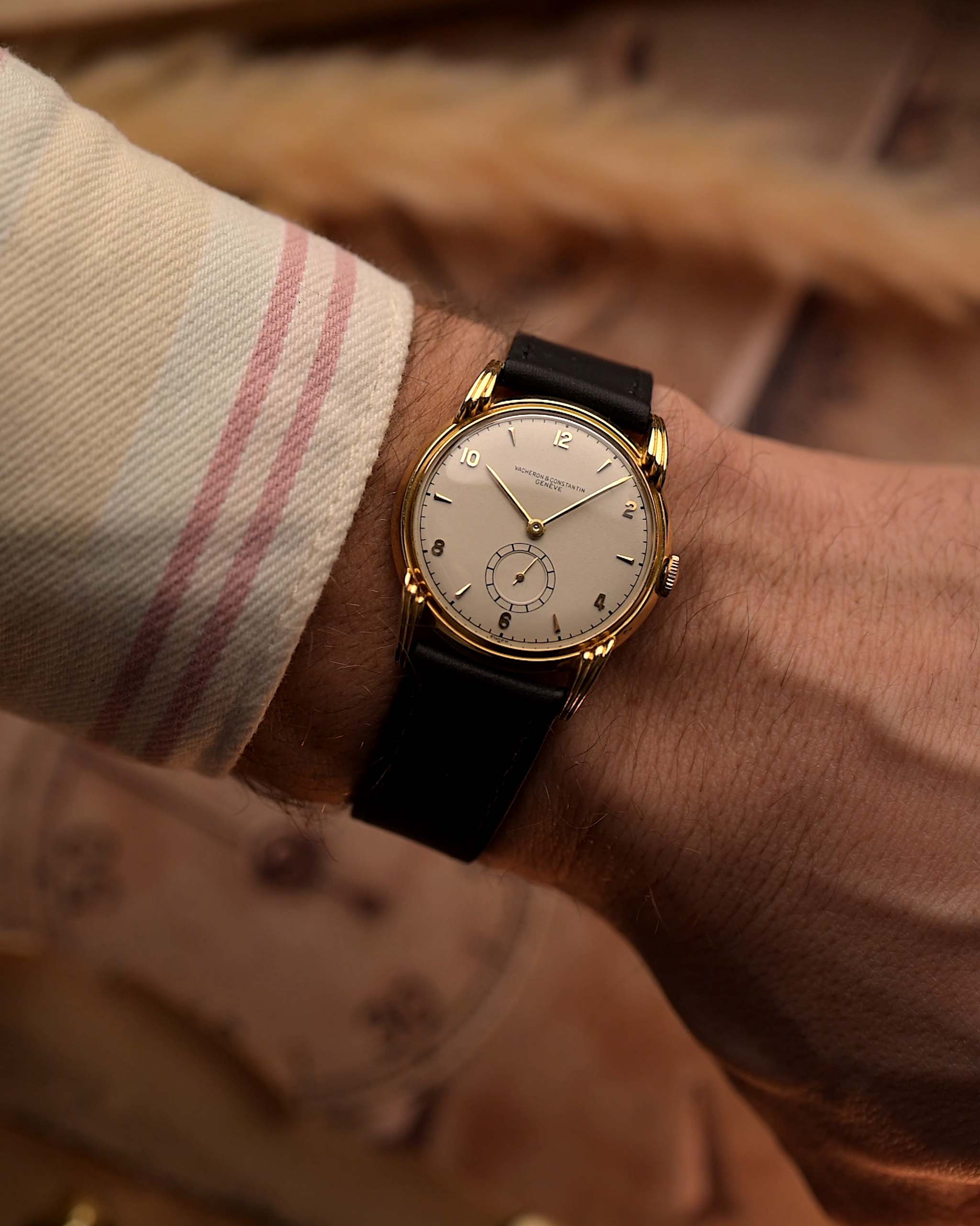 يحتوي الساعة على عيار 458 الساحر، وهو حركة يدوية من إحدى أكثر العصور شهرة في تاريخ فاشيرون. إلى جانب مؤشر الثواني الفرعي الأنيق وتصميم العلبة الكلاسيكي الذي يعود إلى منتصف القرن، تُعد هذه الساعة ساعة رجالية حقيقية: بسيطة، متطورة، ونادرة بلا شك.