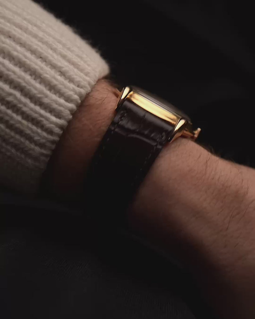 يكشف هذا النموذج الرائع، المصنوع من الذهب الوردي عيار 18 قيراطًا بقطر 38 ملم، عن اهتمام فاشيرون بالتناسب والأناقة في أبهى صورهما. يتميز الميناء الفضي بتصميم نادر للأرقام 3-9-12، يبرزه الماس الوردي وعلامات الساعات الدائرية، ومؤشر الثواني الفرعي، ومسار الدقائق الخارجي الدقيق — وهي تفاصيل تنضح بالرقي دون إفراط. يضفي الإطار العريض للغاية حضورًا هائلاً على المعصم.