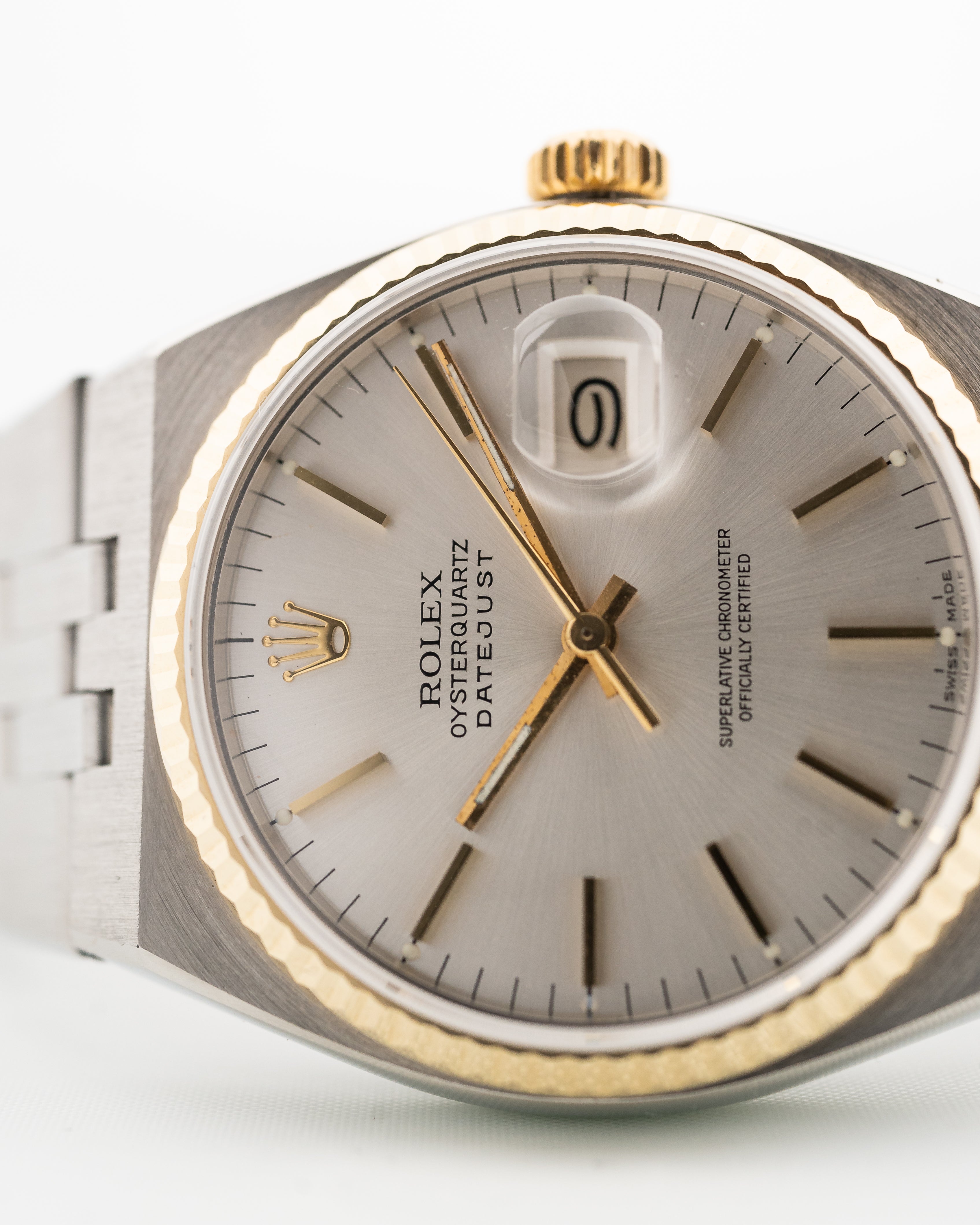 The condition of the case is the most important thing to look at on Oysterquartz models, they are more rare and it's near impossible to find them in the condition like our example.