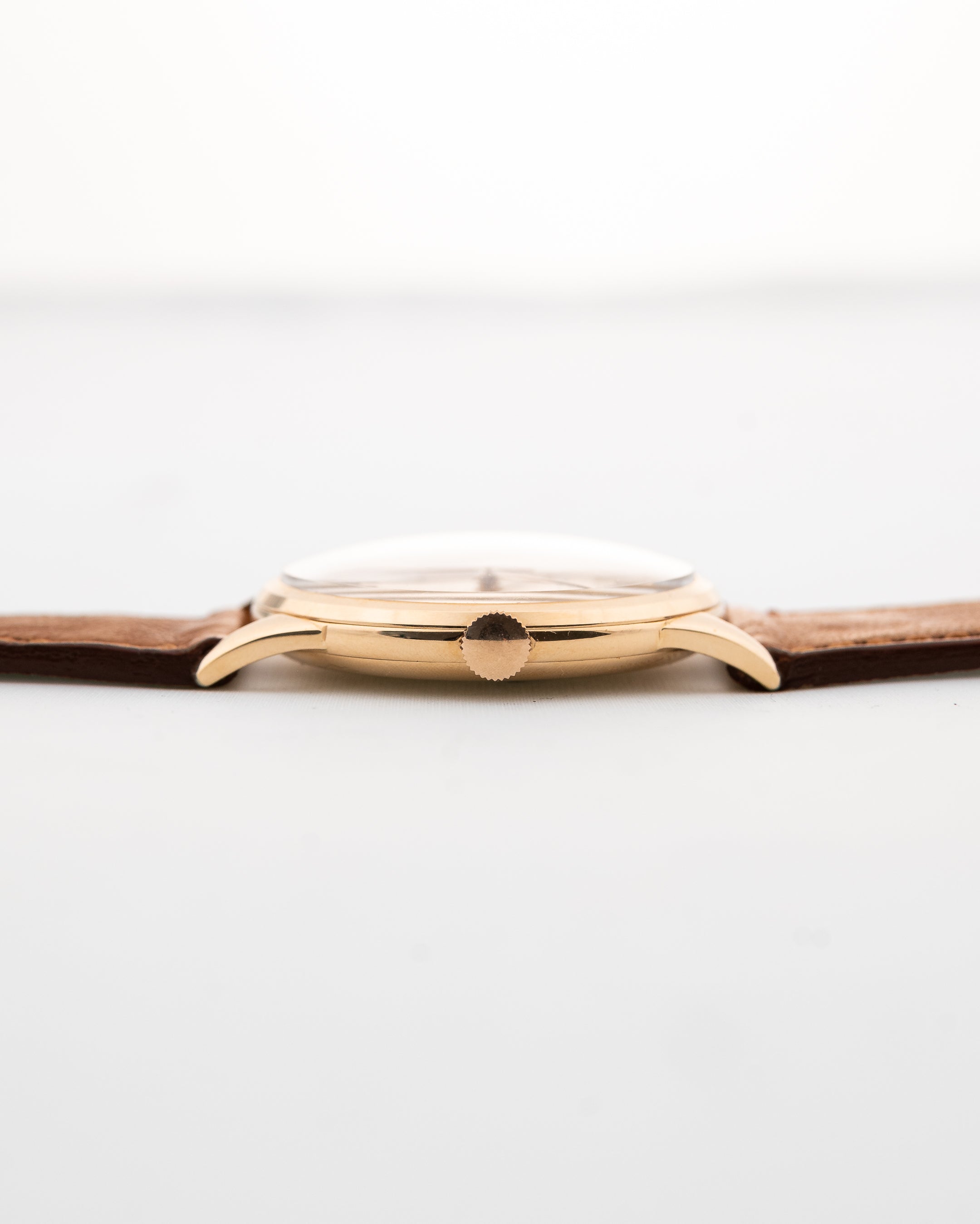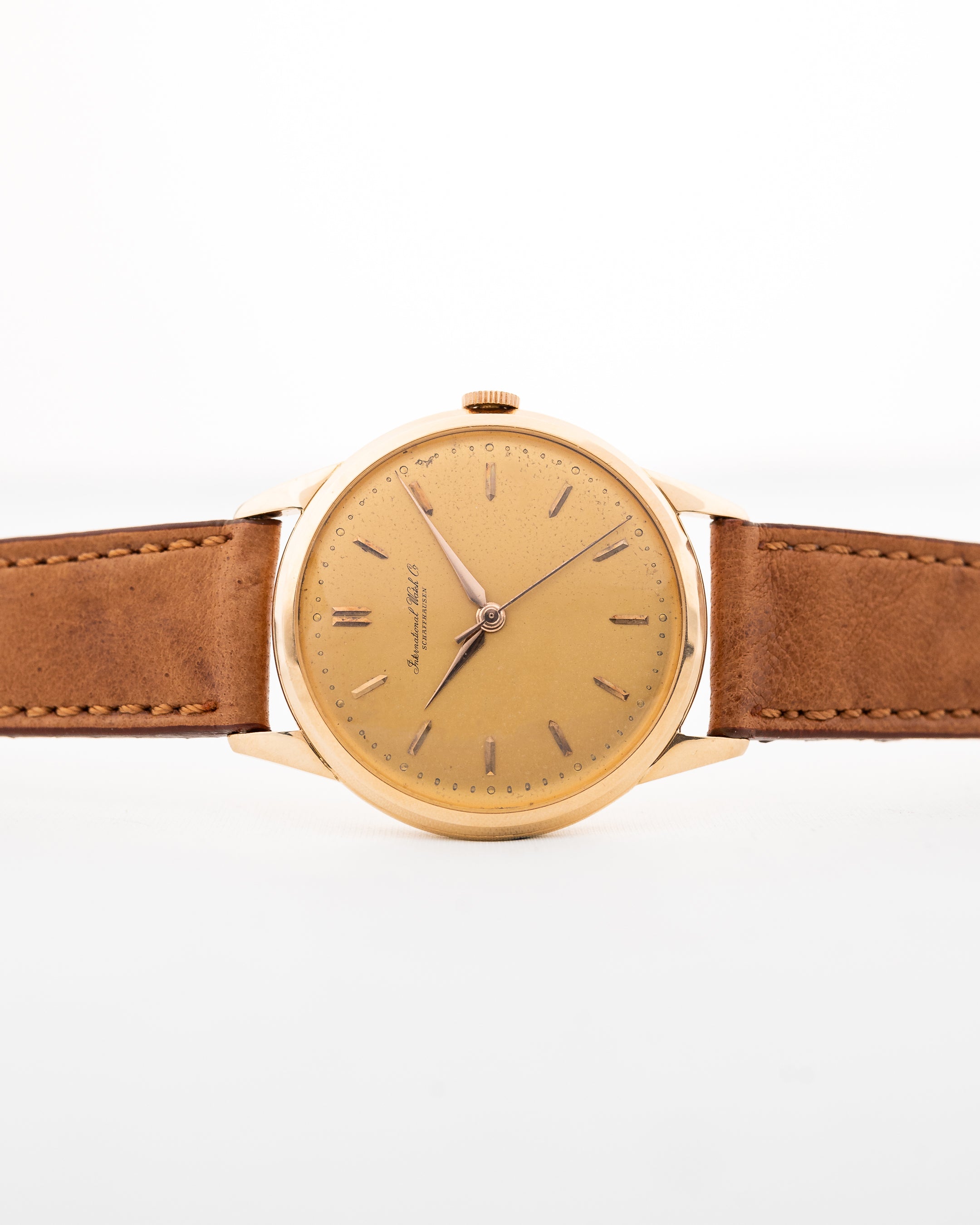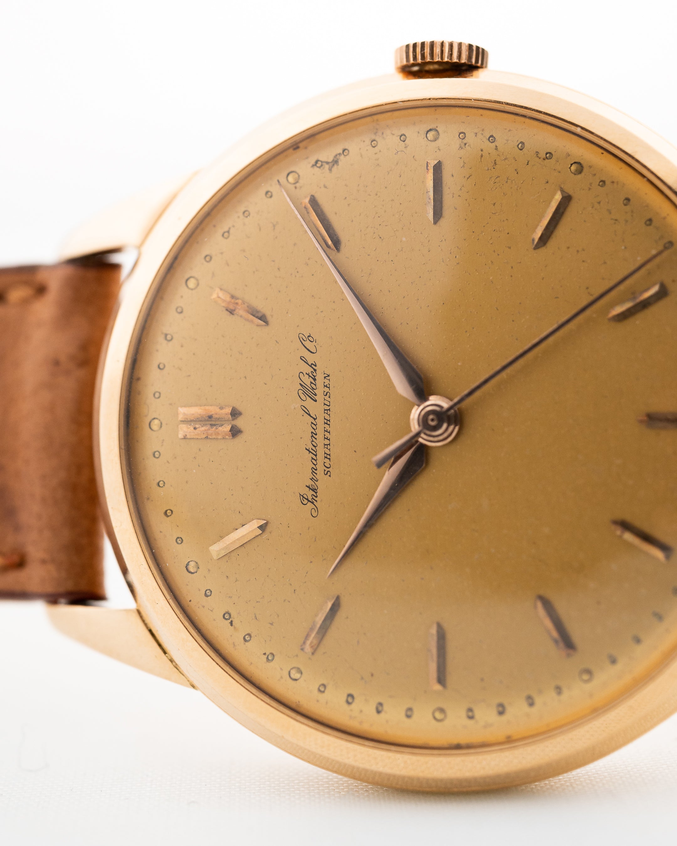 IWC has produced a very wide variety of wristwatches from an early time ranging from dress watches to aviation watches. This example, in 18k rose gold with slightly angled lugs and a beautiful copper colored dial would remain a constant in anyone's collections.
