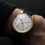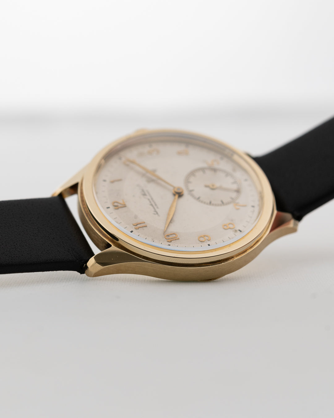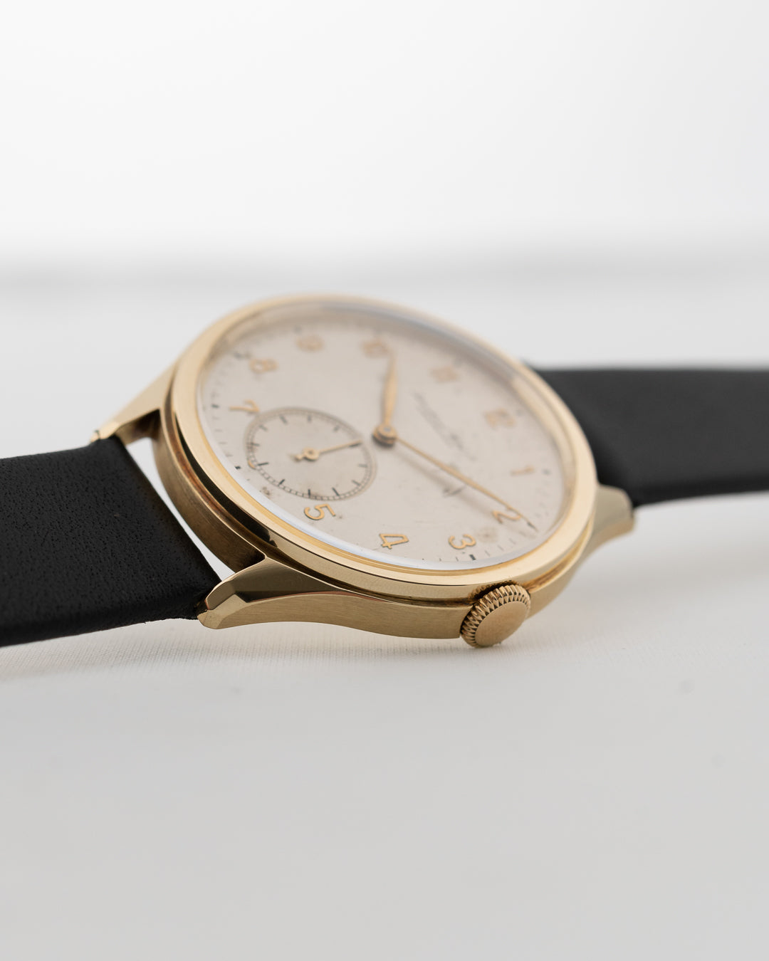 This hardly ever seen oversized IWC is a wonderful example of the timeless elegance of vintage wristwatches from the 1940s. The watch, known as the "Hermet" has a tightly sealed case back and inset crown, protecting it against humidity and dust.