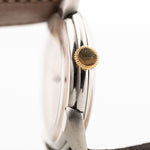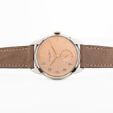 Our example from 1947, with an unusual and beautiful Jumbo 36,5mm stainless steel case, thick claw lugs and a stunning salmon sub second dial would remain a constant in anyone's collections, especially as it comes in this outstanding condition.