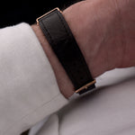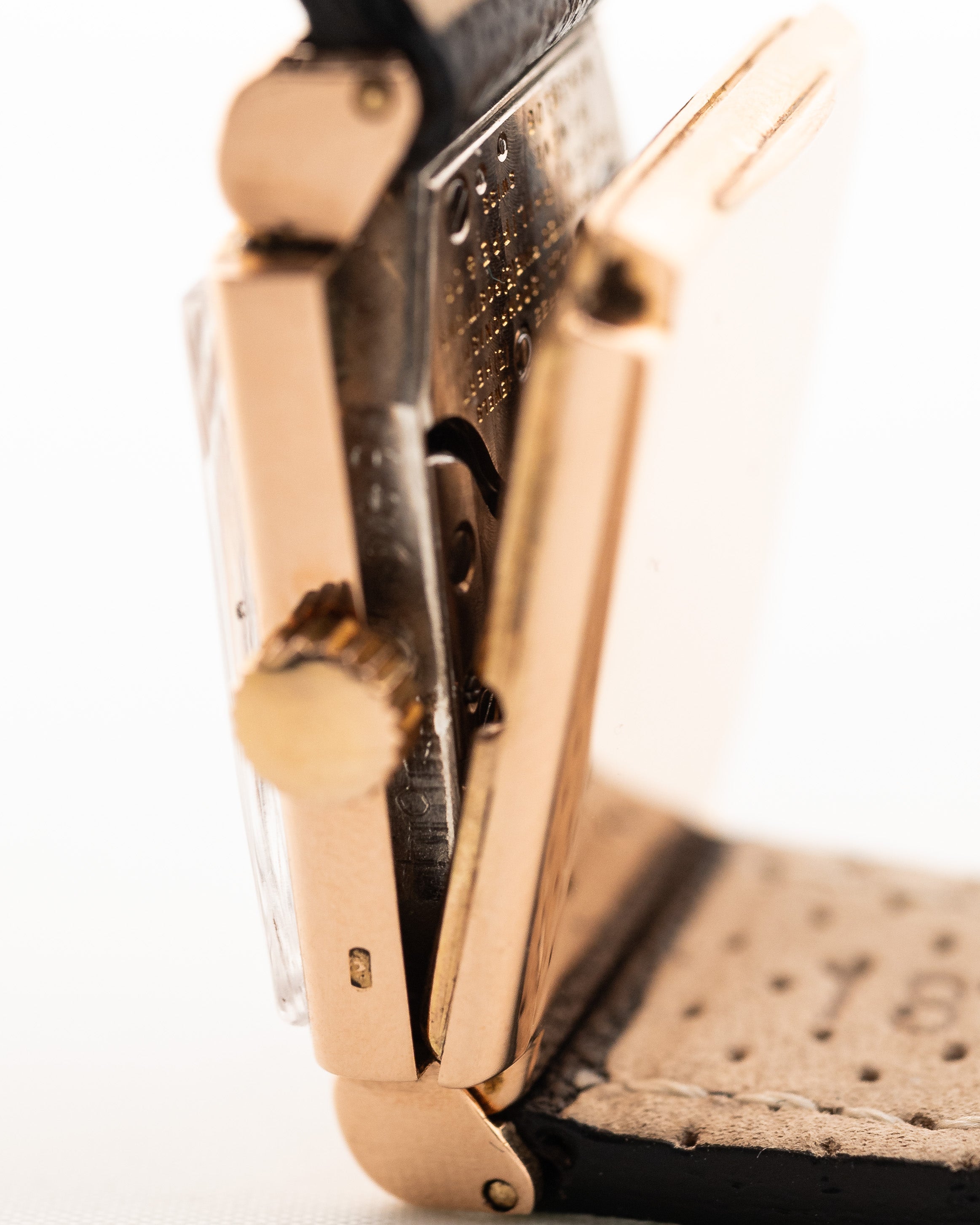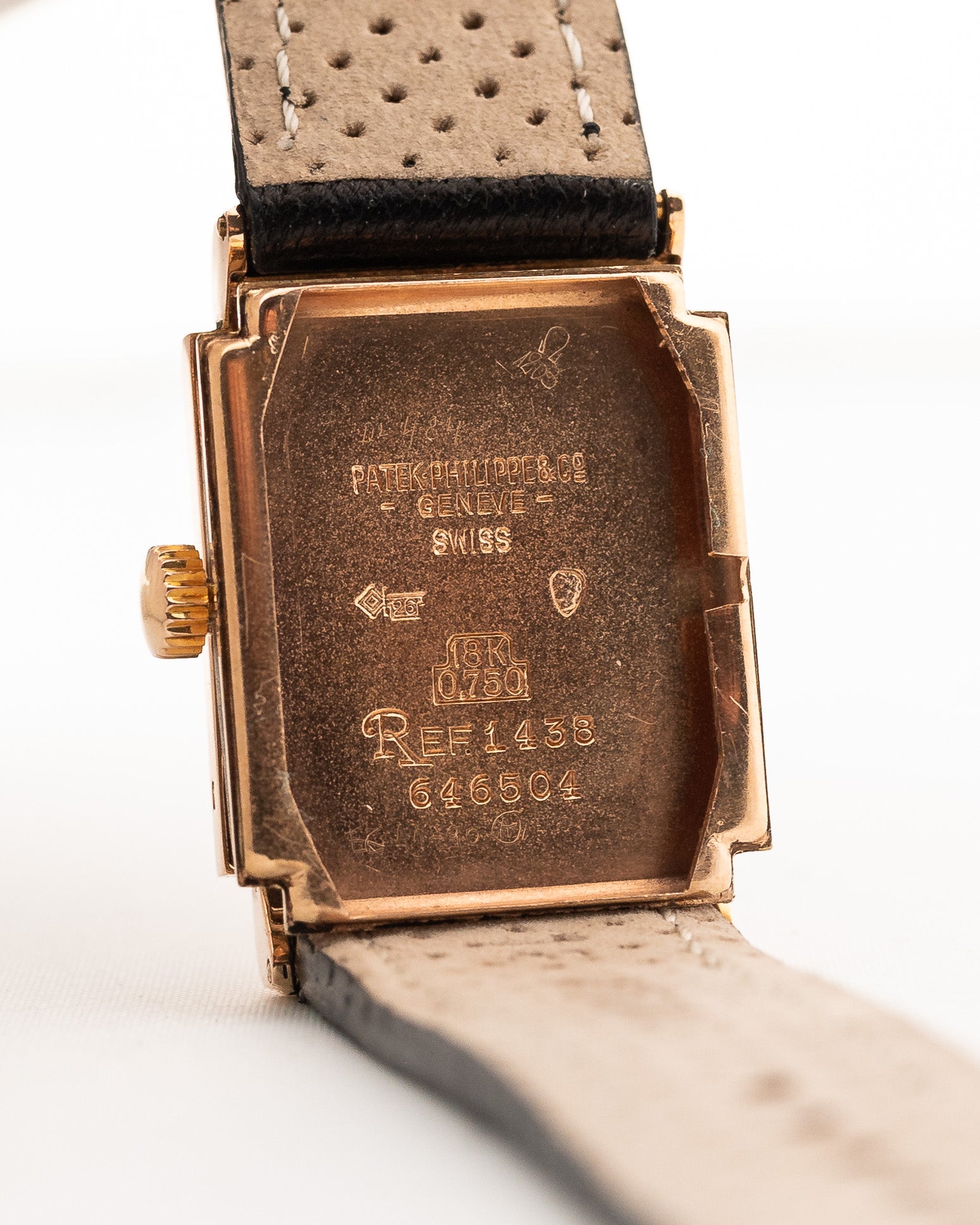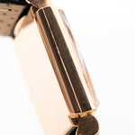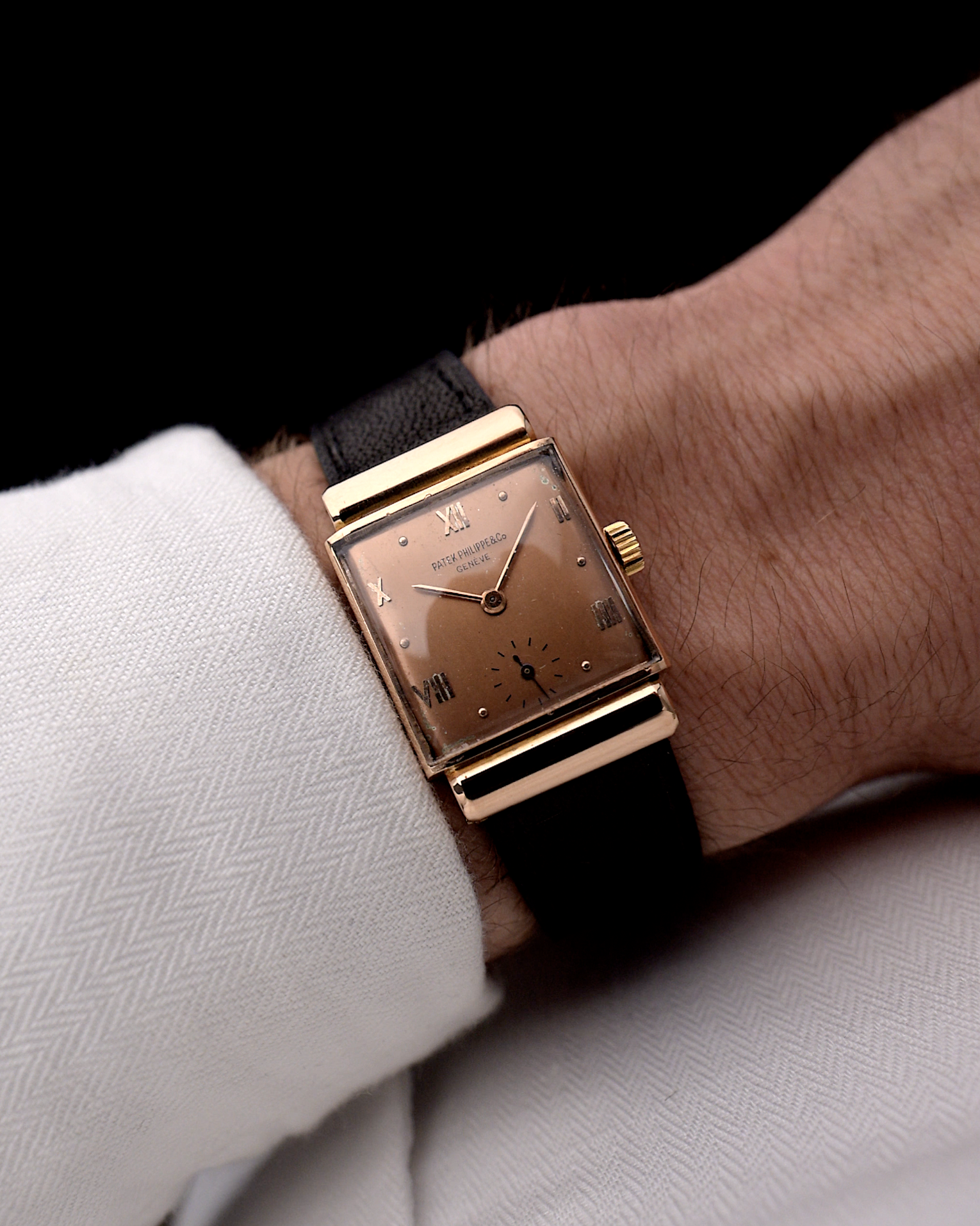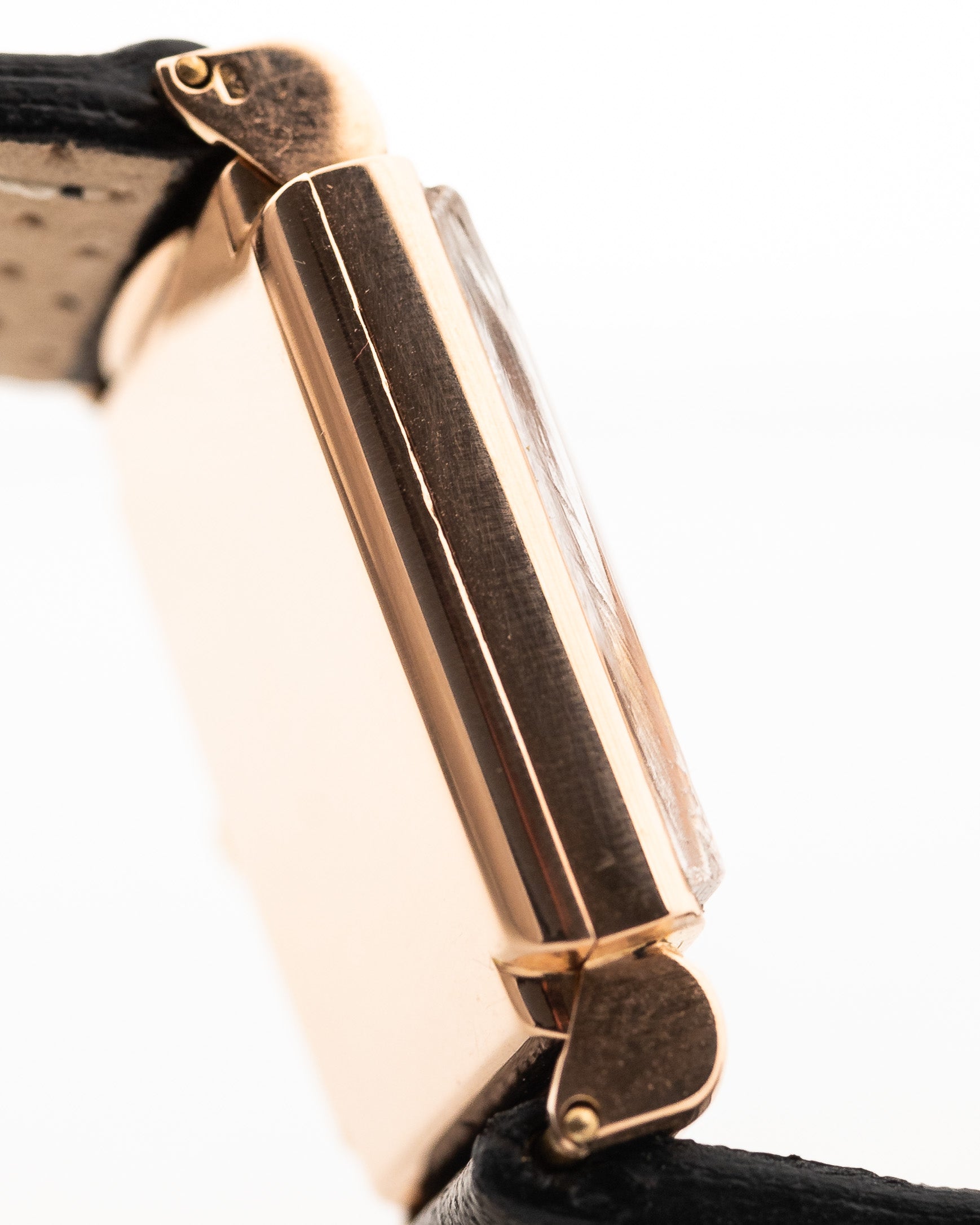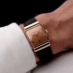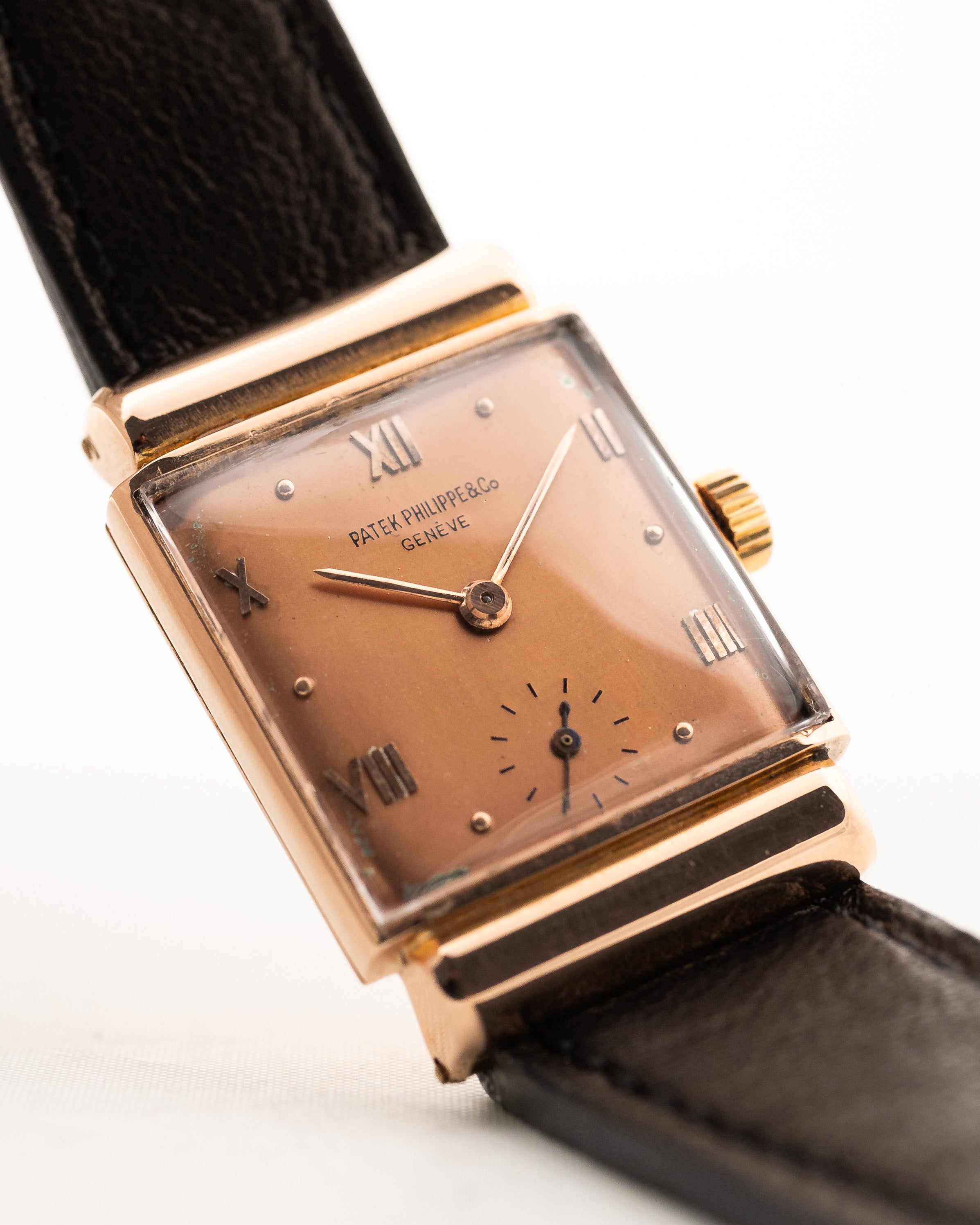 Relatively few square or rectangular shaped Patek Philippe watches have been produced, and therefore these case shapes are more exclusive especially in rose gold with this rare salmon dial color.