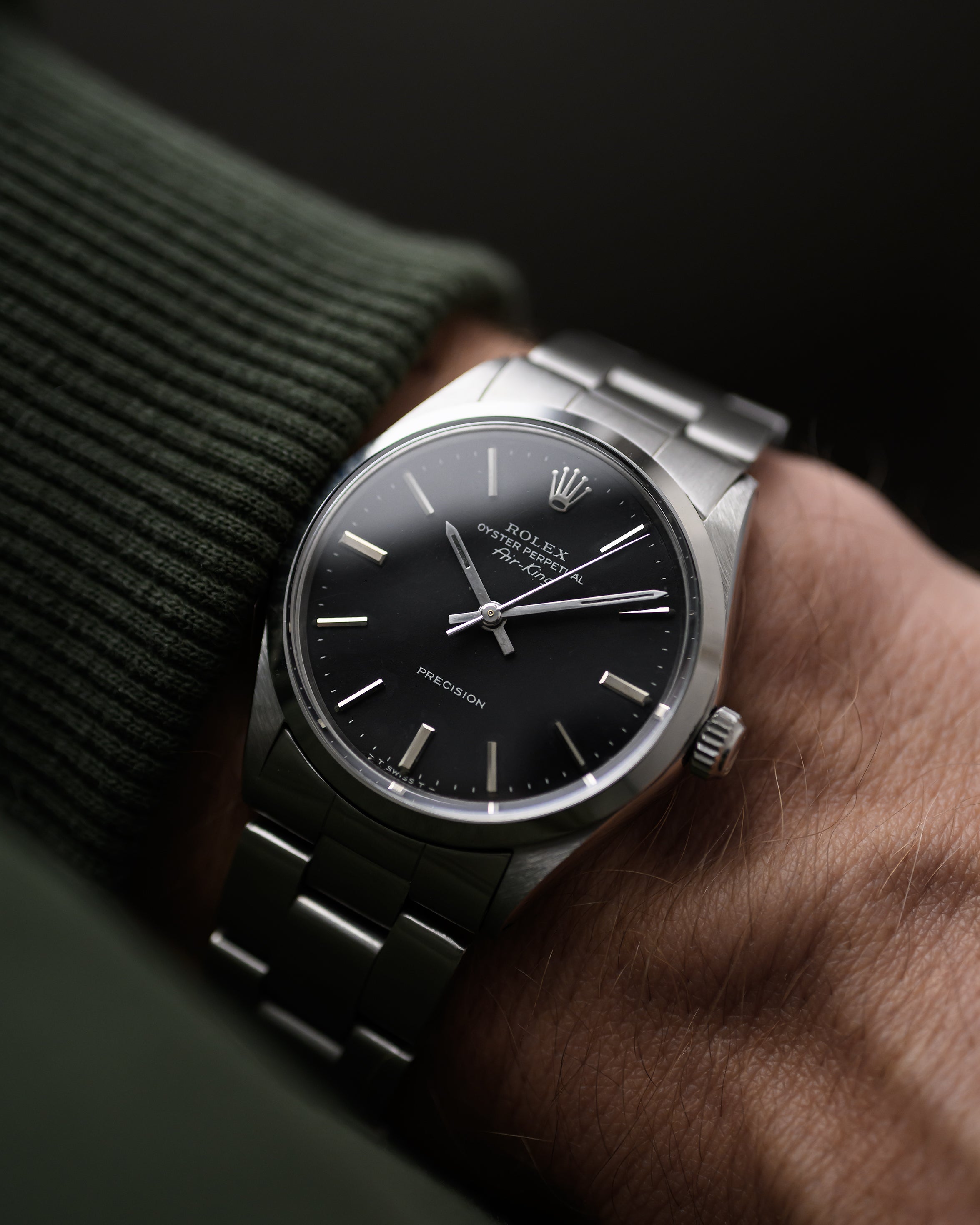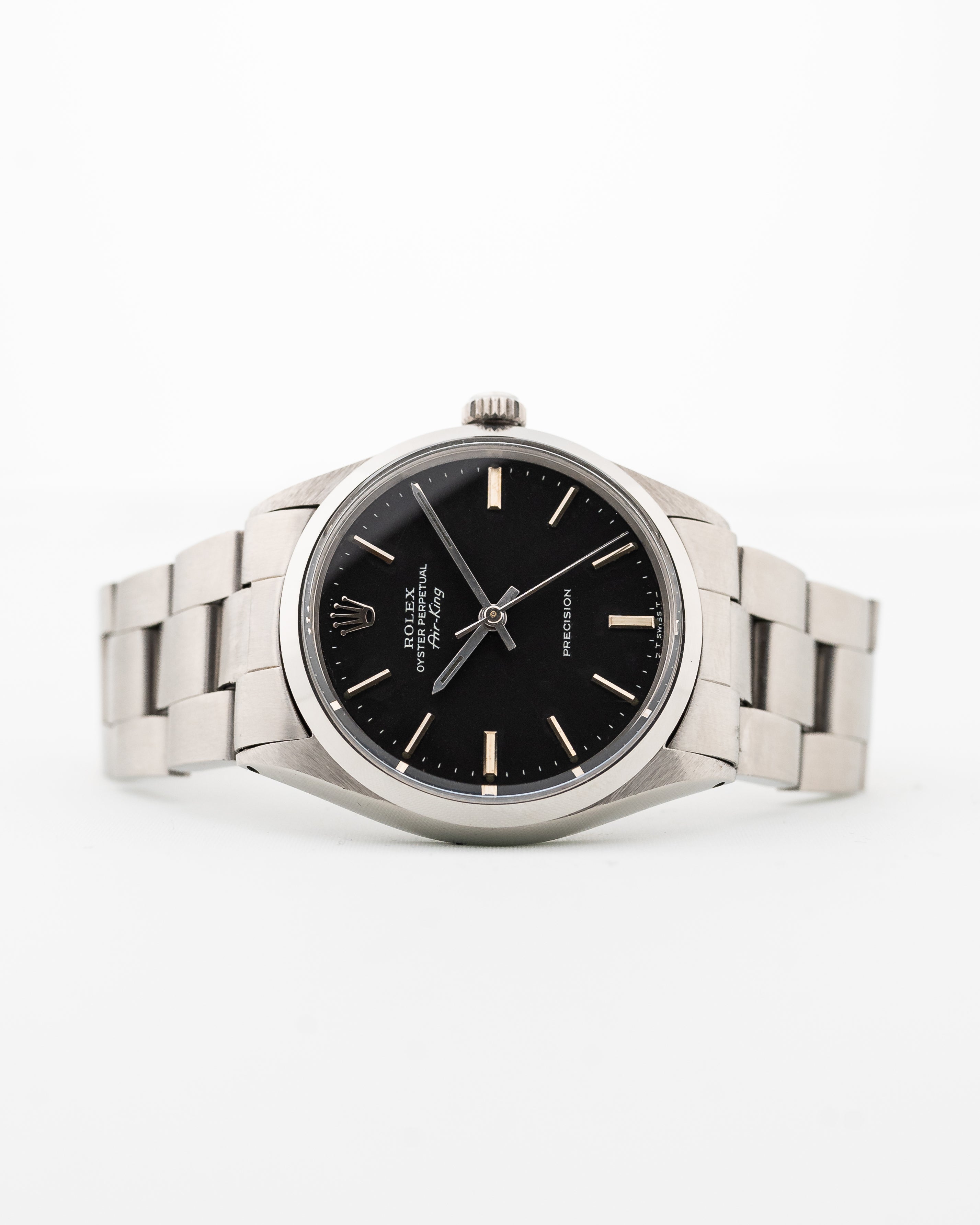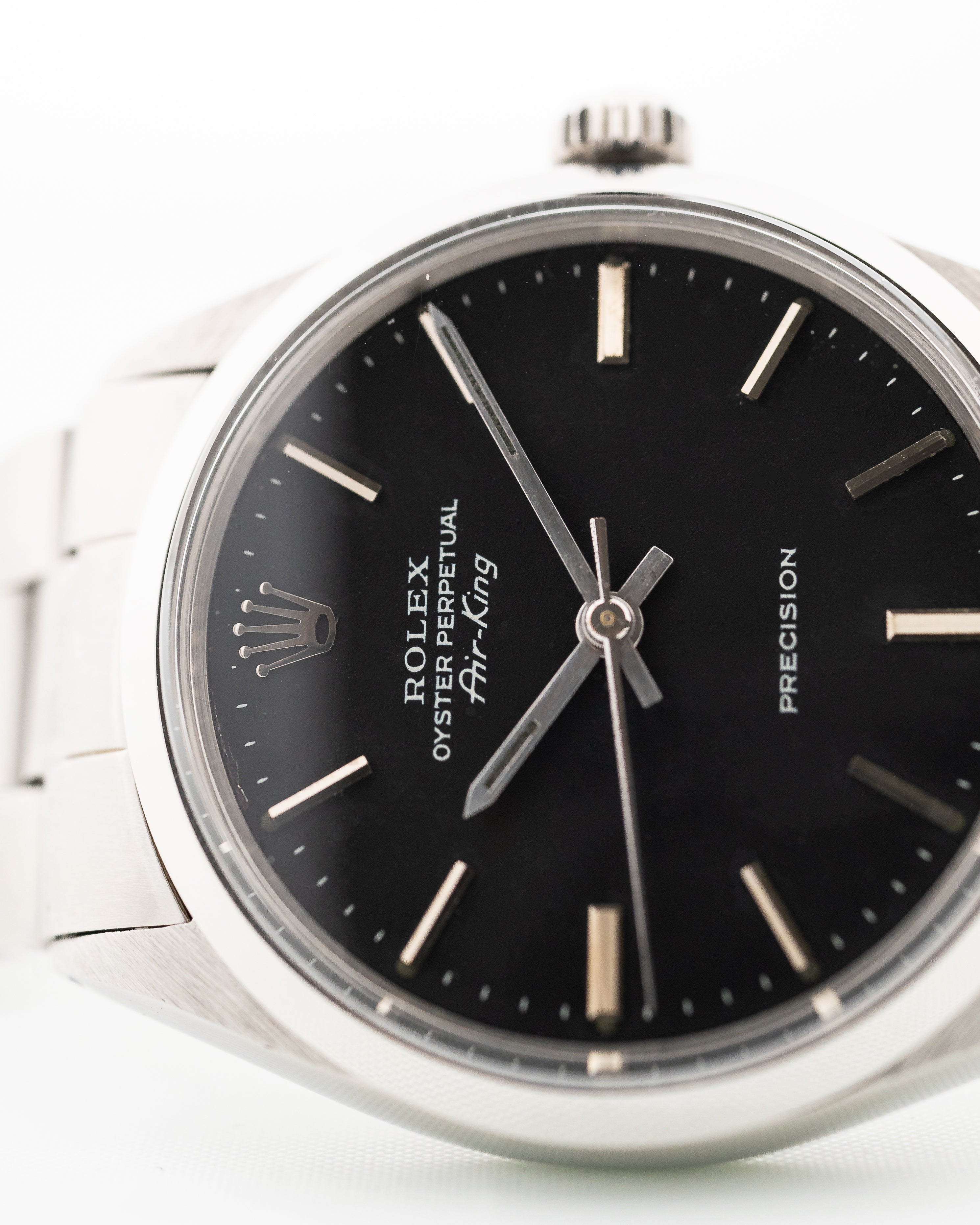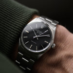 The Air-King is one of the last under-the-radar models by Rolex and has all the classic styling one could ask for from the Oyster Perpetual family. This reference made simplicity its asset - in this case, the clean matt black dial is accented with applied indexes for clear legibility and the broad batten handset adds an overall elegant look.
