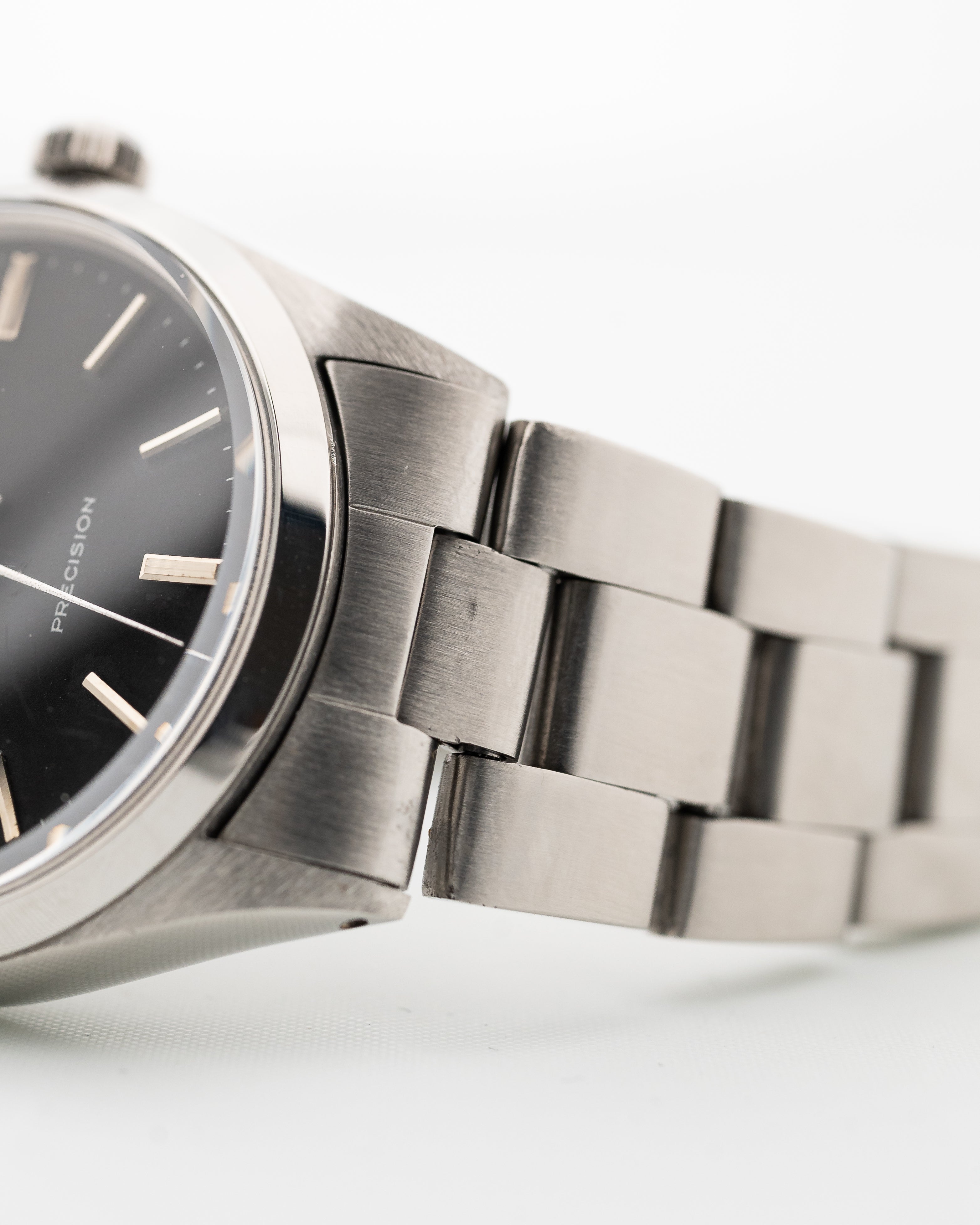 This particular piece from 1970 is notable for its impeccable condition and flawless matt black dial and a strong case with sharp edges in outstanding condition.