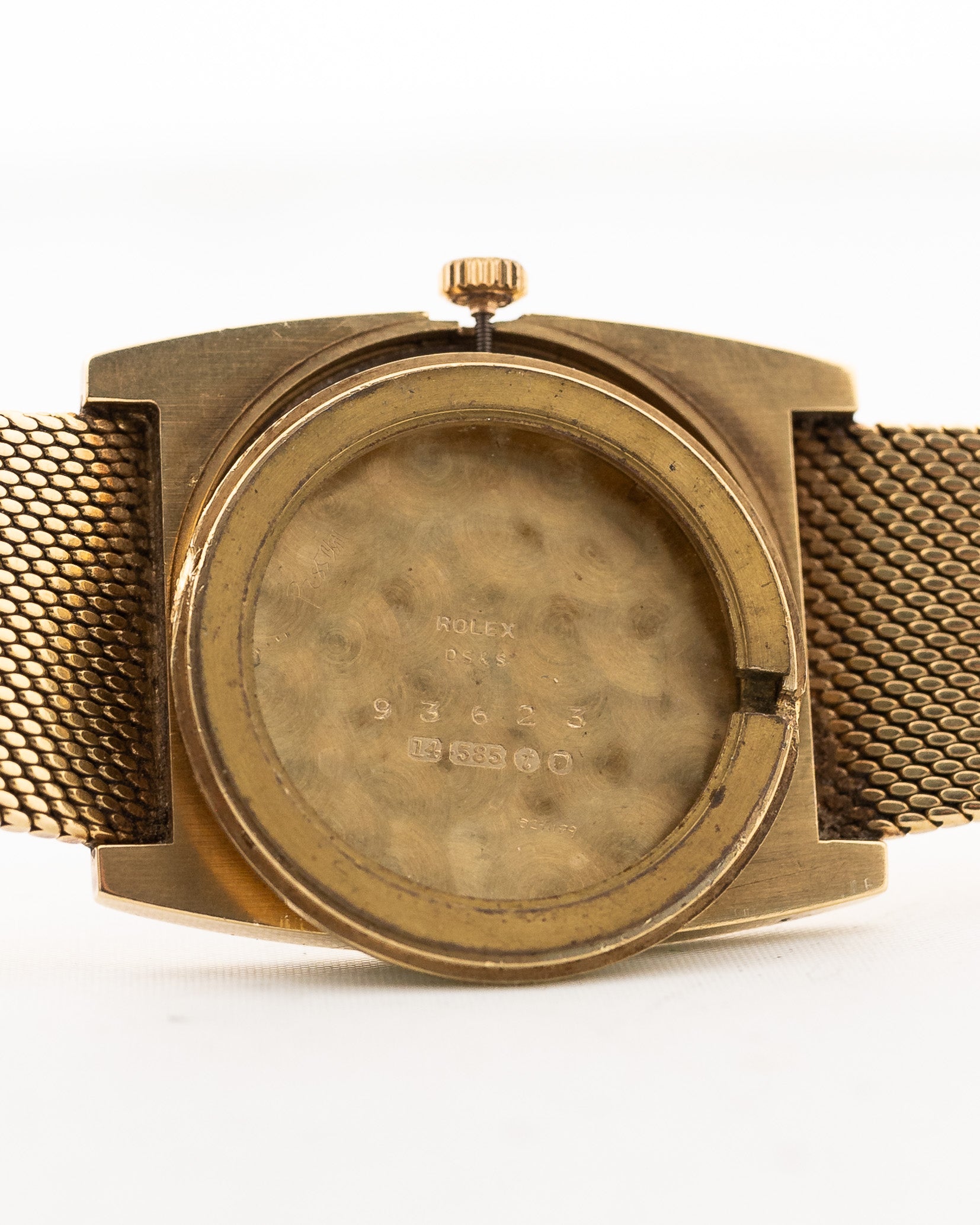 The use of 14k yellow gold suggests that this Rolex was produced for the US or GB market. This was common back in the days as there were fewer customs duties on 14k gold.