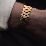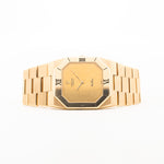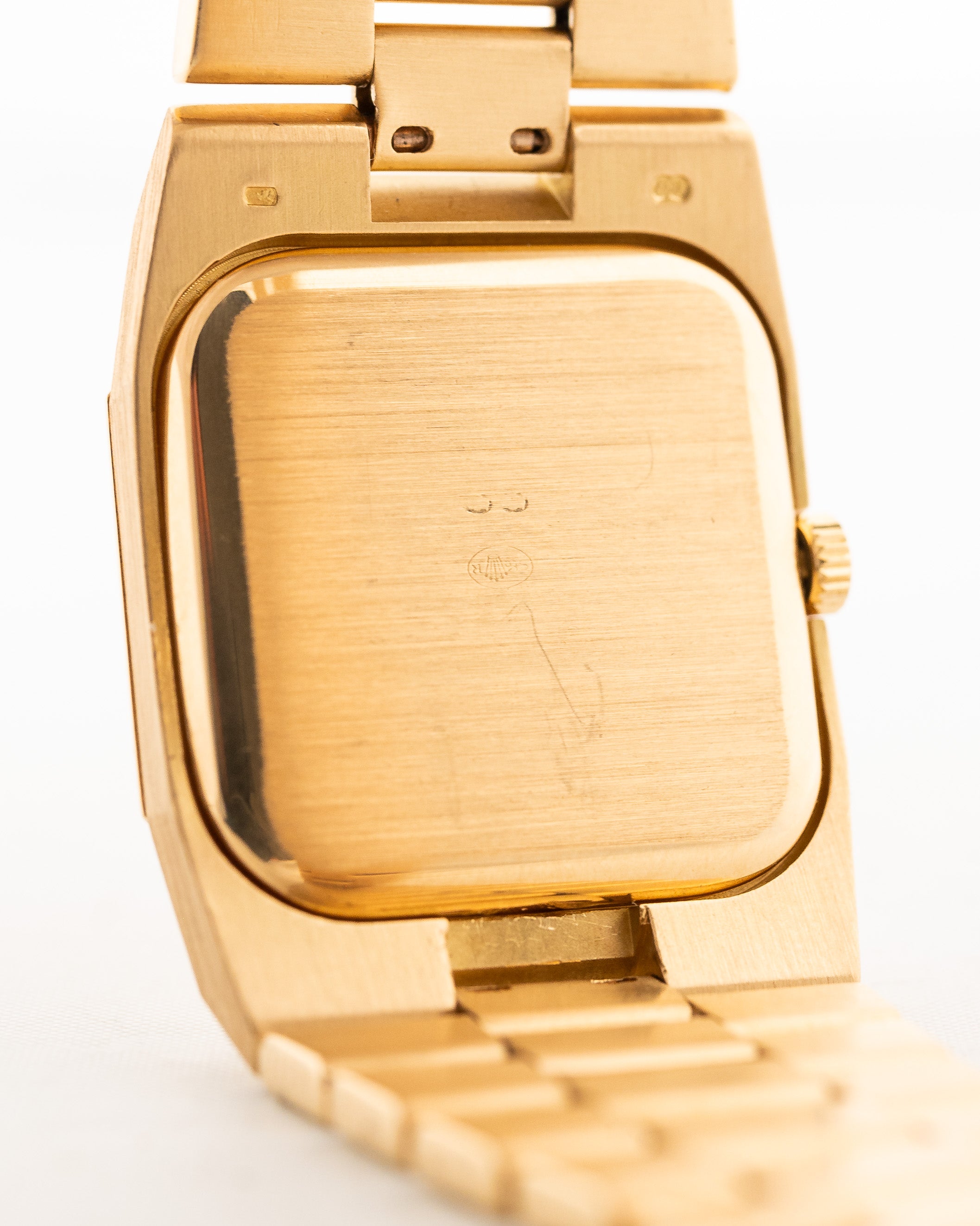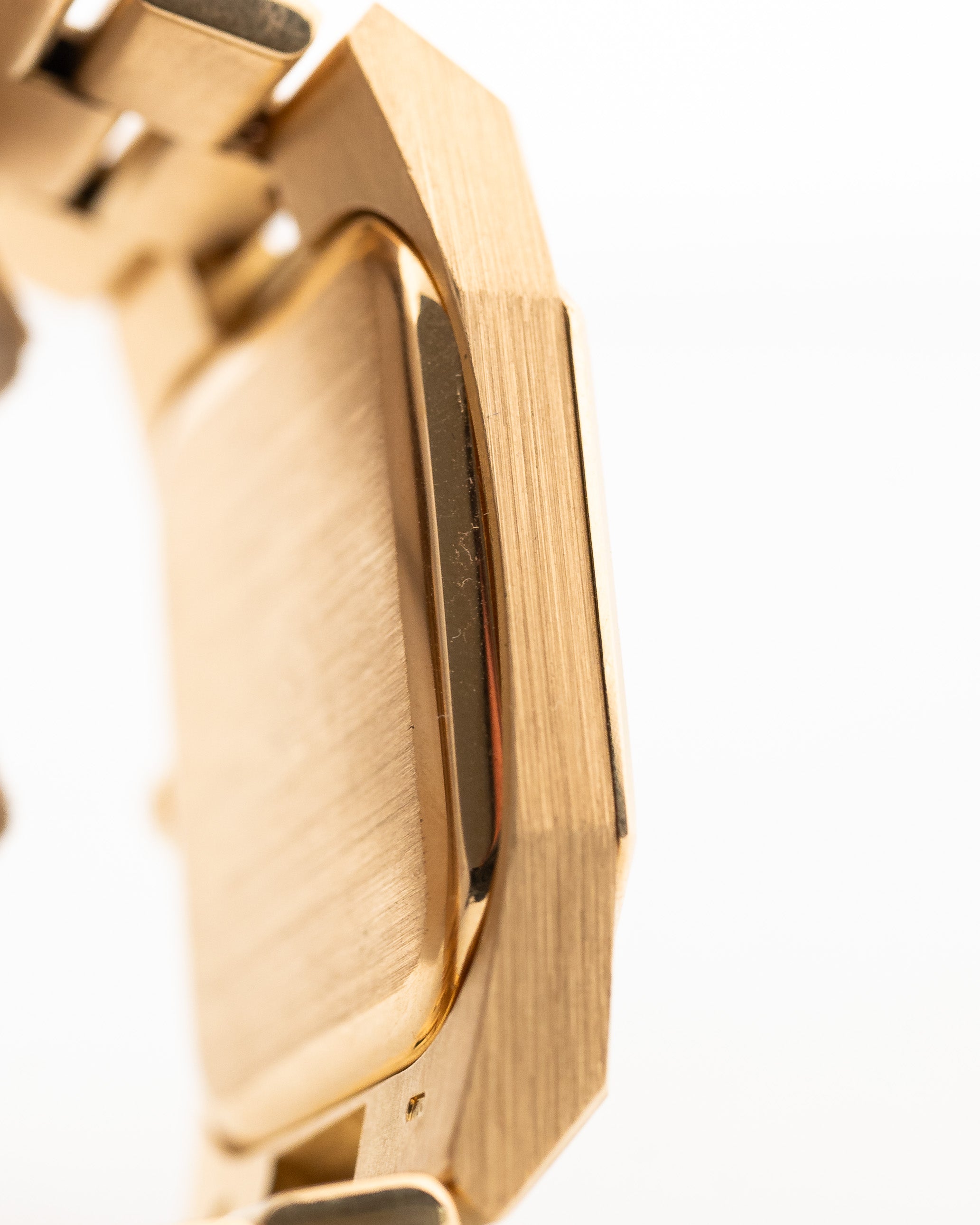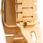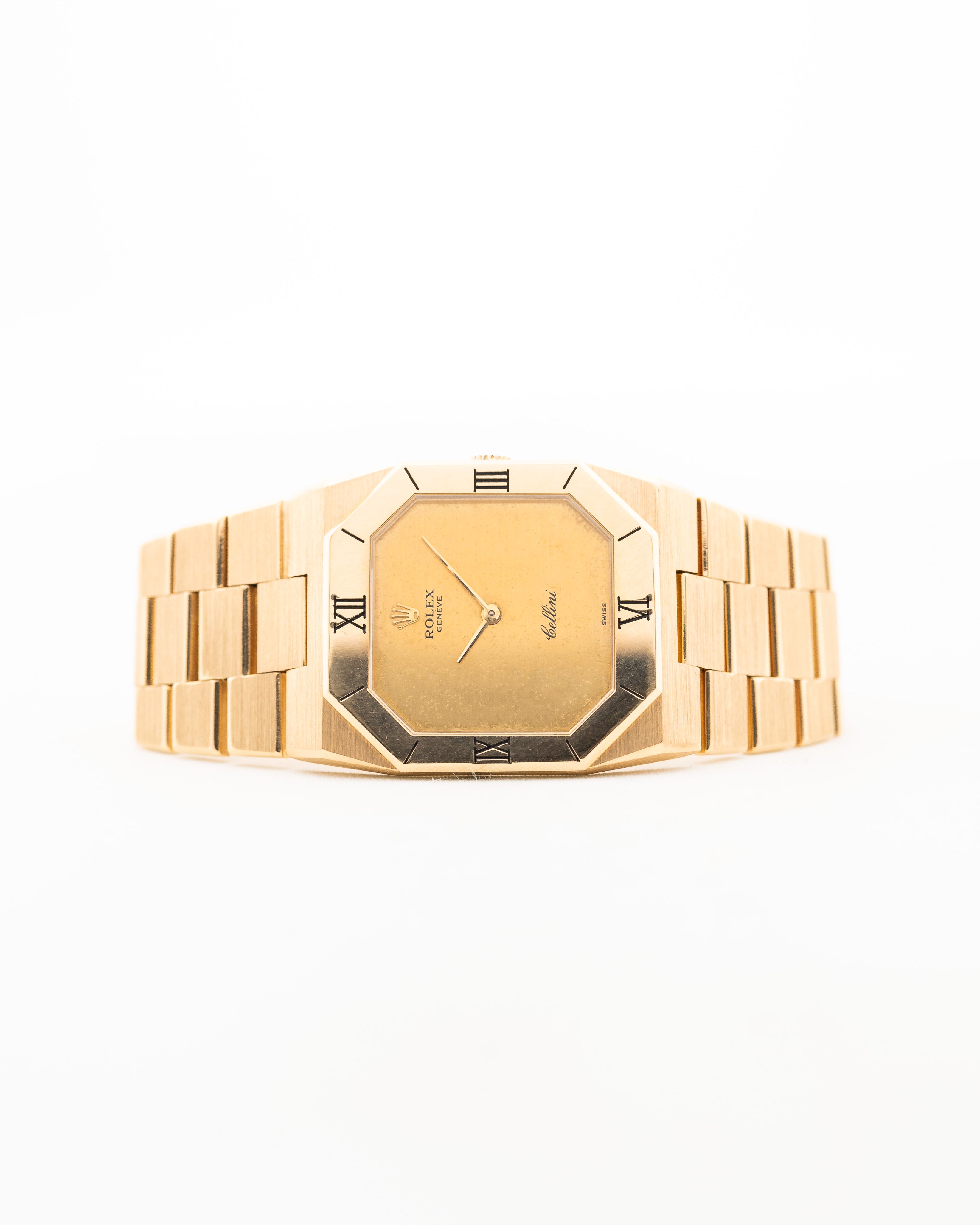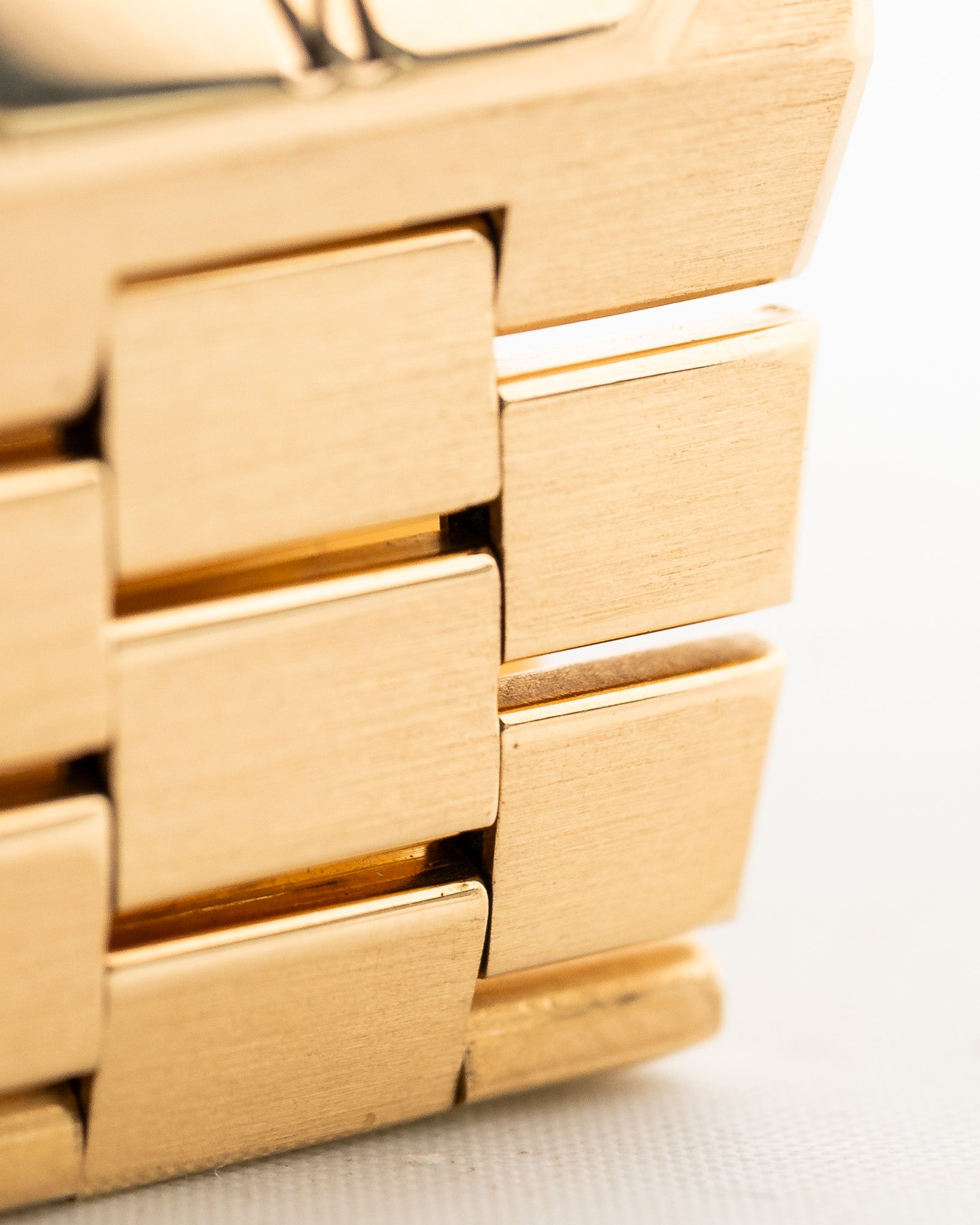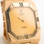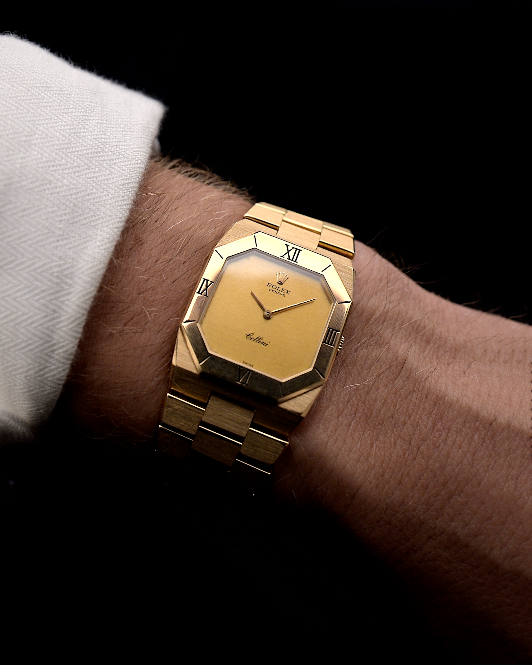 The Rolex Cellini line showcases the dressier side of Rolex compared to its more well-known sport models. Our Ref. 4350 is fitted in a 18k-yellow-gold square-shaped case, which is an unusual case shape for Rolex and a perfectly fitting 18k President bracelet with 18k folding clasp without any stretch and in fabulous condition.