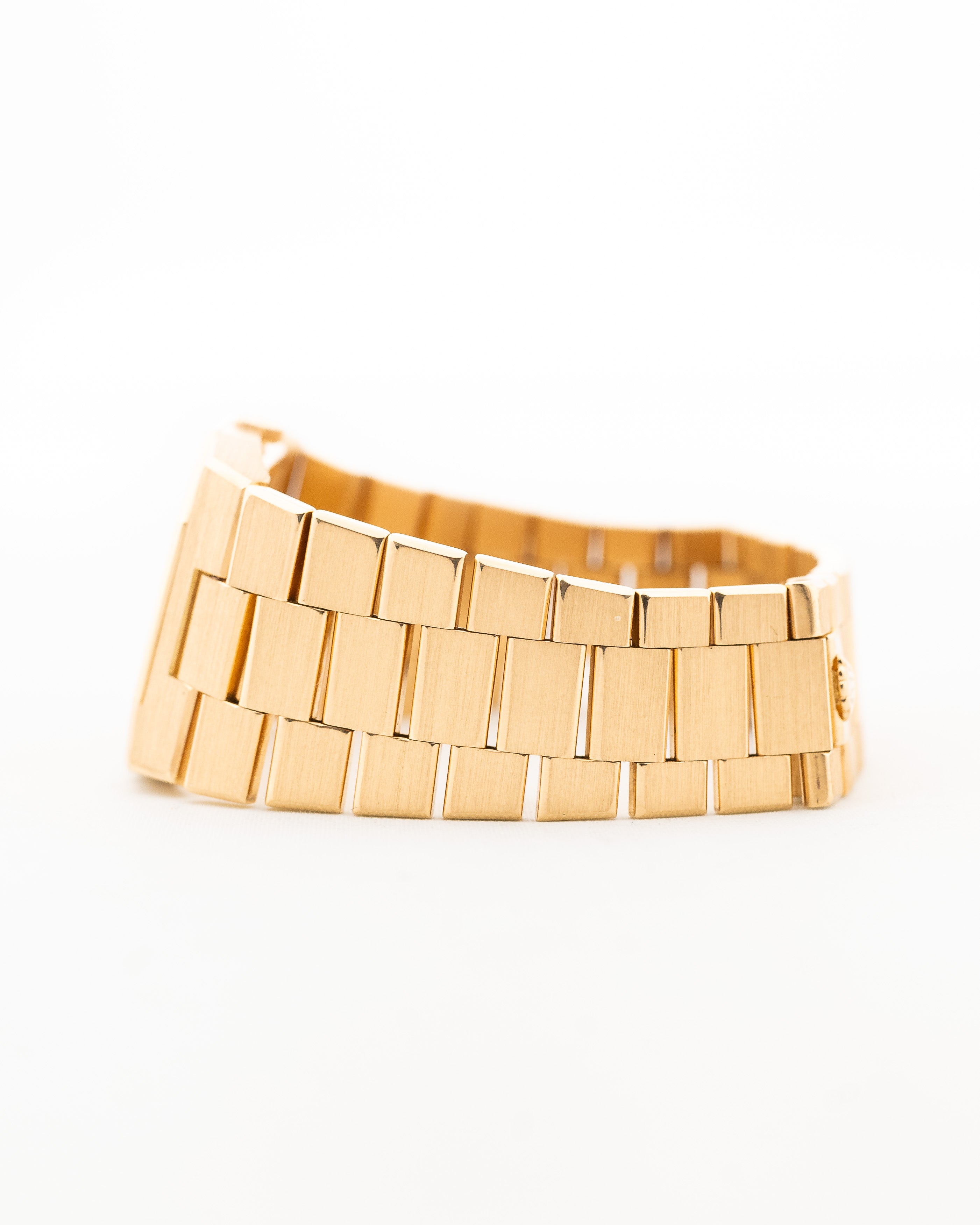• original 18k Rolex President Bracelet with minor stretch fitting up to a 17 cm wrist (two links are still removable) / 2.3 mm thick