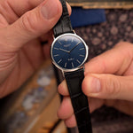 The untouched blue sunburst dial is flawless — richly vibrant in direct light and perfectly clean — making this piece not only rare, but incredibly well-preserved. Housed in a crisp 32mm white gold case by Guillod Gunther SA, it offers quiet confidence with enduring sophistication.