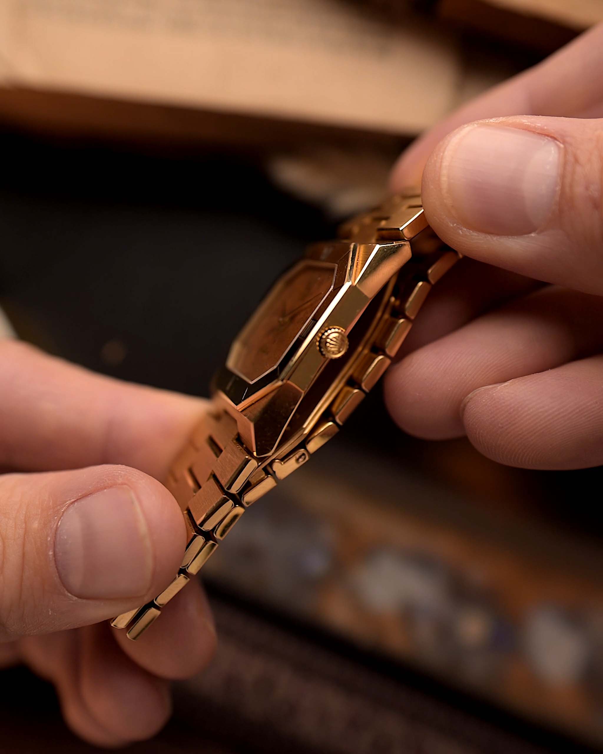 The Rolex Cellini Ref. 4350 showcases the refined and unconventional side of Rolex. Housed in an 18k yellow gold octagonal case, this rare model departs from the brand’s sporty DNA and enters the realm of pure vintage sophistication.