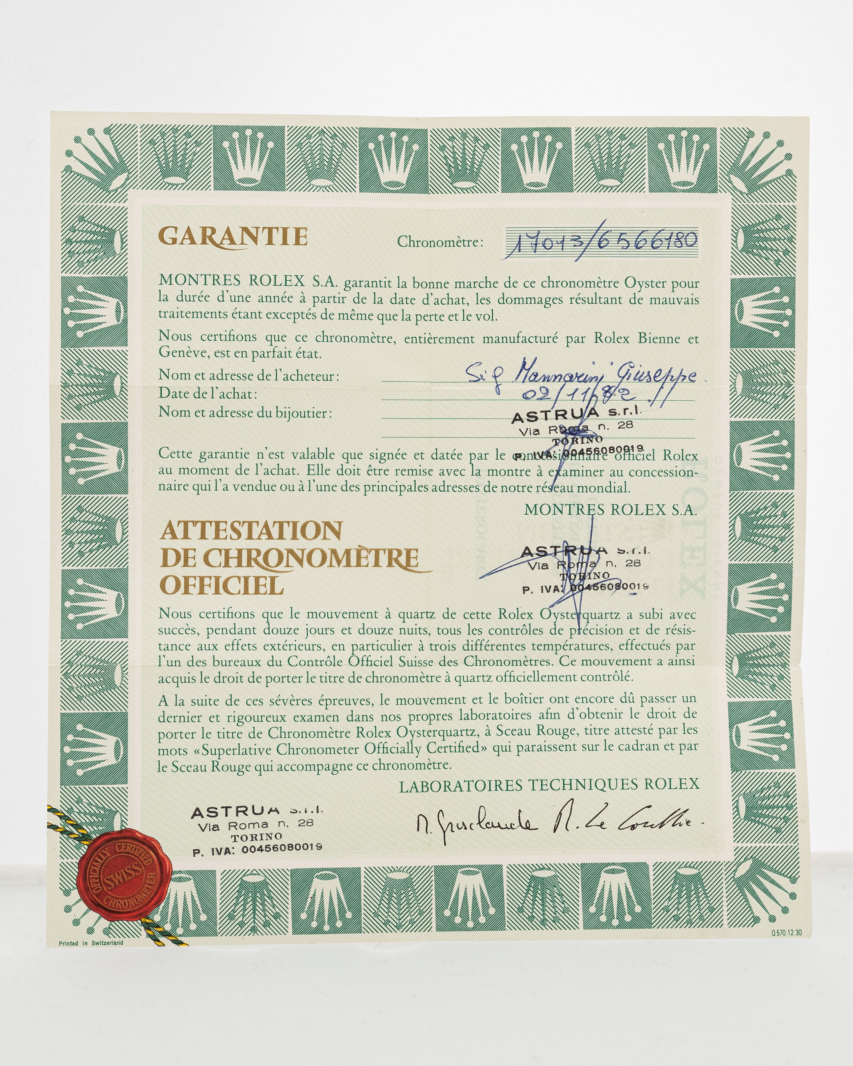 • including the original papers and Rolex Certificate