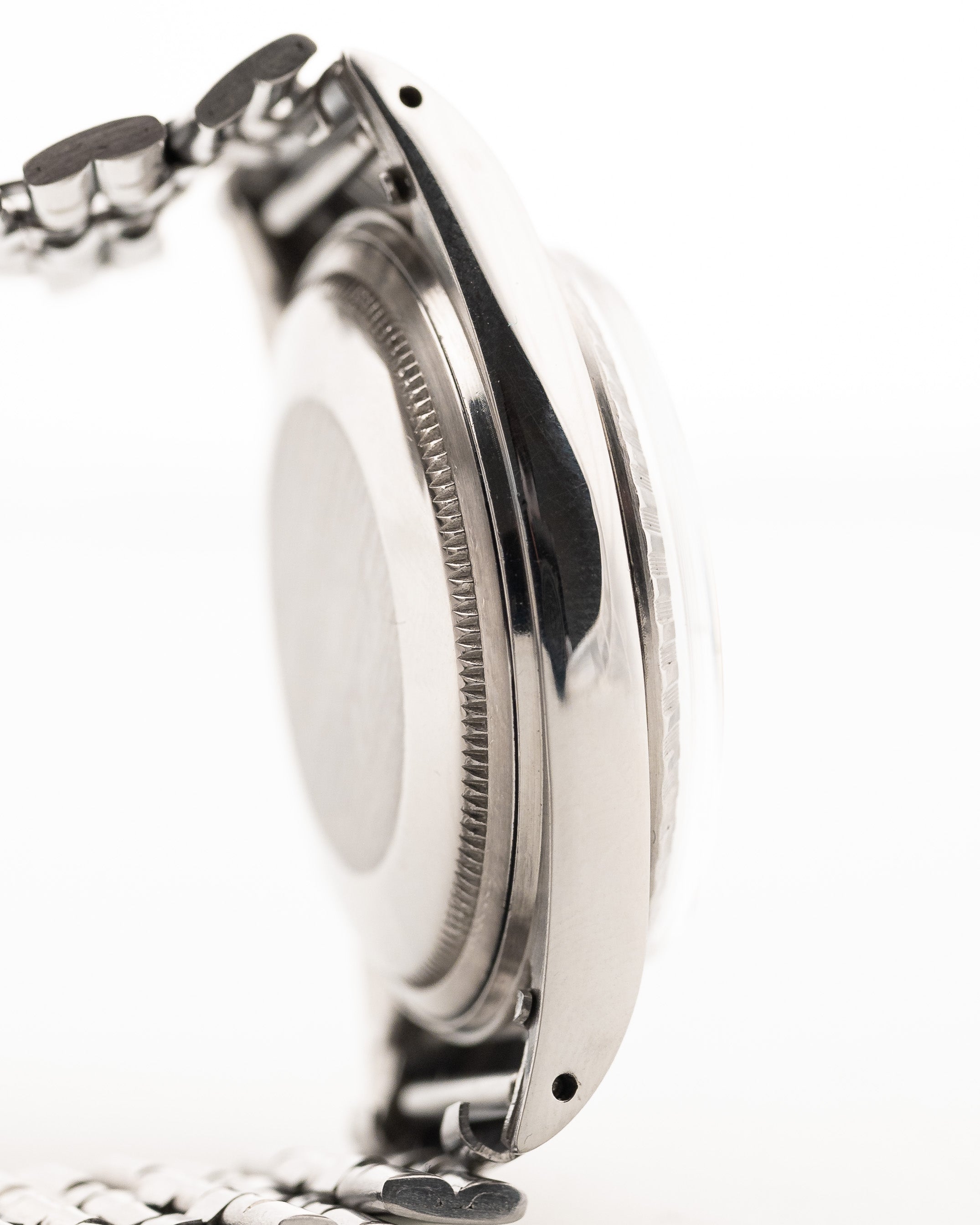 This particular piece from 1968 is notable for its beautiful aged grey pie pan dial. It comes as a full set with box and papers.