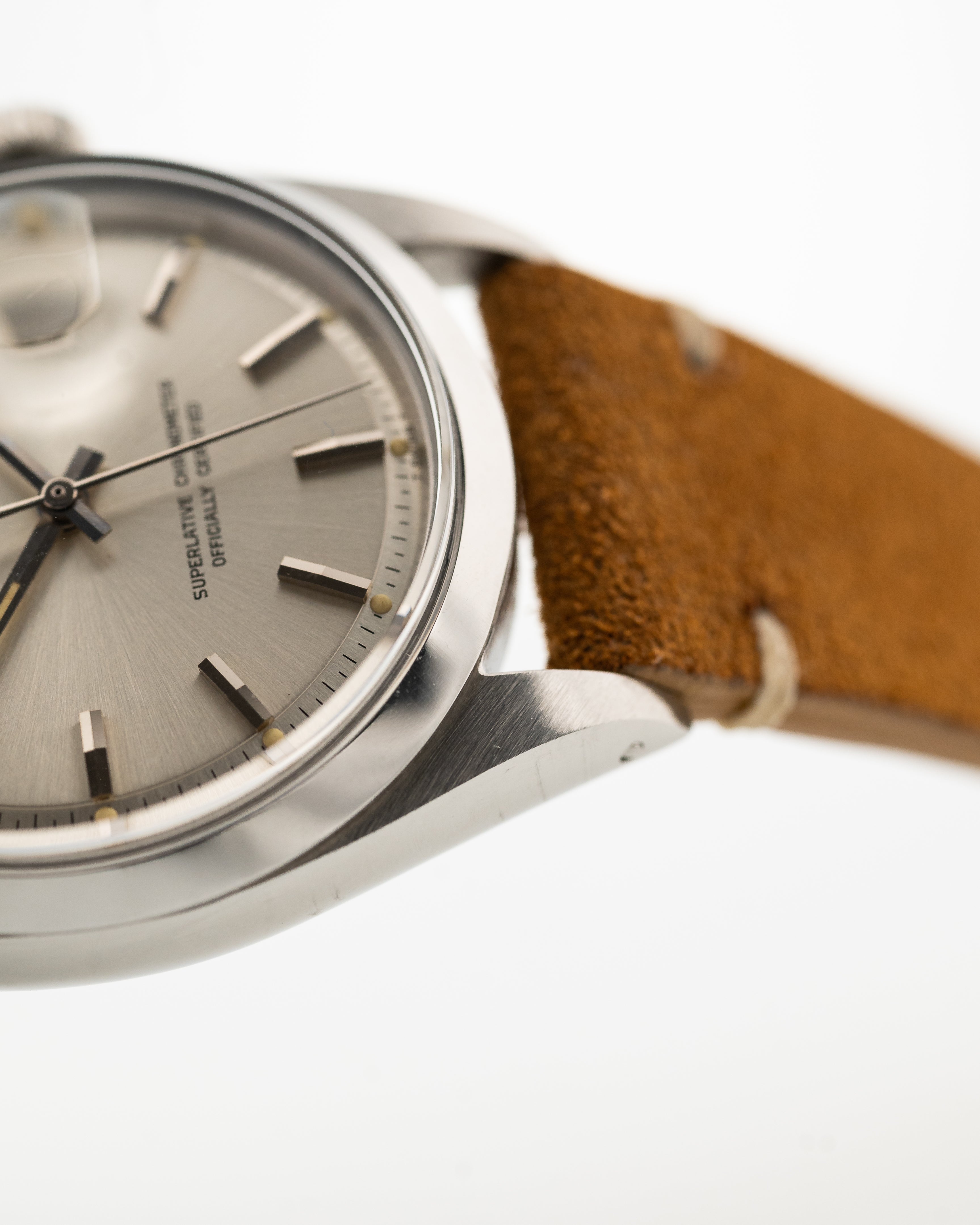 This particular piece from 1969 is notable for its clean bezel, a flawless silver sunburst pie pan dial and a very strong case with sharp edges in outstanding condition.