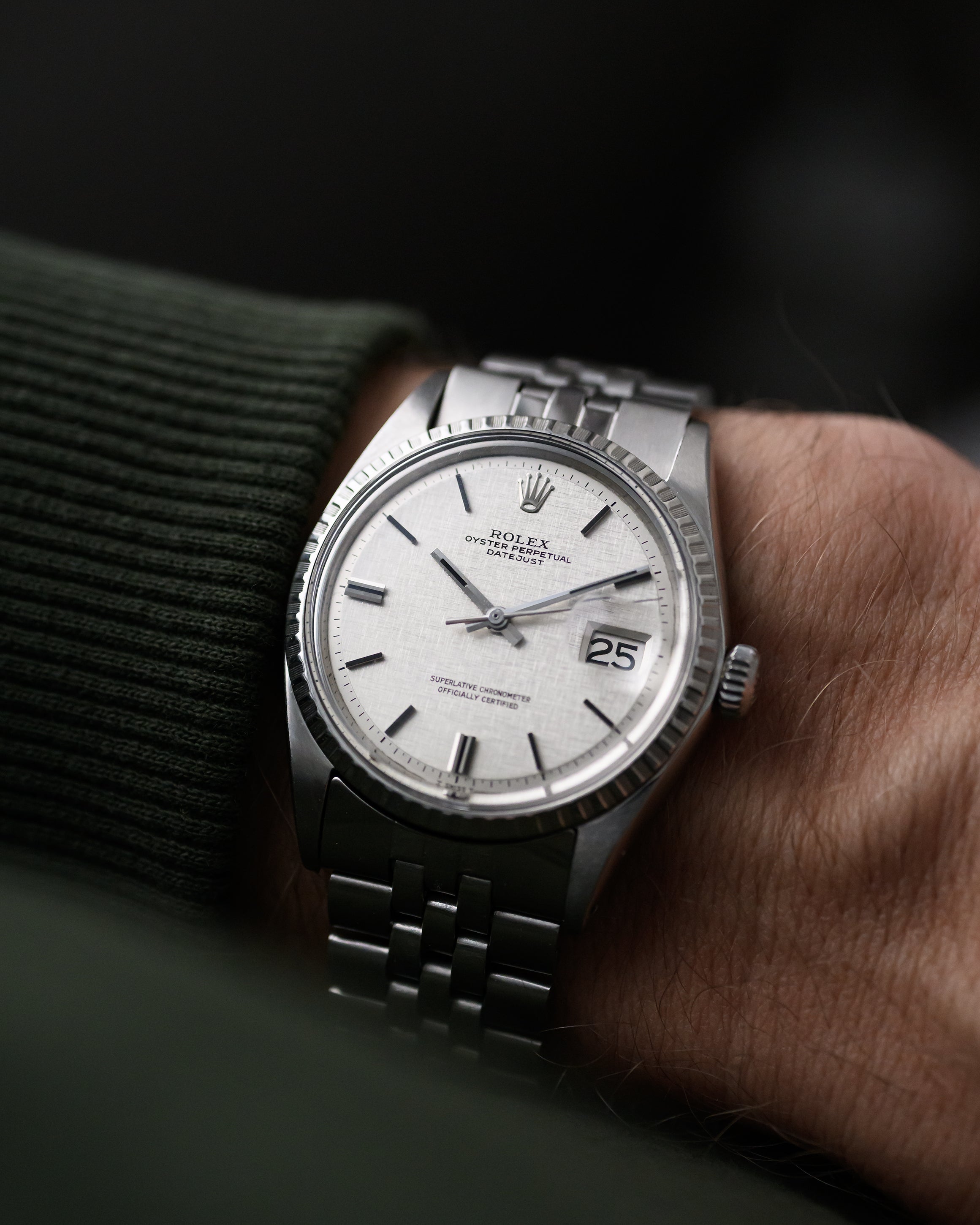 If you're looking for a vintage watch for daily use, the Rolex Datejust is apparently the first to consider! It combines basically everything you may need on daily basis: outstanding timeless design matching literally any outfit, perfectly balanced 36 mm size, waterproof capabilities of the famous oyster family and of course legendary precision and durability of Rolex automatic chronometer movements.