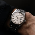 If you're looking for a vintage watch for daily use, the Rolex Datejust is apparently the first to consider! It combines basically everything you may need on daily basis: outstanding timeless design matching literally any outfit, perfectly balanced 36 mm size, waterproof capabilities of the famous oyster family and of course legendary precision and durability of Rolex automatic chronometer movements.
