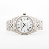 This particular piece from 1984 is notable for its white gold fluted bezel, a very rare and flawless white Buckley dial and a very strong case with sharp edges in outstanding condition.