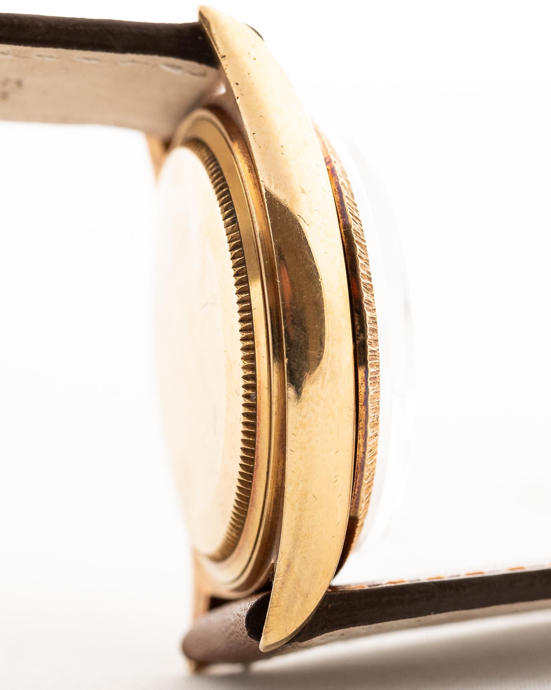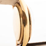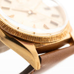 An iconic timepiece that exudes elegance, precision, and the luxurious craftsmanship Rolex is known for. Crafted in solid 18k yellow gold, this vintage model showcases a rare and eye-catching bark-finished bezel, giving it a distinct texture and sophisticated look especially with the pie pan dial.