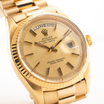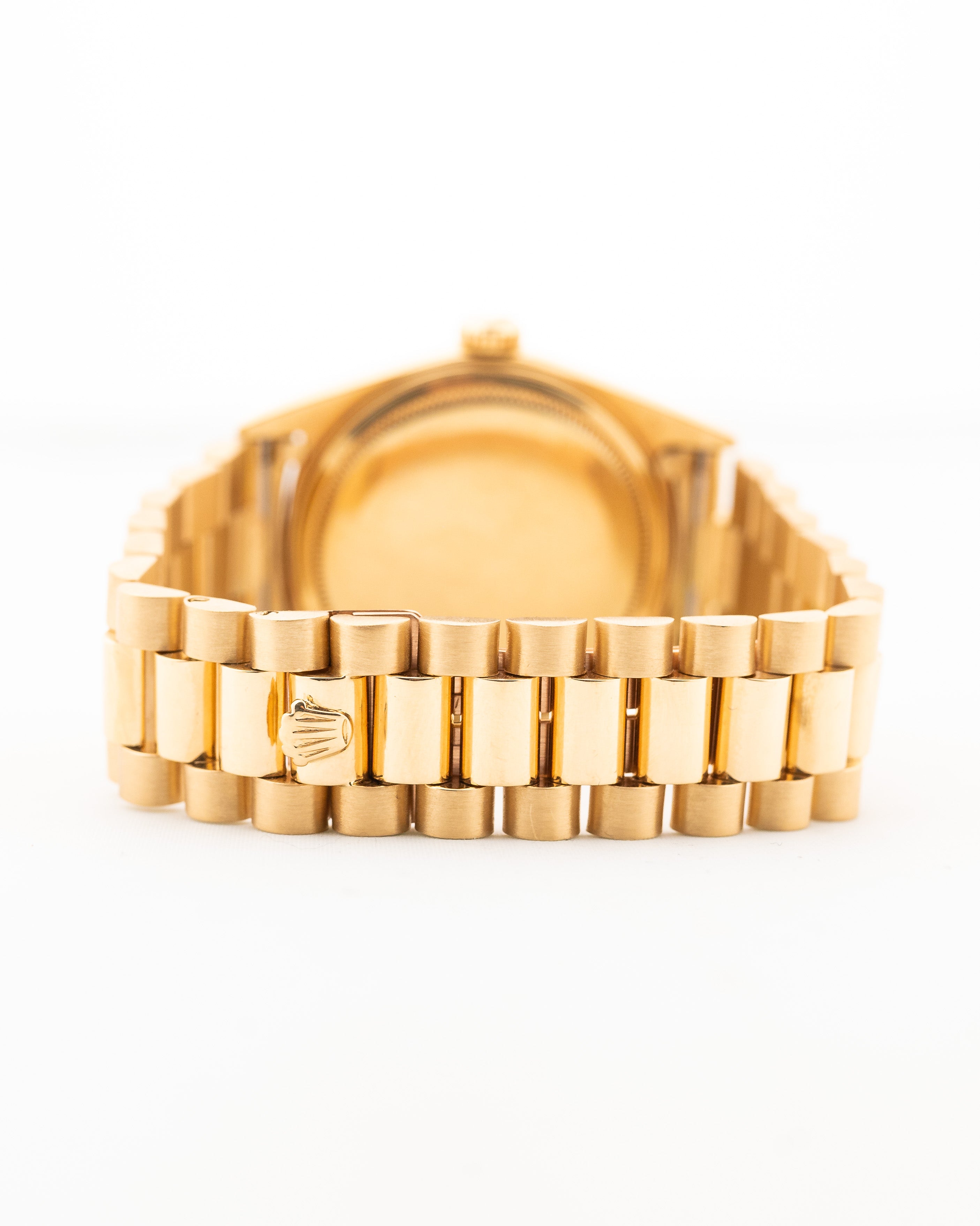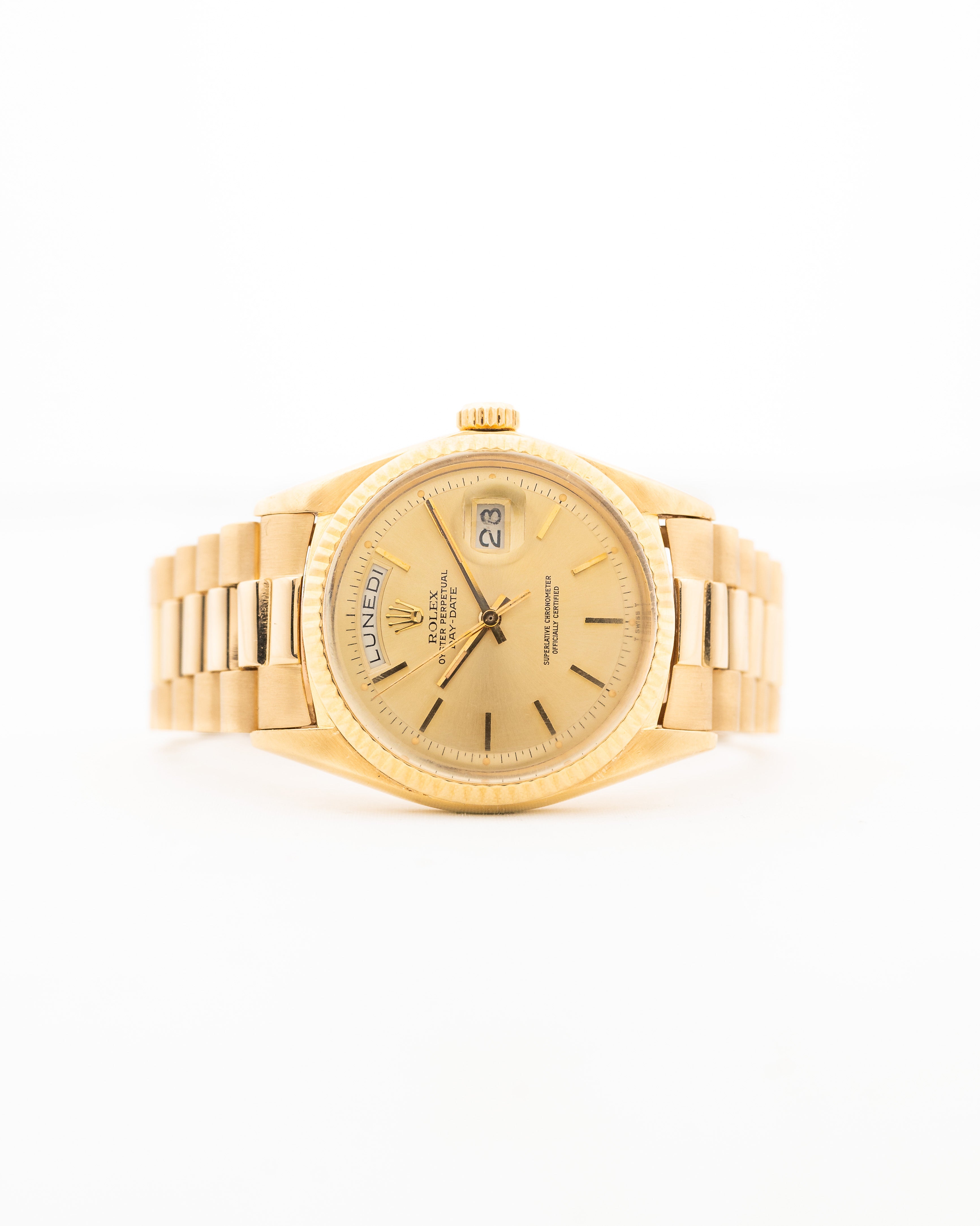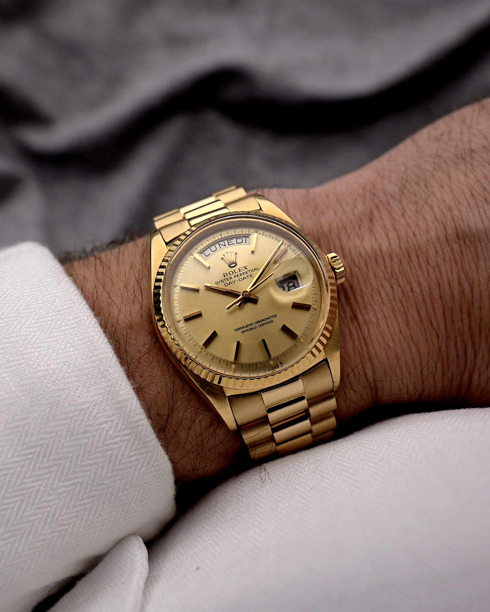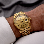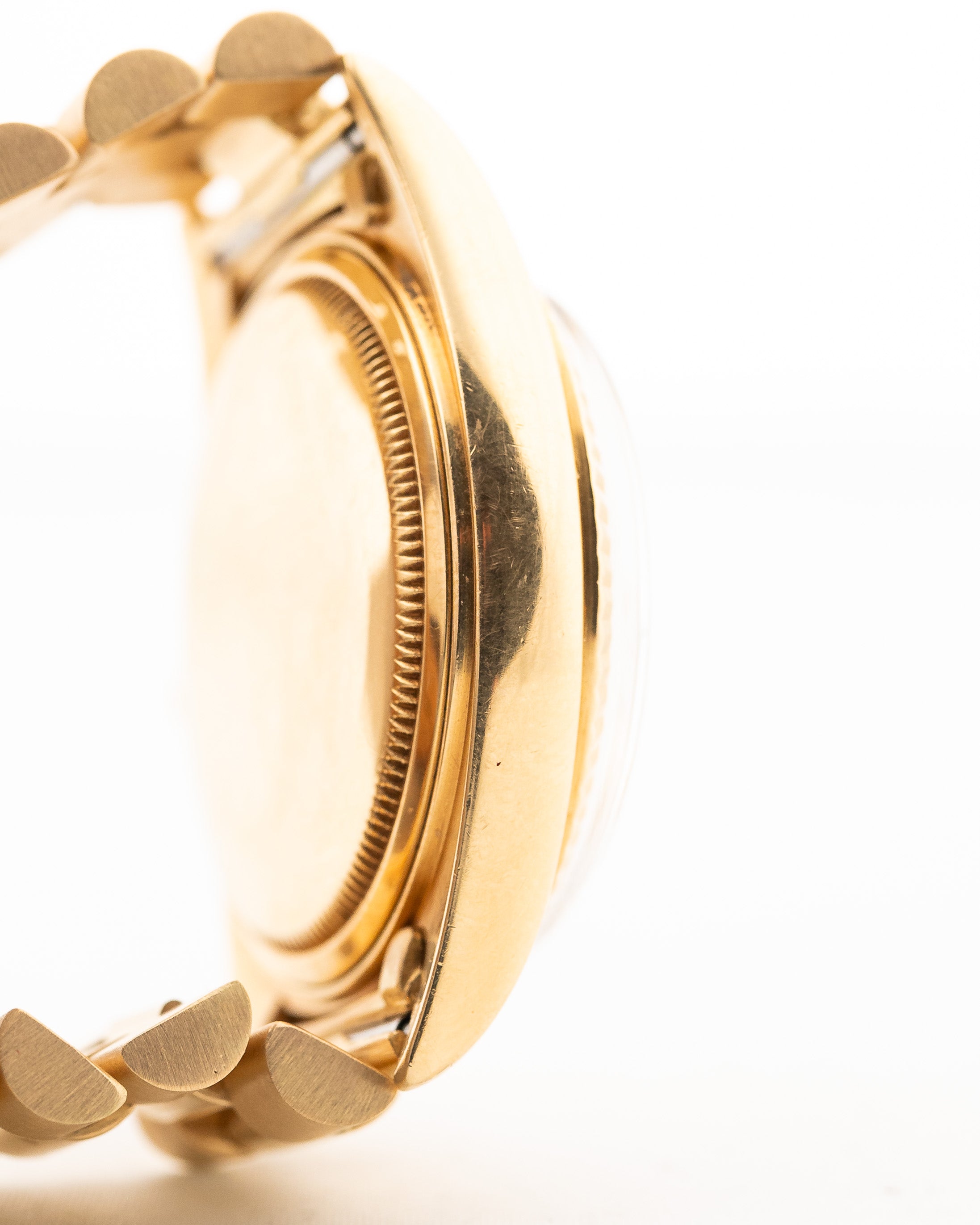At its core, the ref. 1803 is the quintessential Day-Date, complete with its classic namesake dial configuration, solid gold 36mm case and fluted bezel. Our model is in fantastic condition including a President bracelet without any stretch.