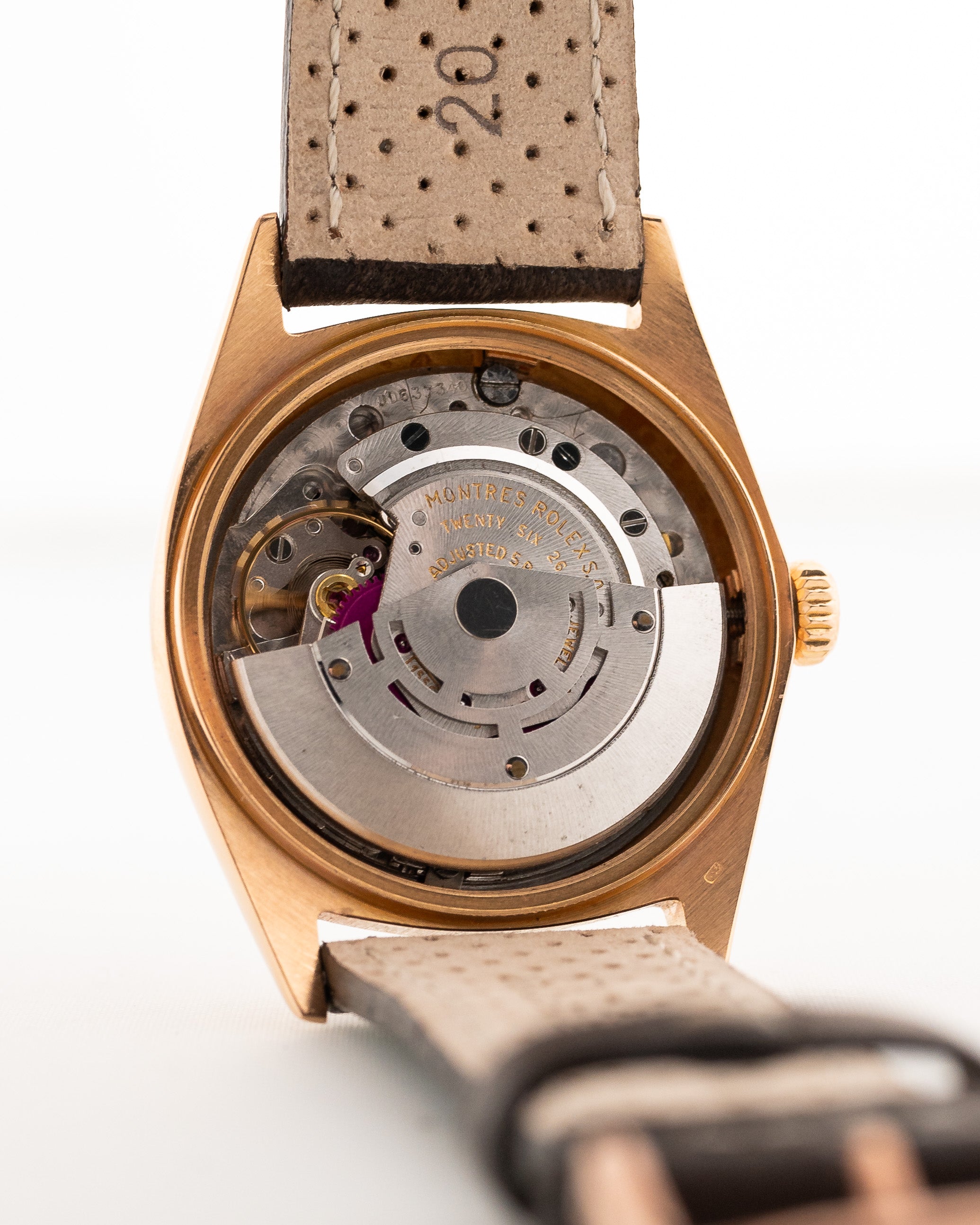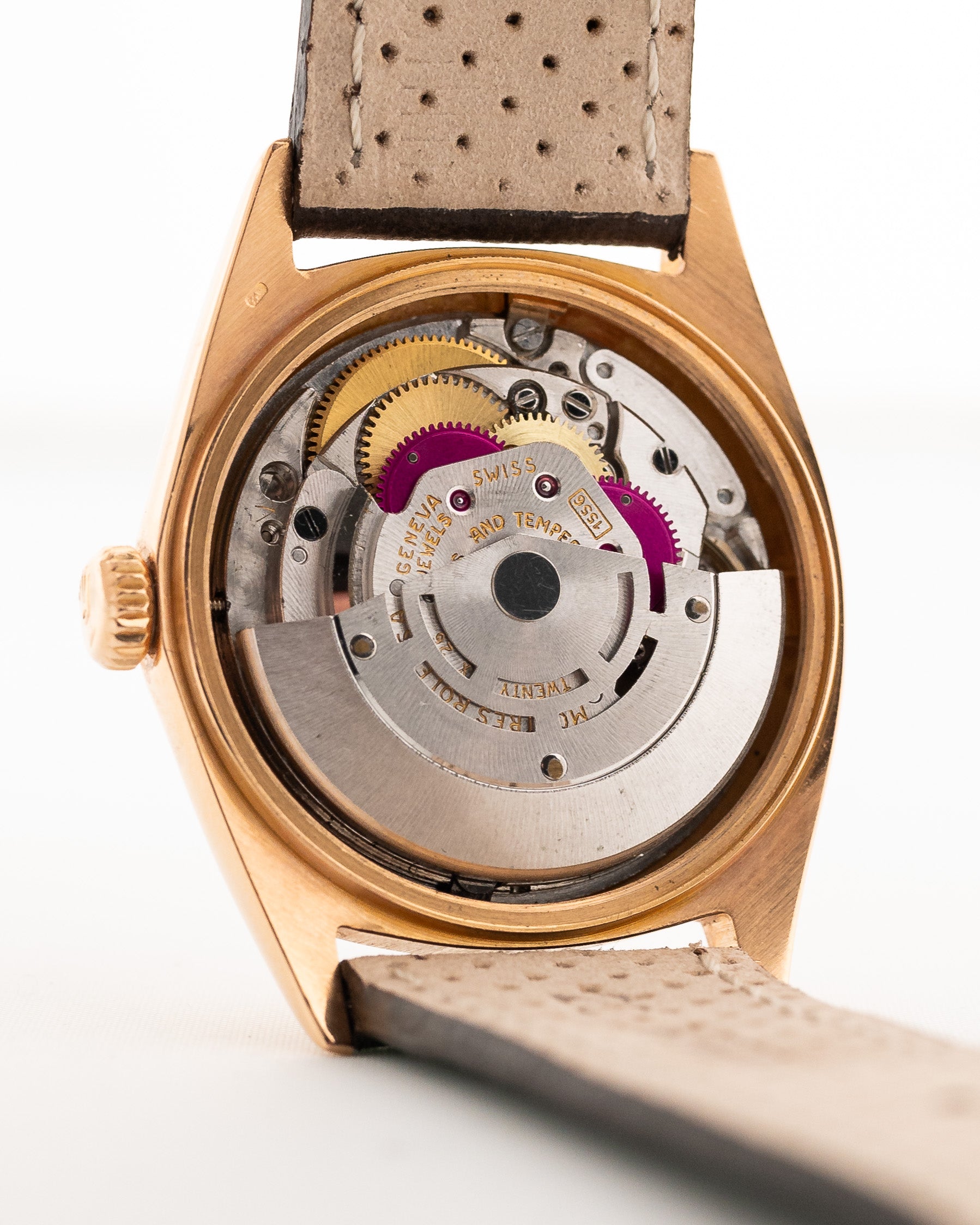 • 3- body 18k rose gold (Genex SA) case with screw-down case back