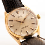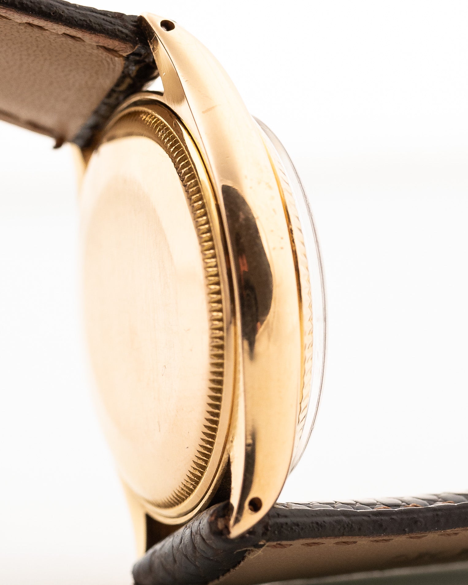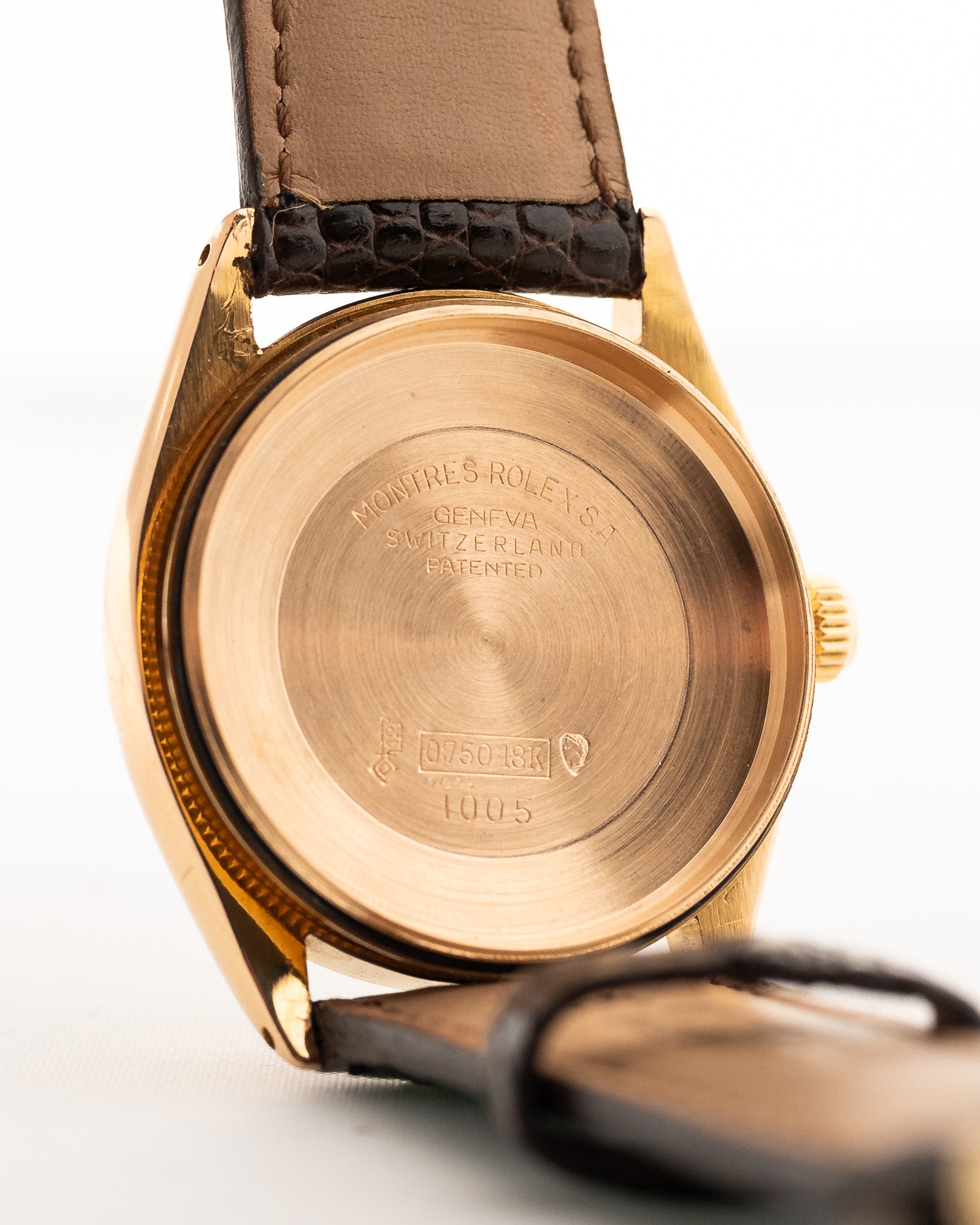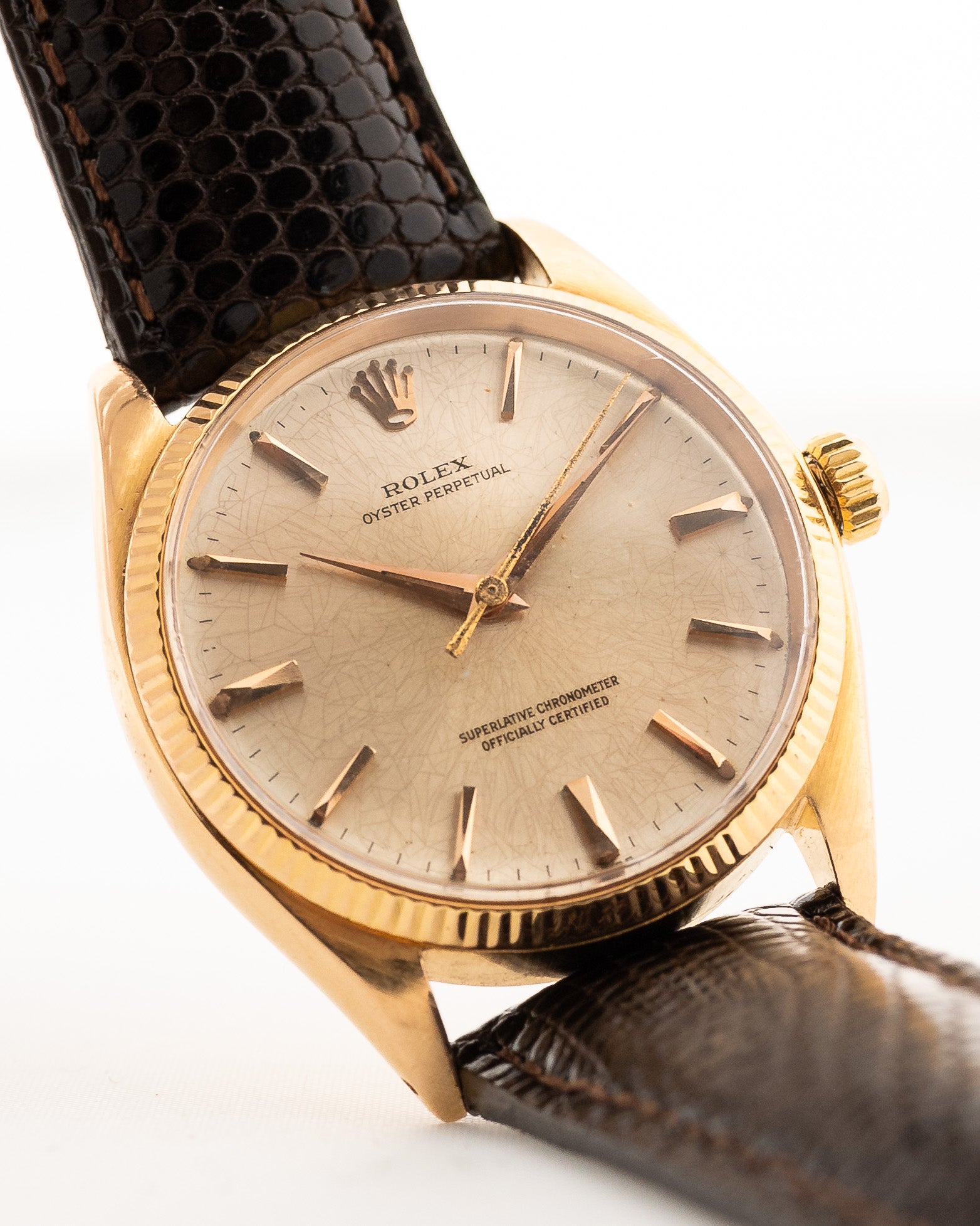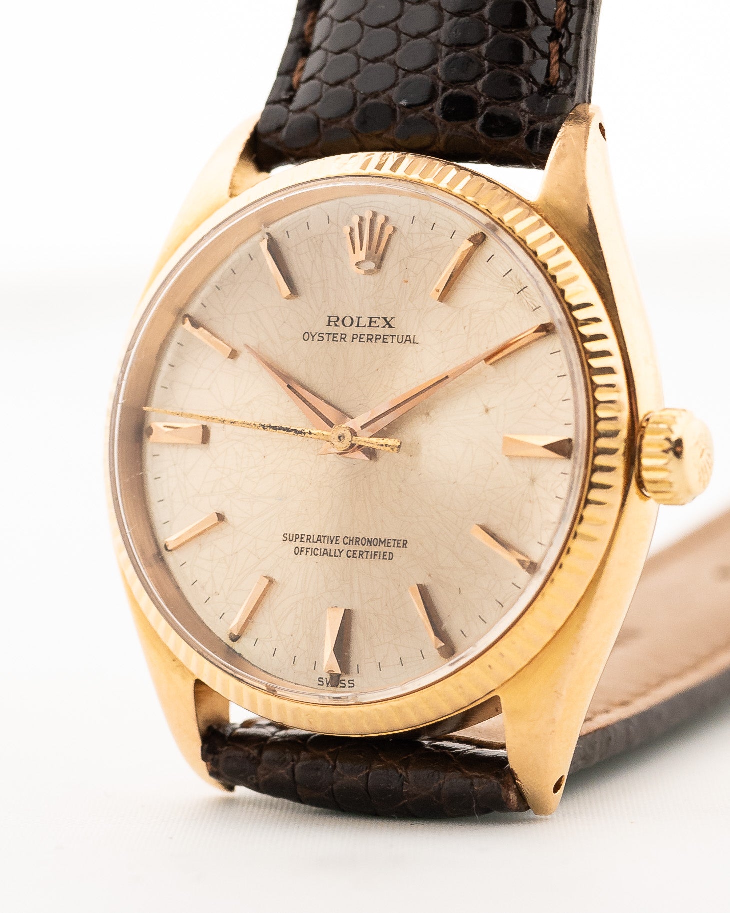 This Rolex Oyster Perpetual Reference 1005 in 18k rose gold with a classic dial design and 18k rose gold fluted bezel is really a watch anyone will look good today and 50 years from now. The Oyster Perpetual has been in production since the late 1950s, and not much has changed.