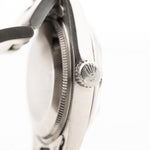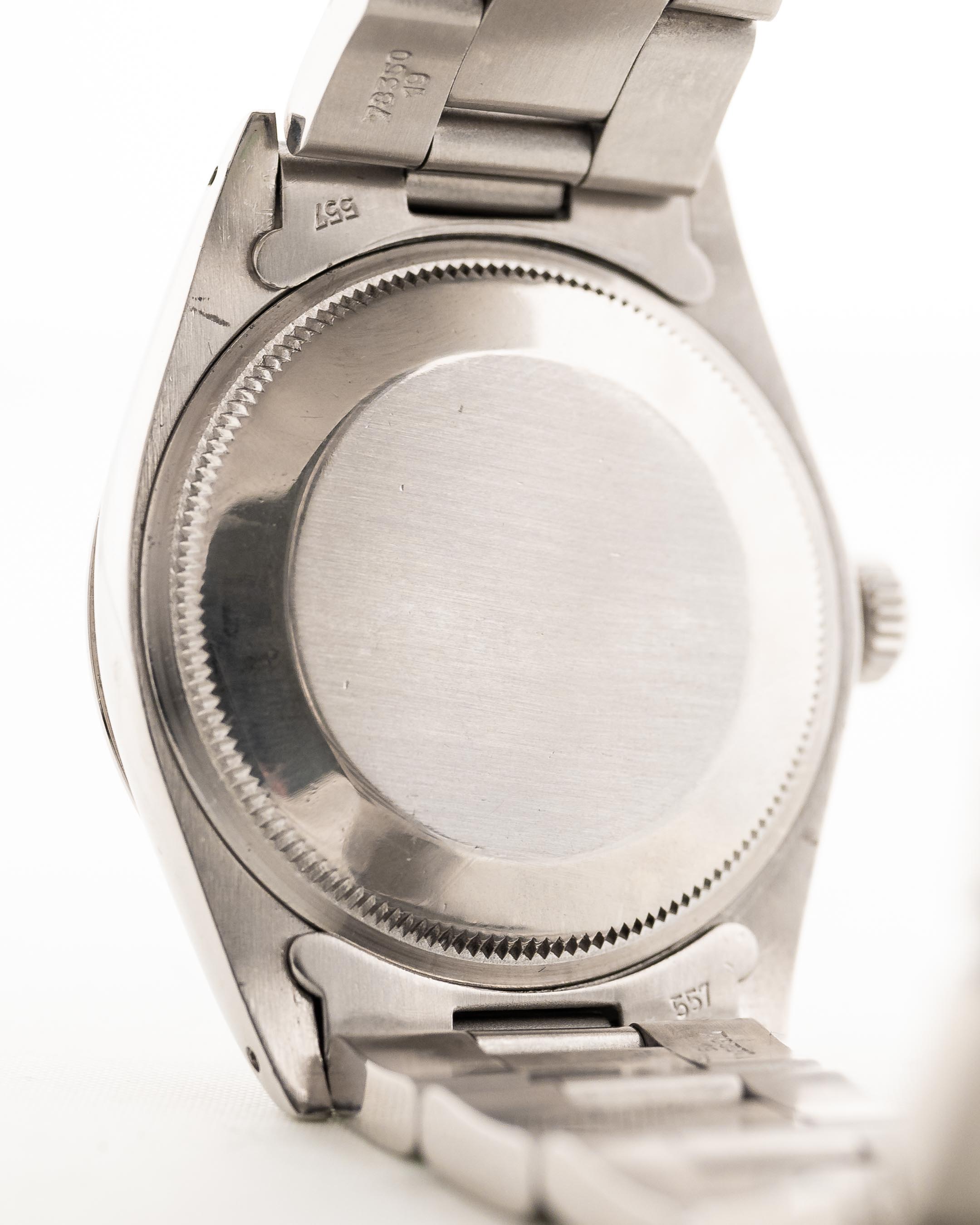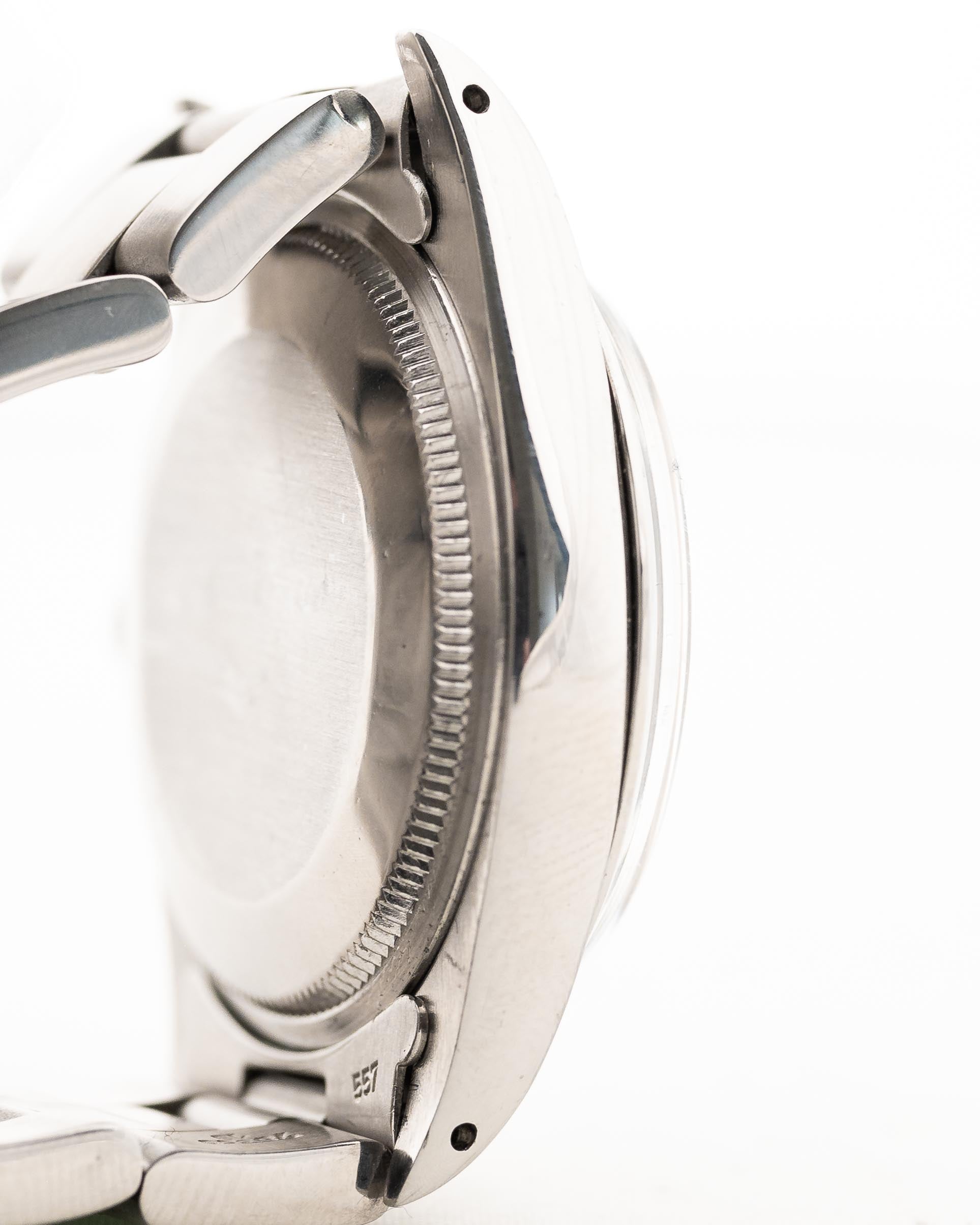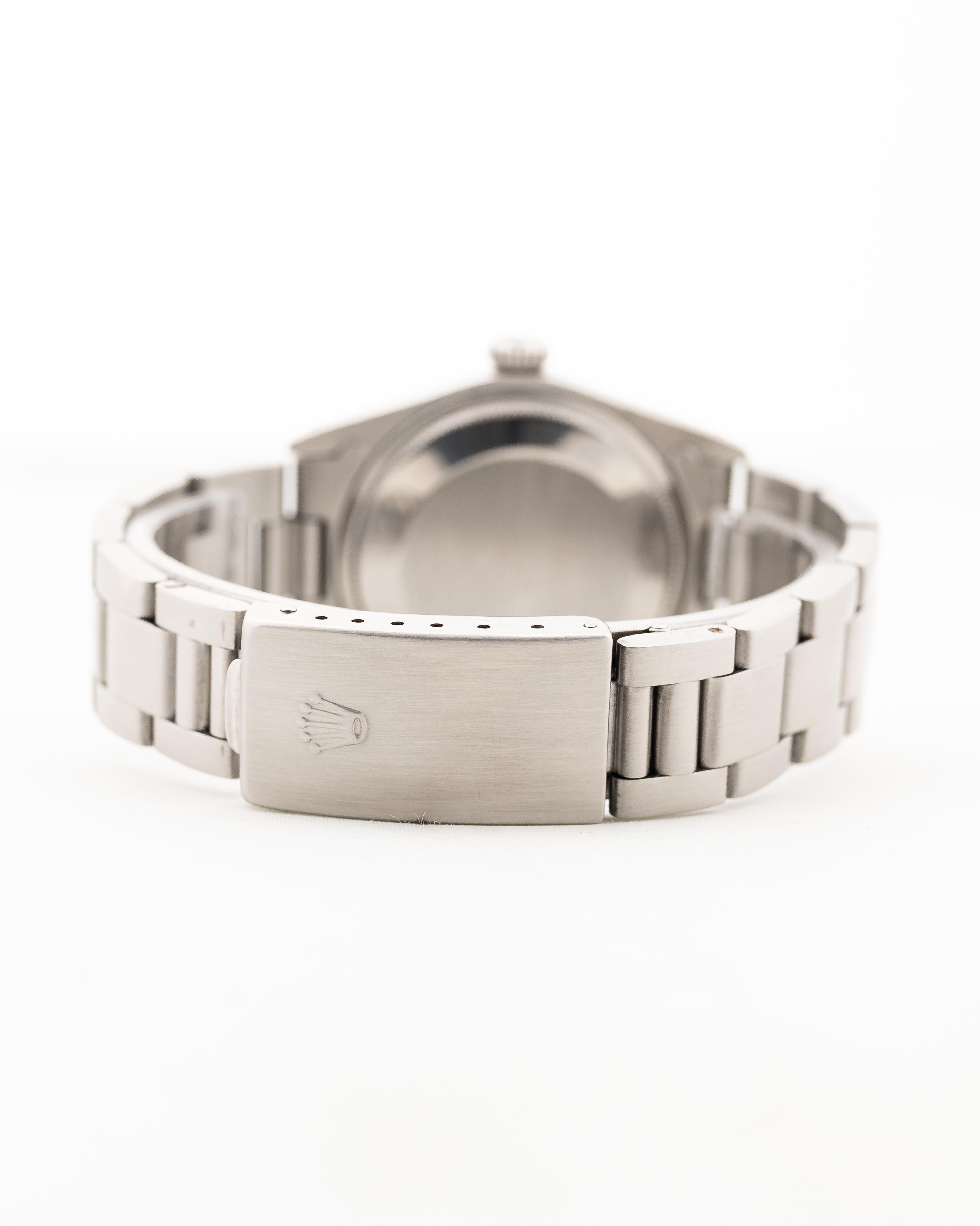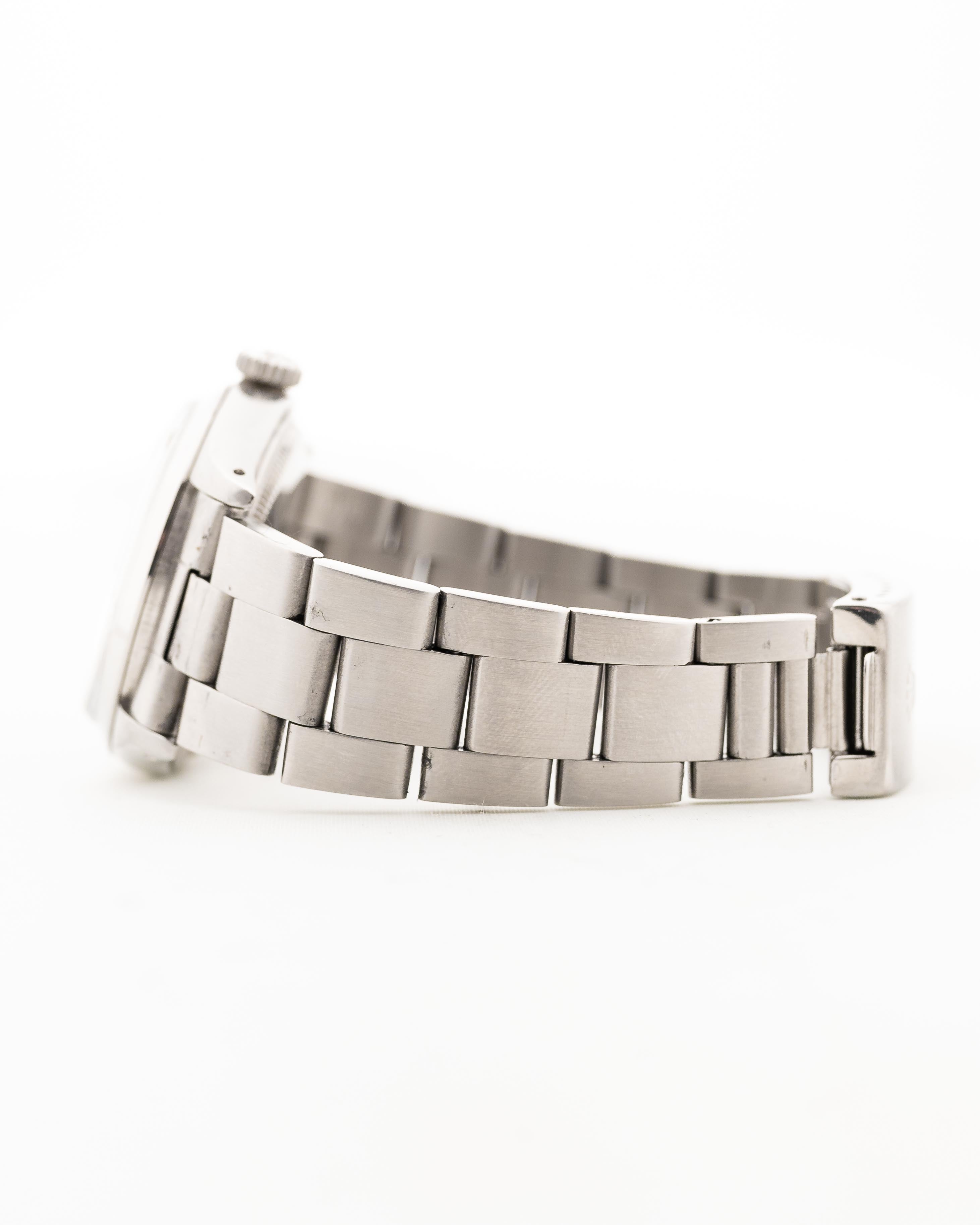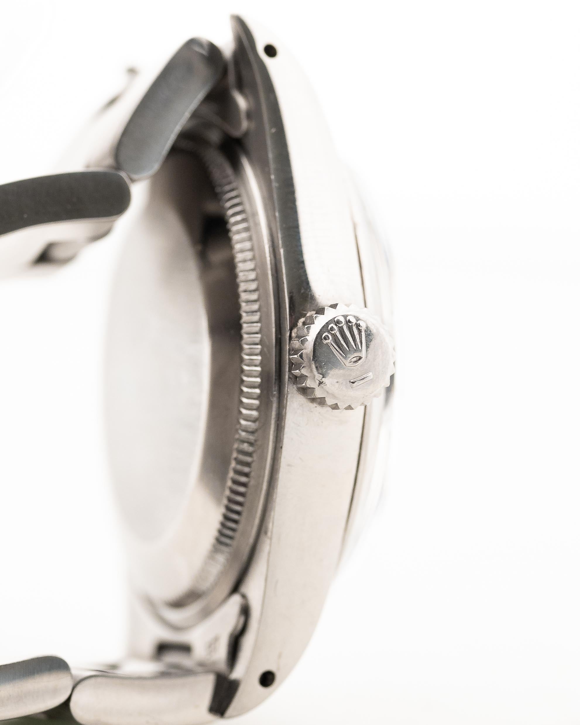 • the original Rolex Oyster Bracelet (SU10) was exchanged in the past to a newer one from 1994; with slight stretch it is fitting up to 18 cm wrist size / 3.3 mm thick
