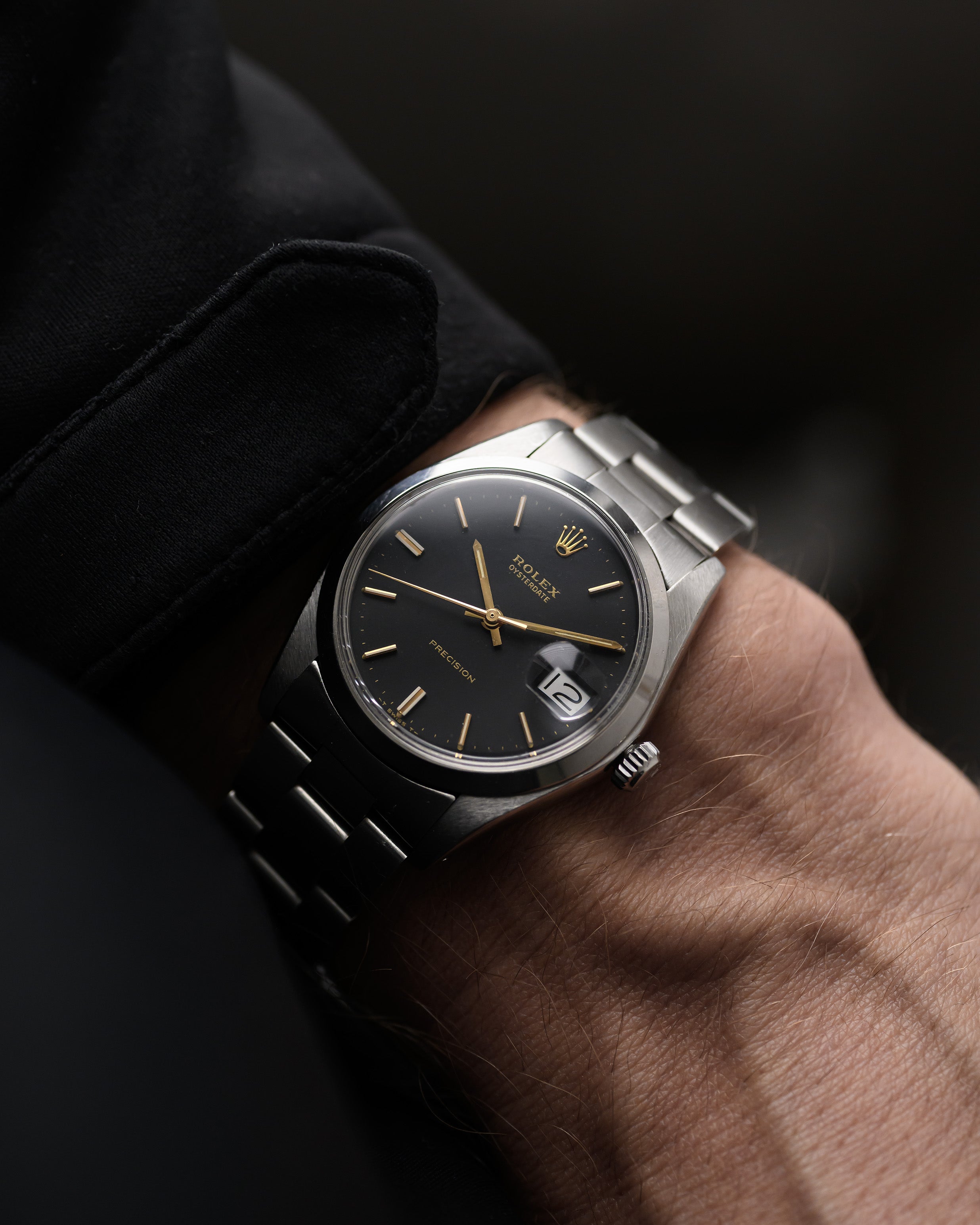 The Rolex Oysterdate Precision is a real "under the radar" piece. It was introduced as the 6694 in the early 60s and made up until the late 80s. And aesthetically, this Rolex is timeless and gorgeous with 35 mm but it wears bigger. It has a classy, elegant look that seems suitable for the tennis court, a business meeting or any number of casual settings.